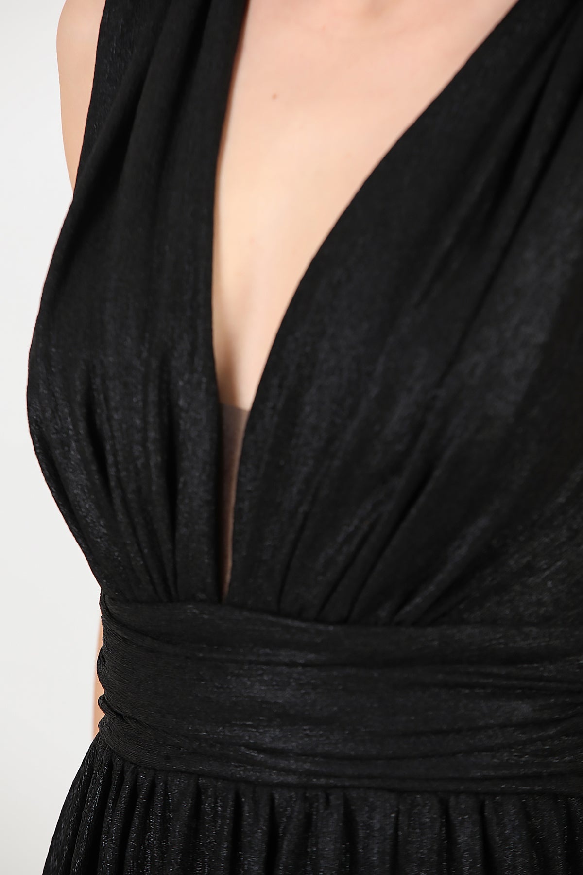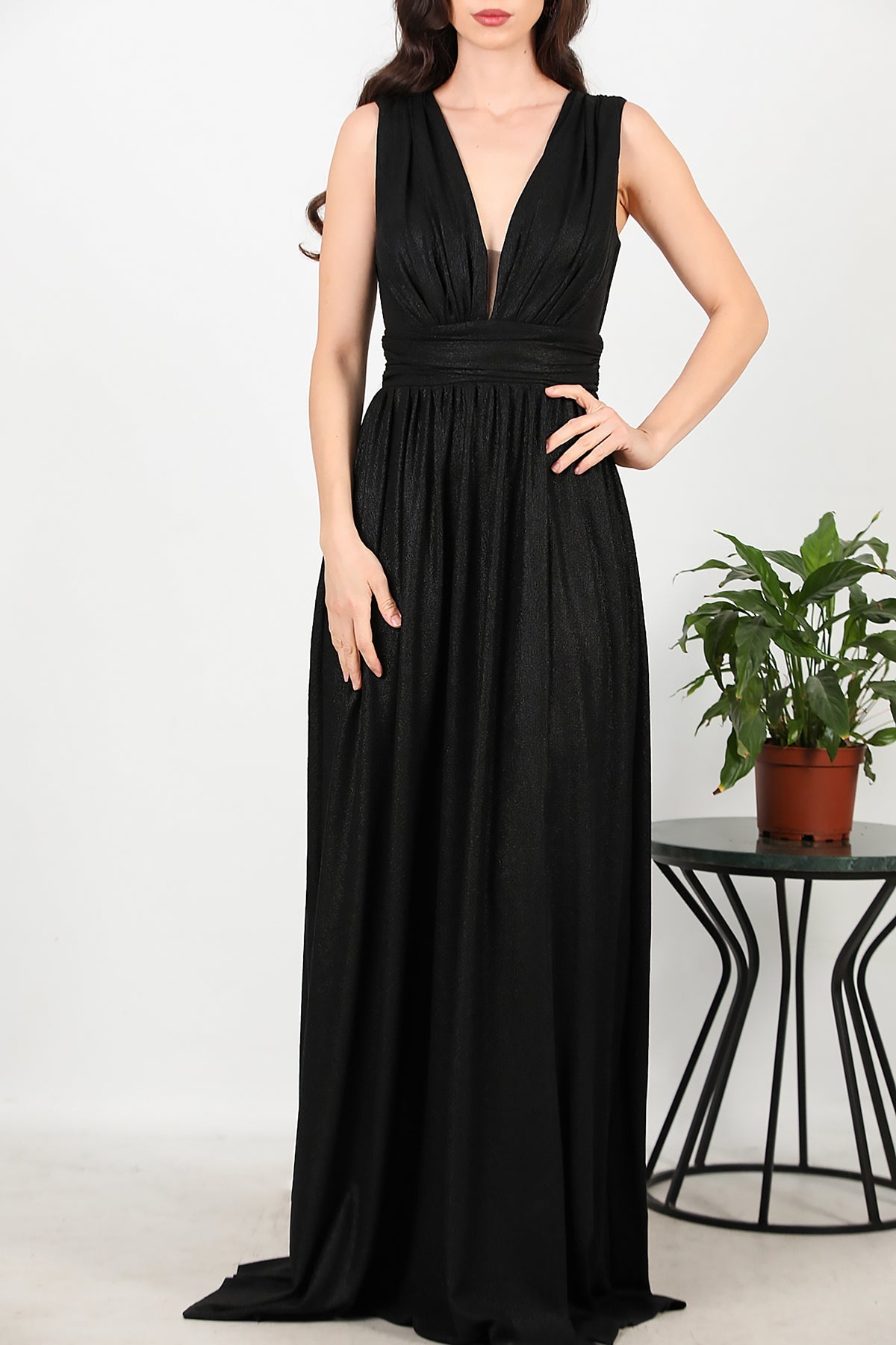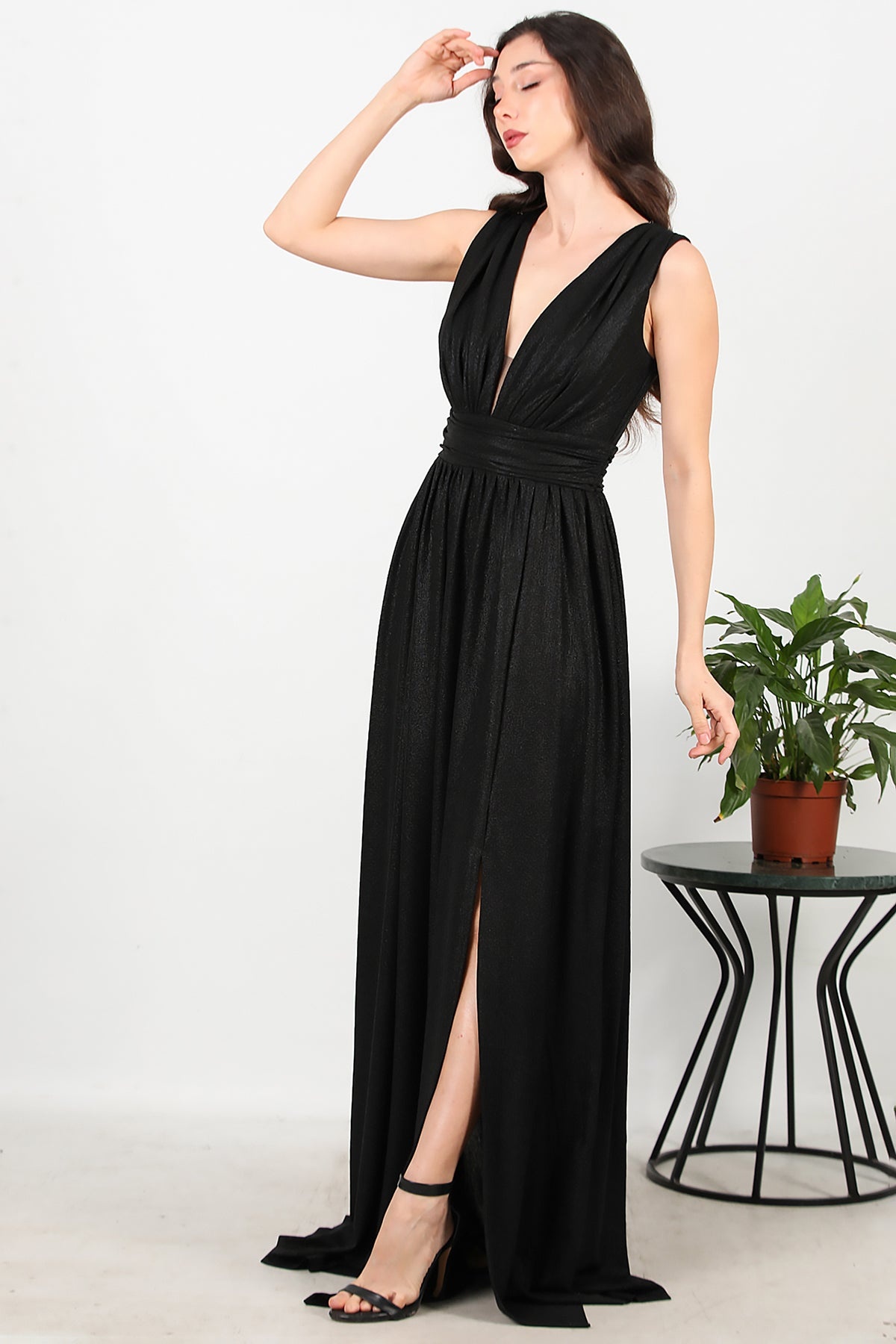 Kadın Yırtmaçlı Simli Uzun Abiye Siyah