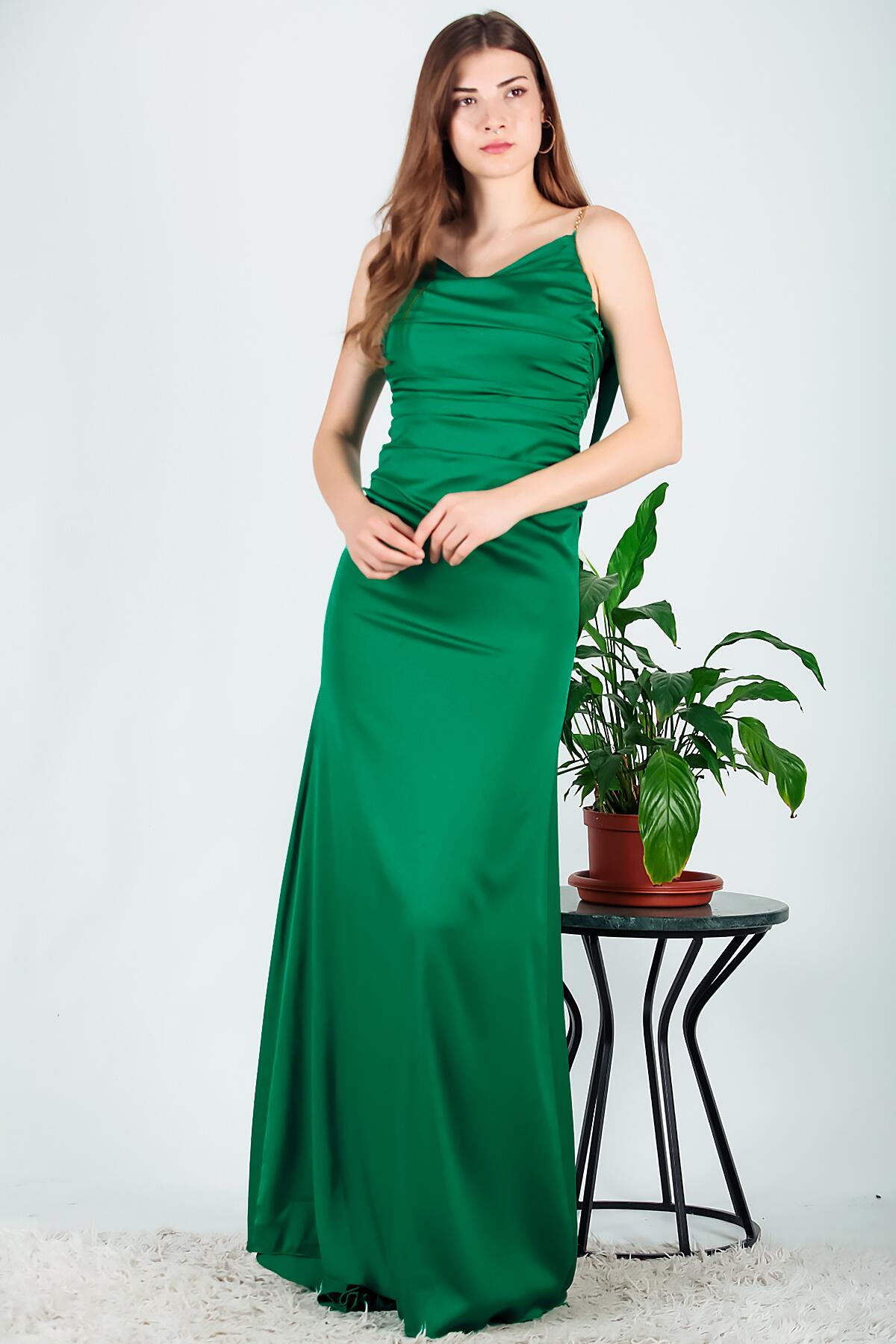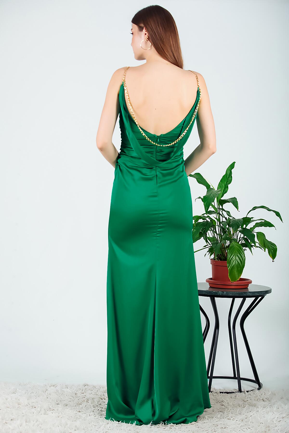 Kadın Zincir Detaylı Abiye Yeşil
