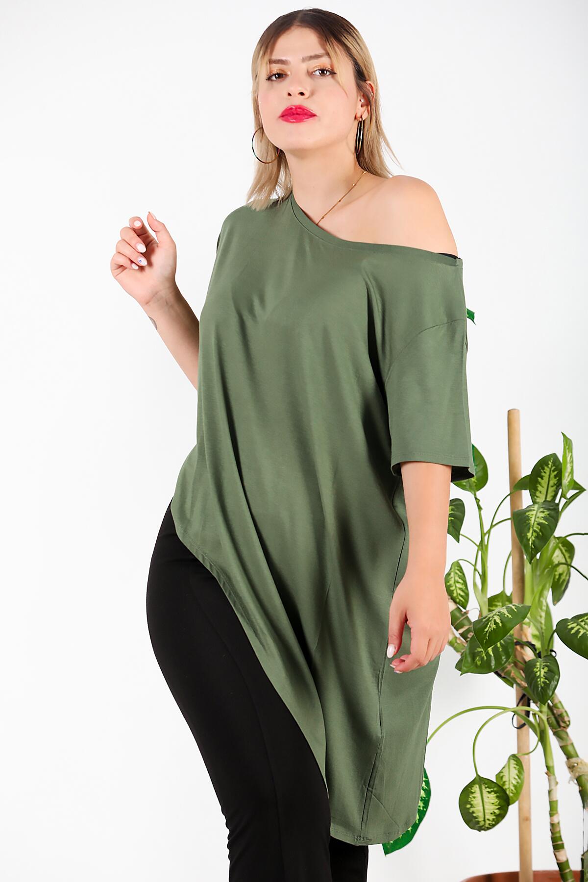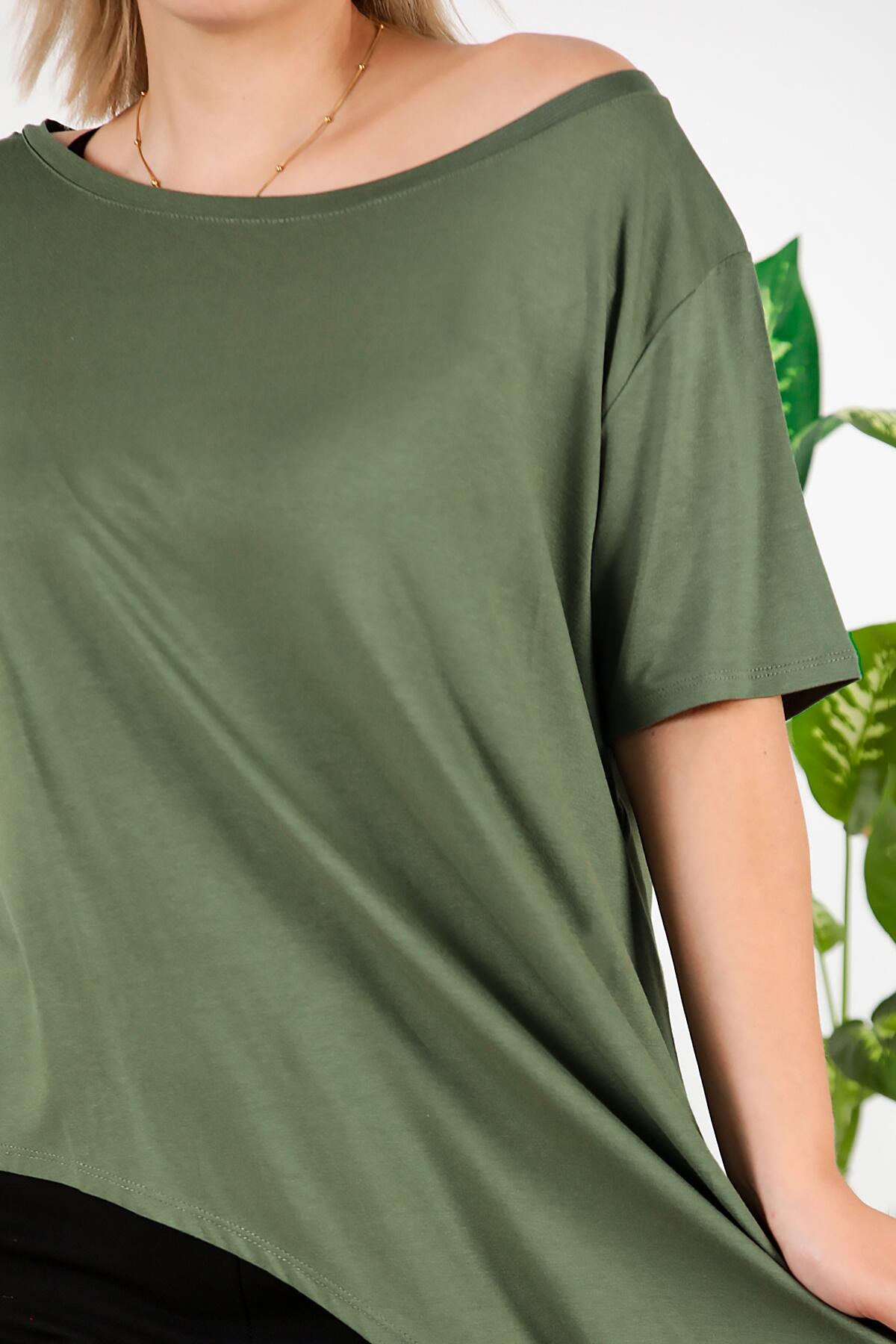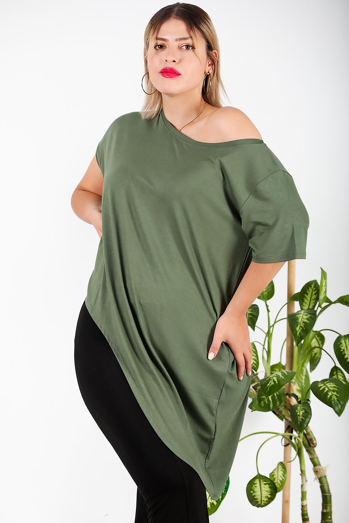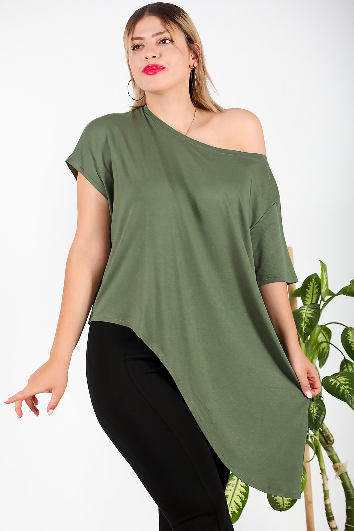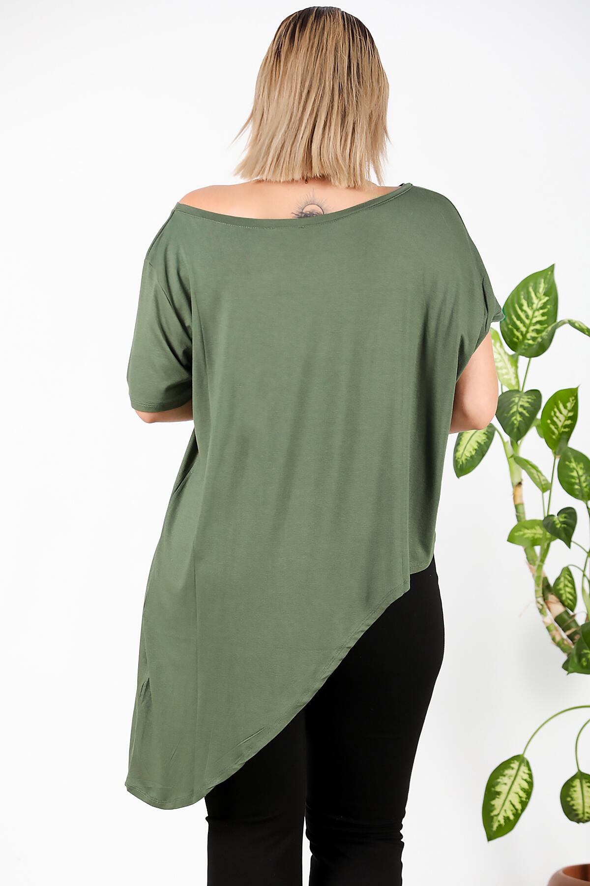 Büyük Beden Asimetrik Kesim T-shırt Haki