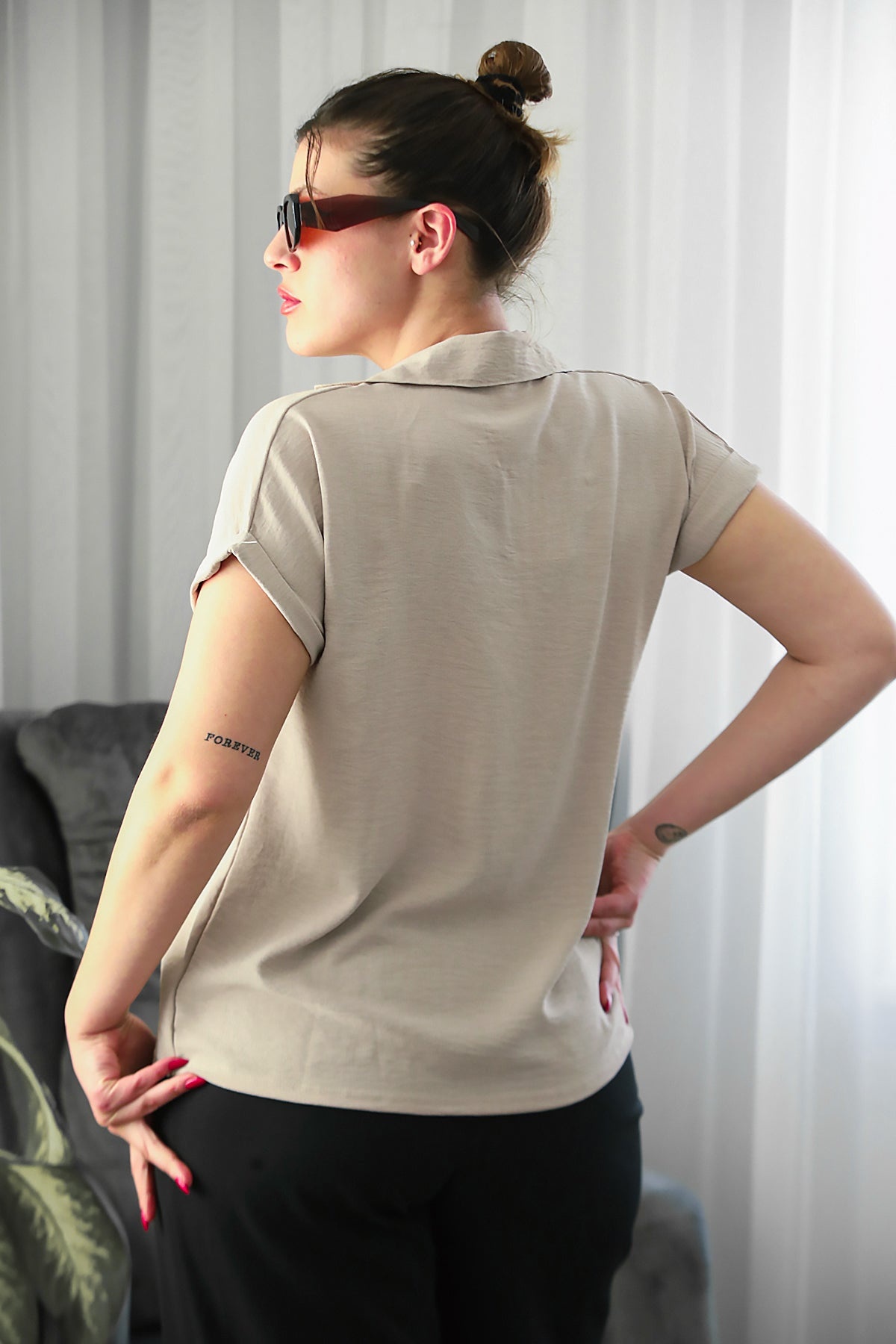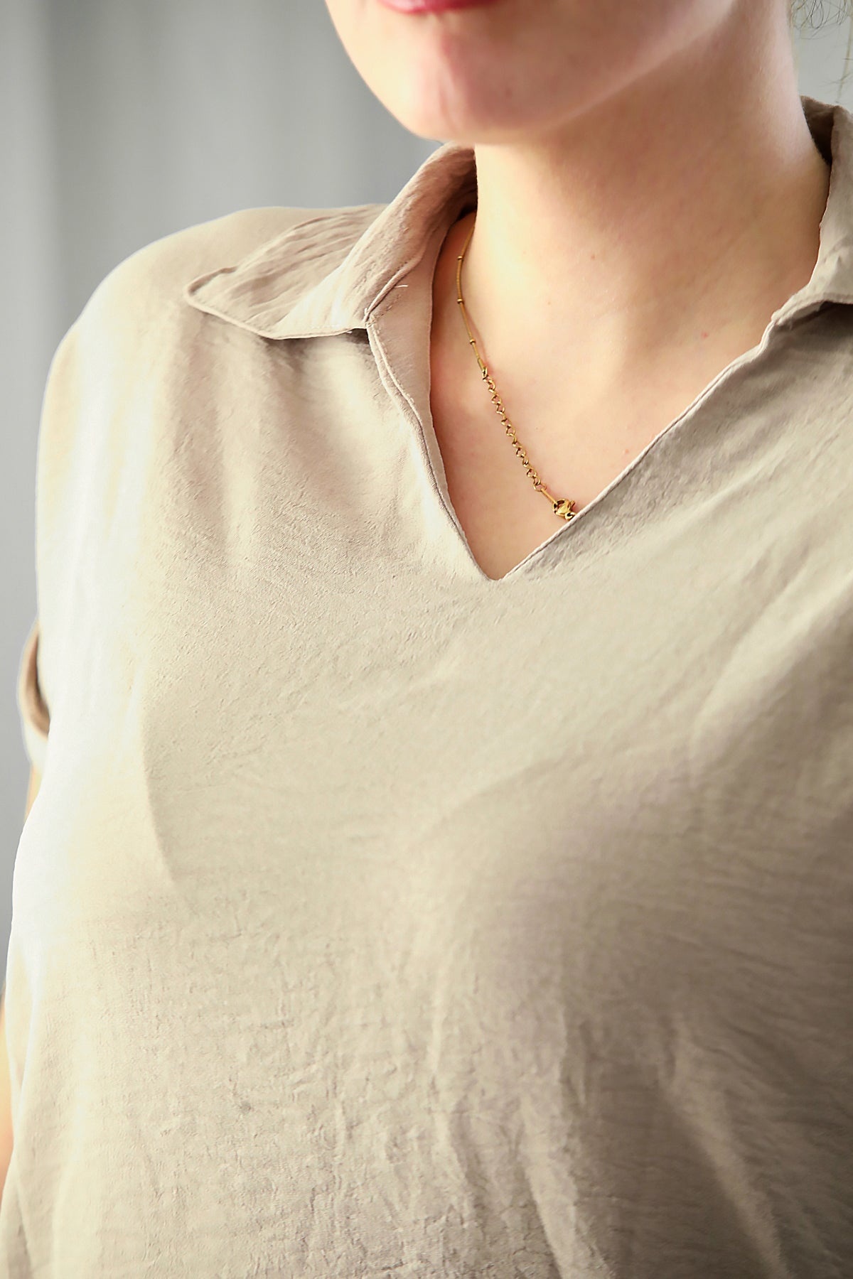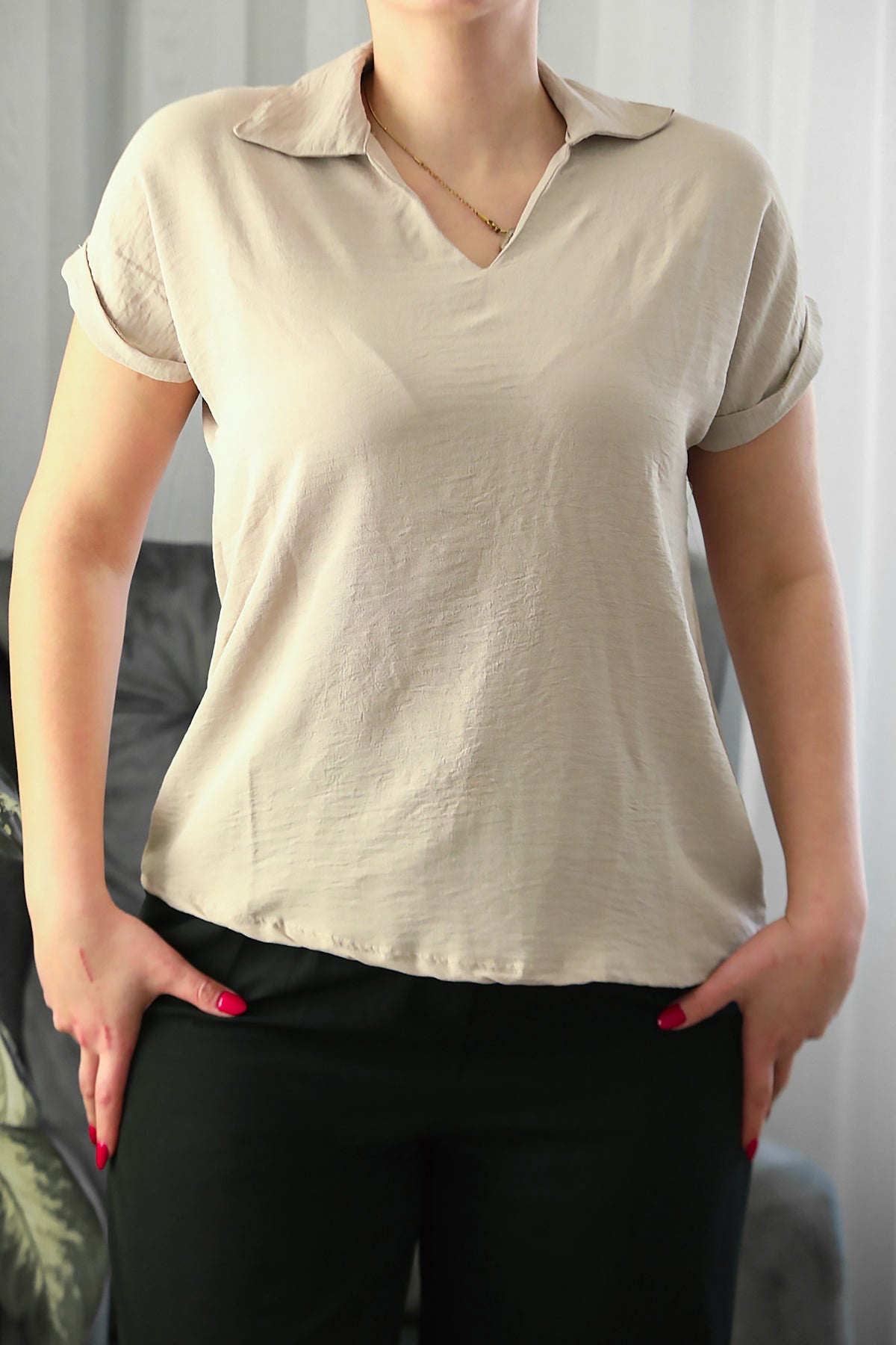 Büyük Beden Ayrobin V Yaka Yakalı Bluz Taş