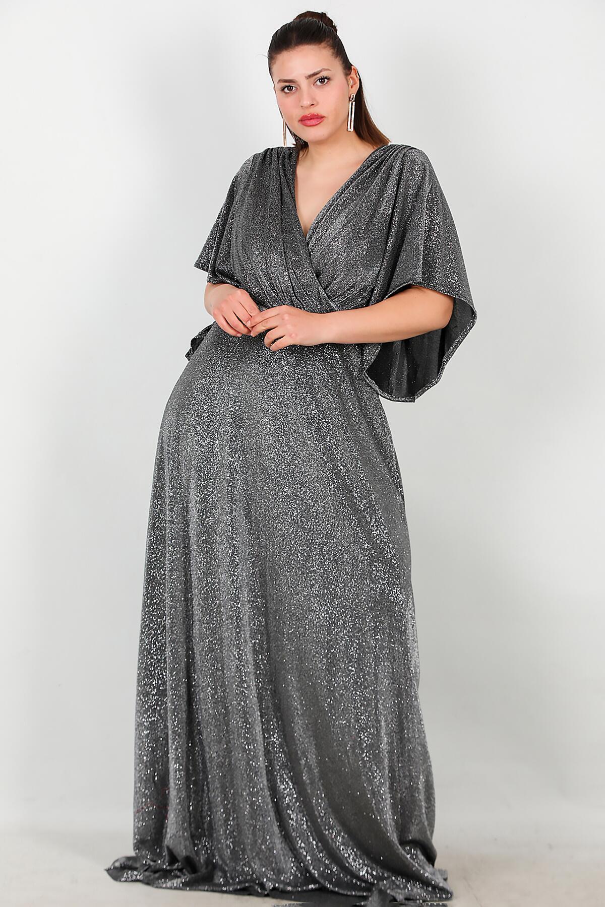 Büyük Beden Kruvaze Yaka Uzun Abiye