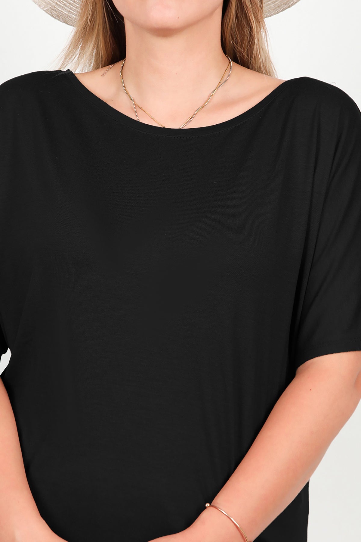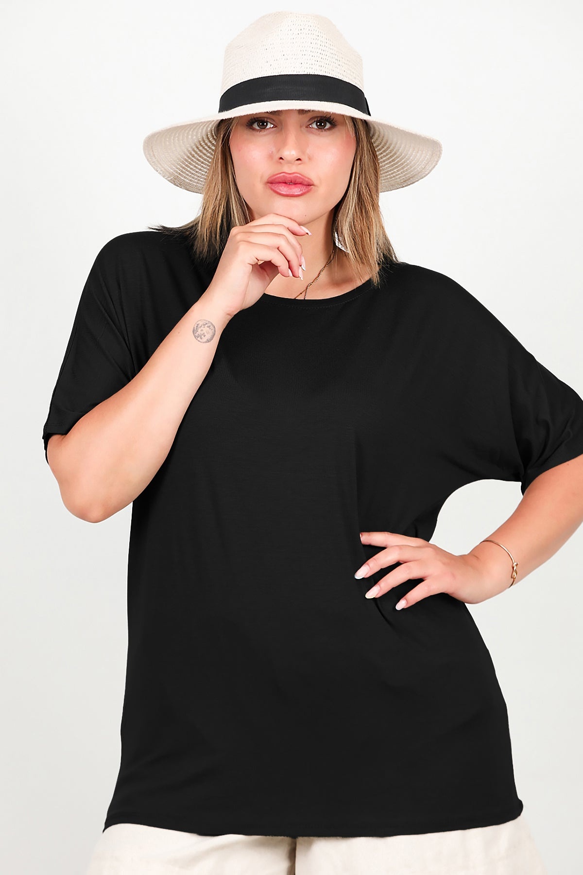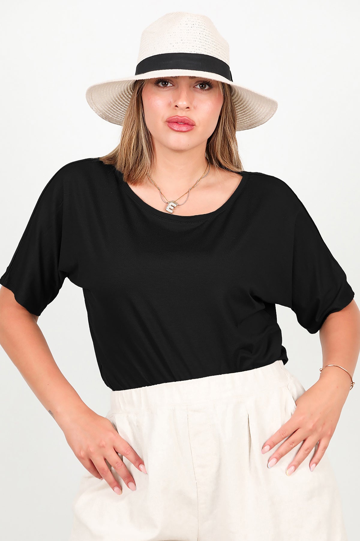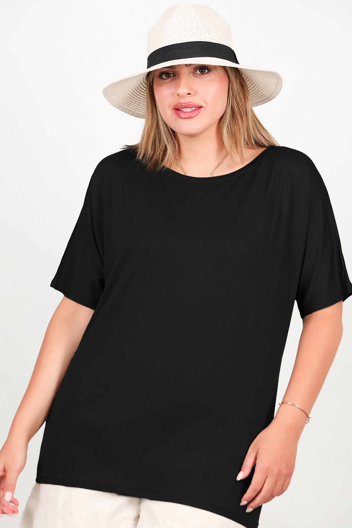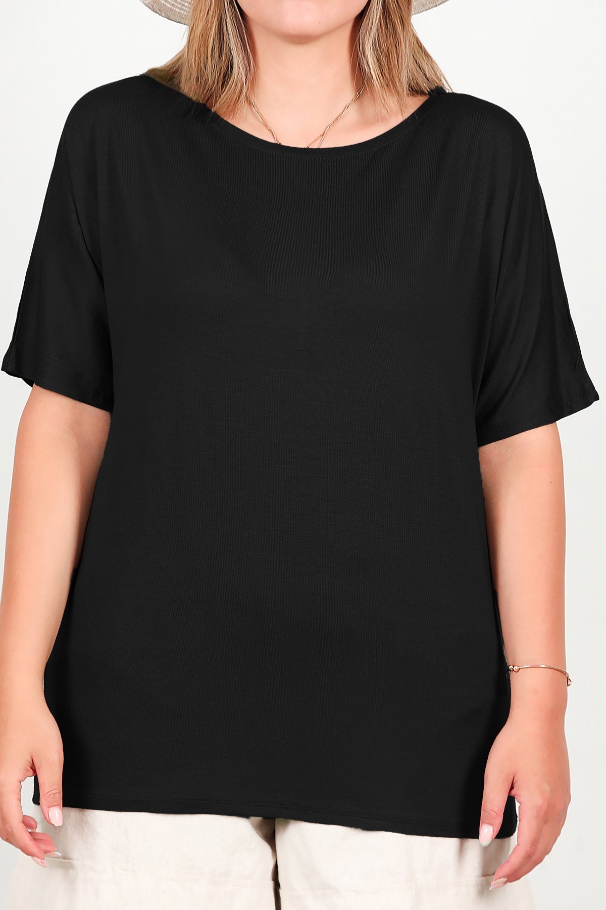 Büyük Beden Bisiklet Yaka Bluz Siyah
