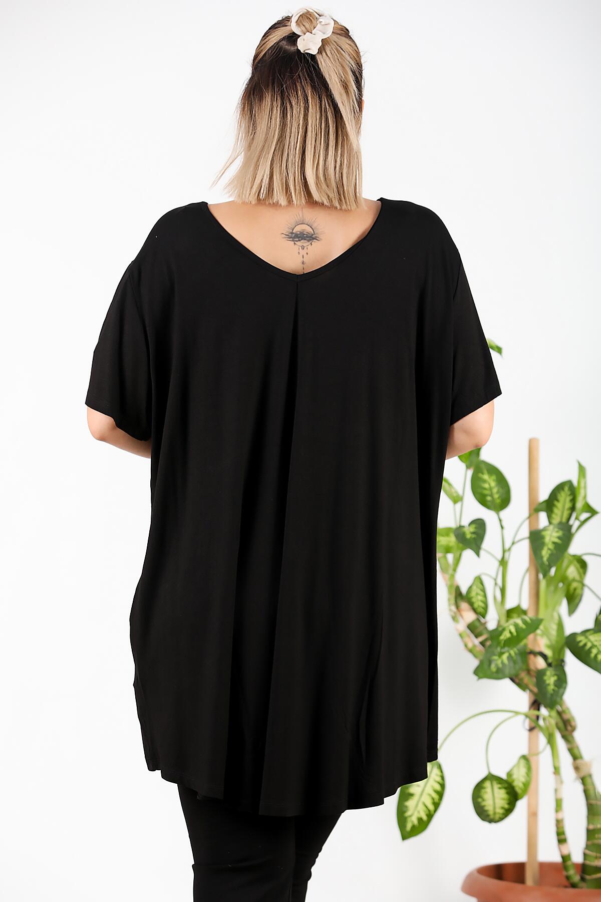 Numune Bedeni: 48Numune Boyu: 84 cm (ön) 94 cm (arka)Kumaş Tipi: %92 Viskon %8 ElestanKol: Kısa Kol