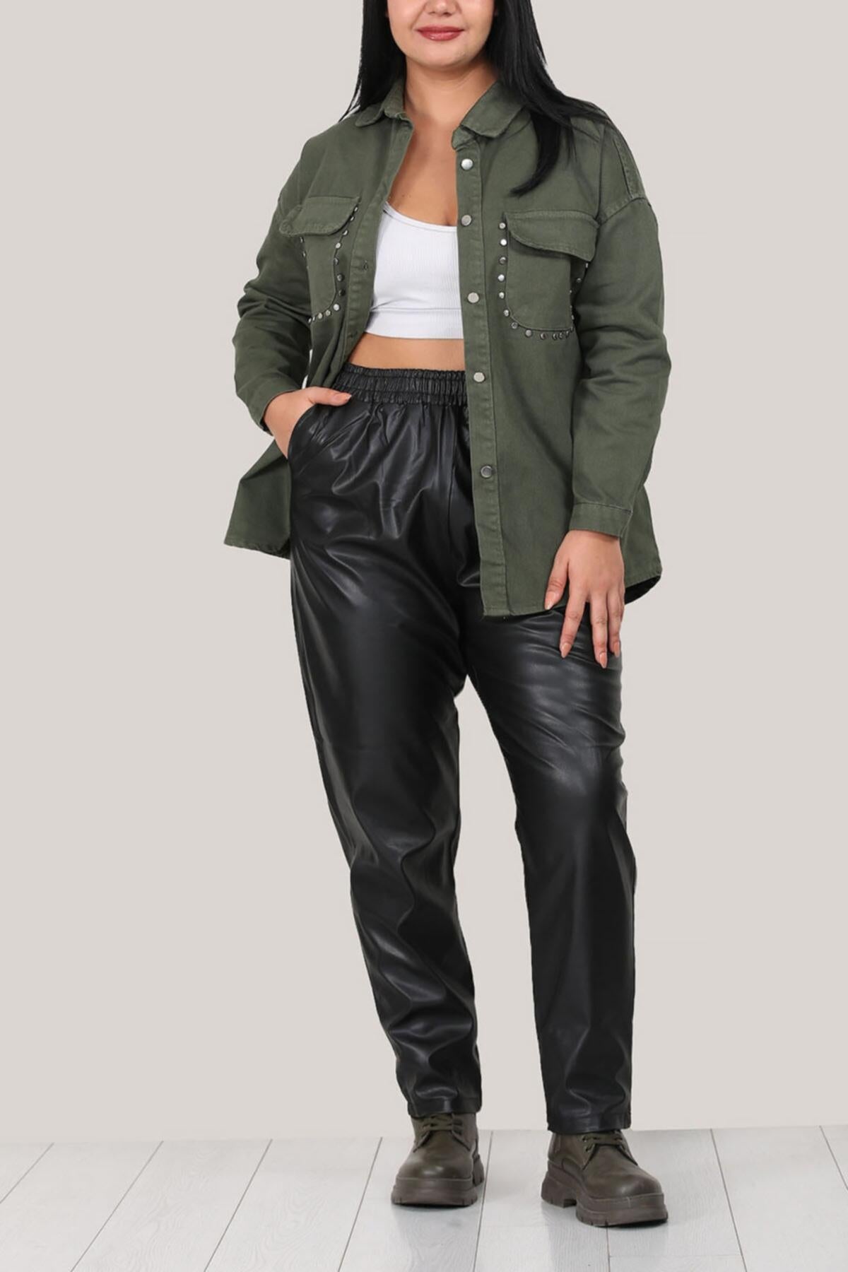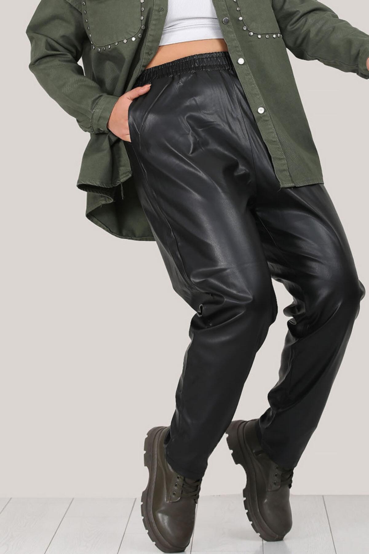 Büyük Beden Deri Pantolon Siyah