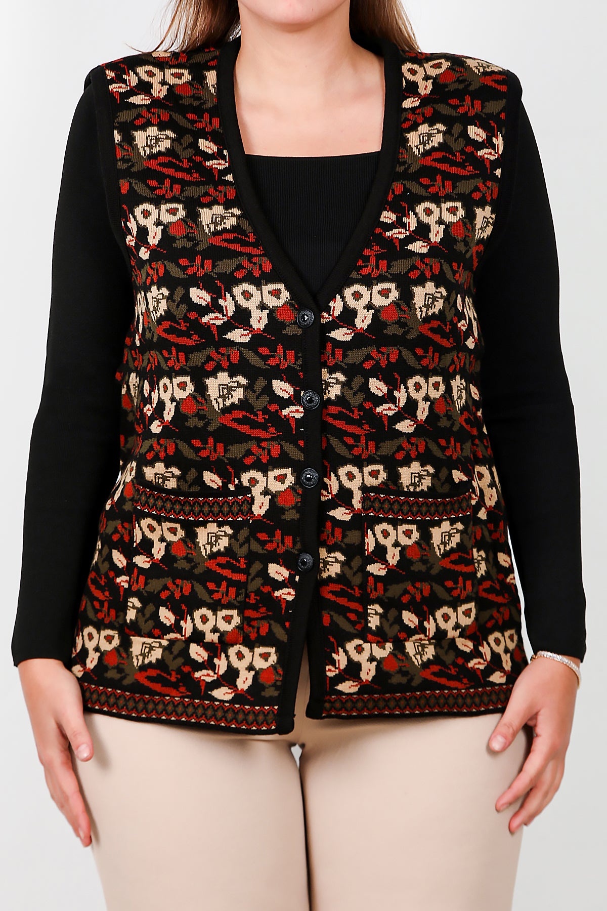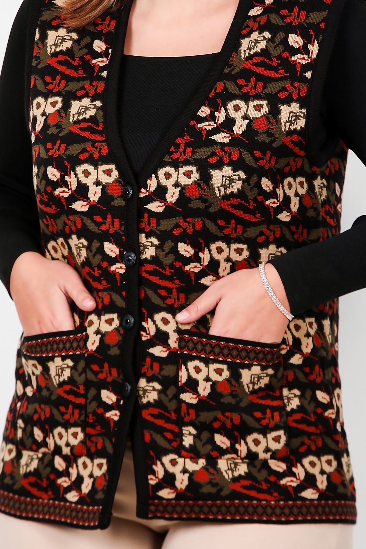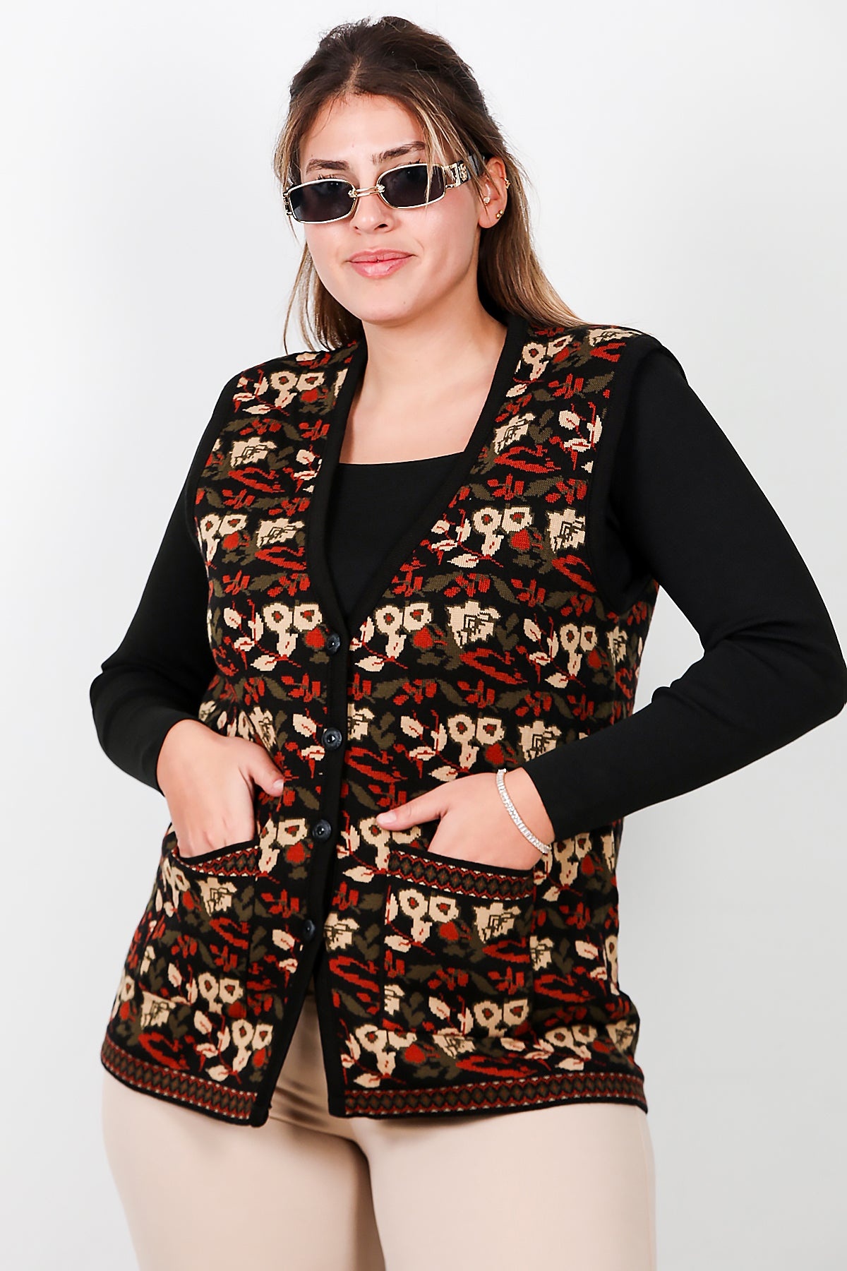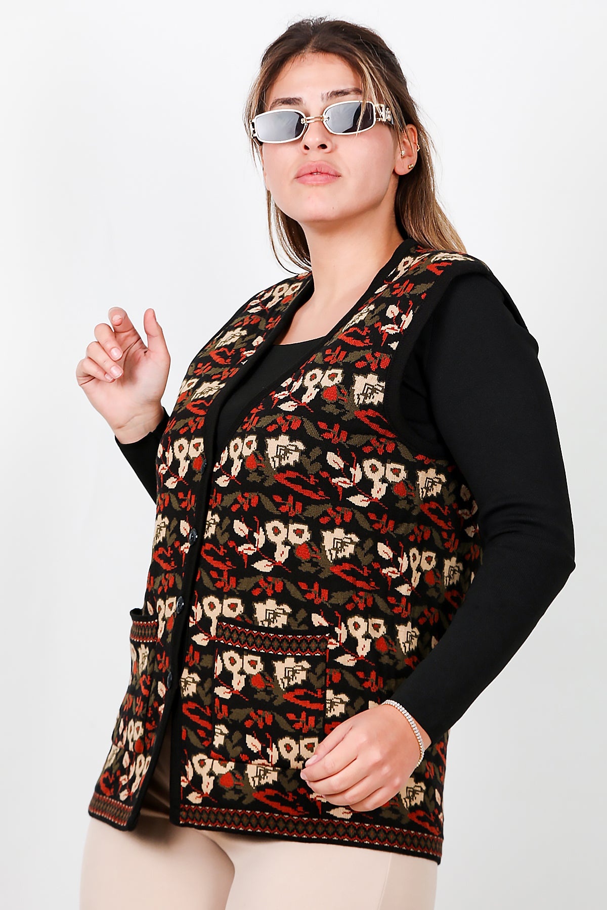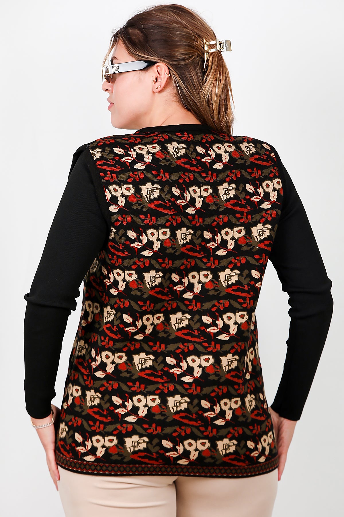 Büyük Beden Desenli Yelek Çok Renkli