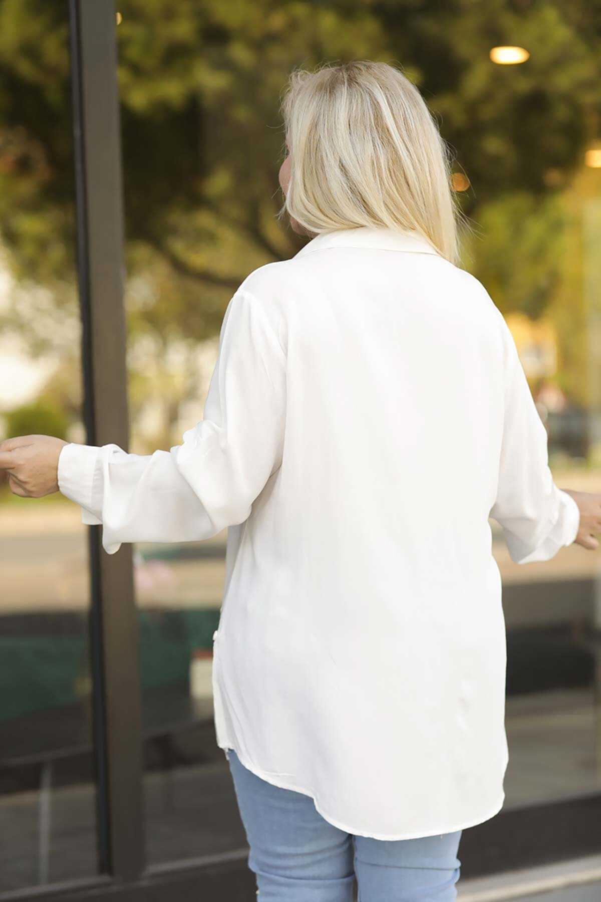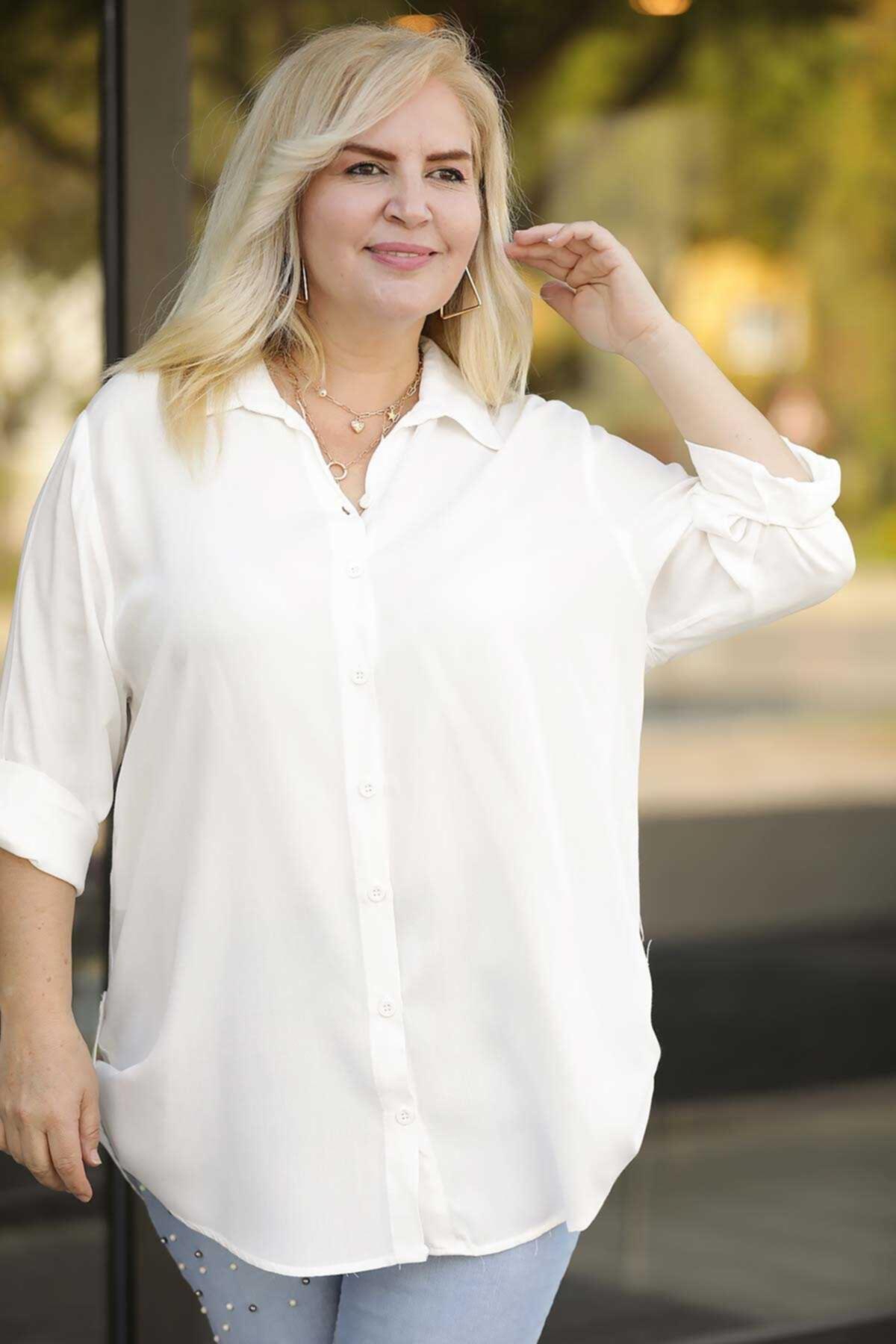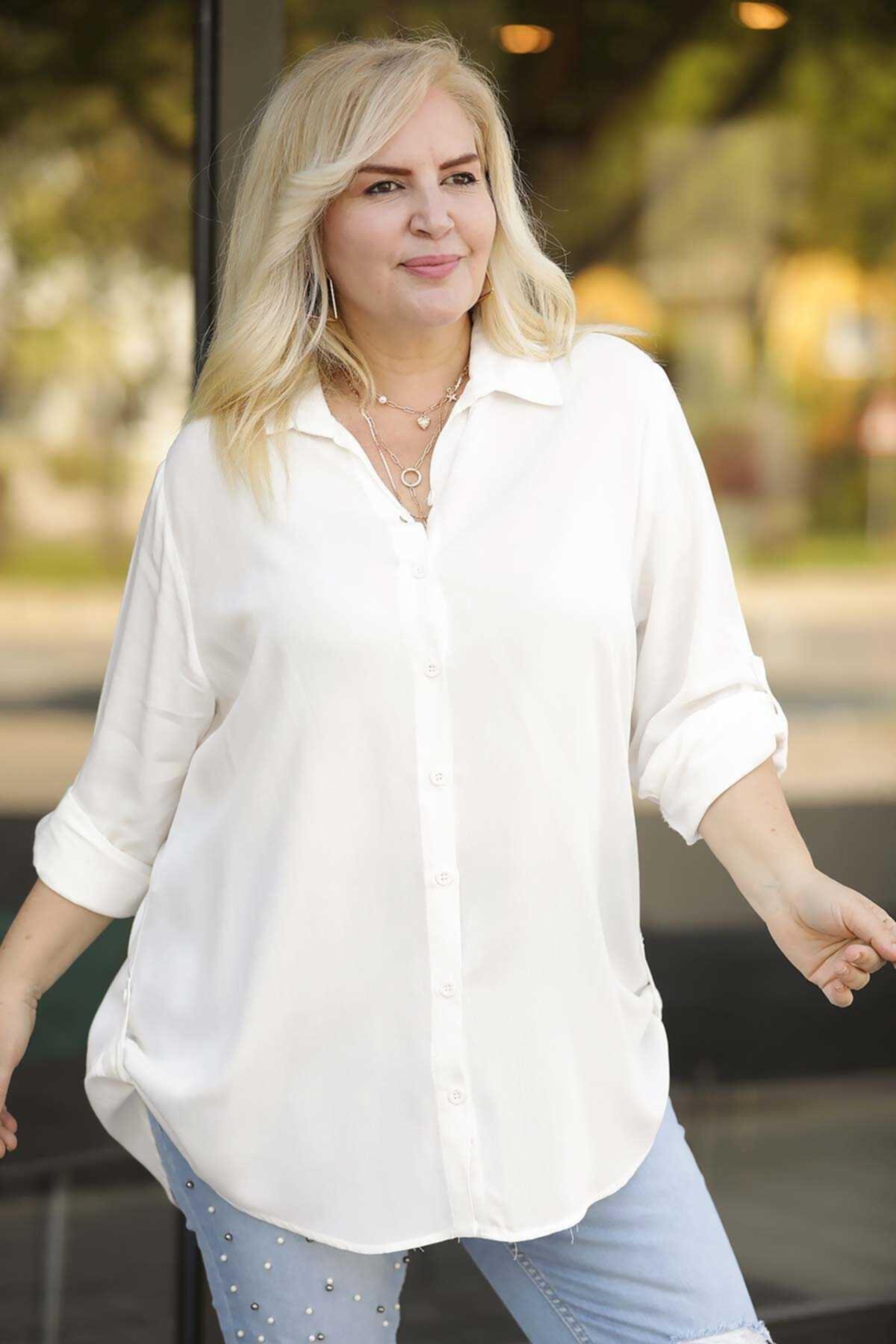 Büyük Beden Gömlek Ekru Ekru