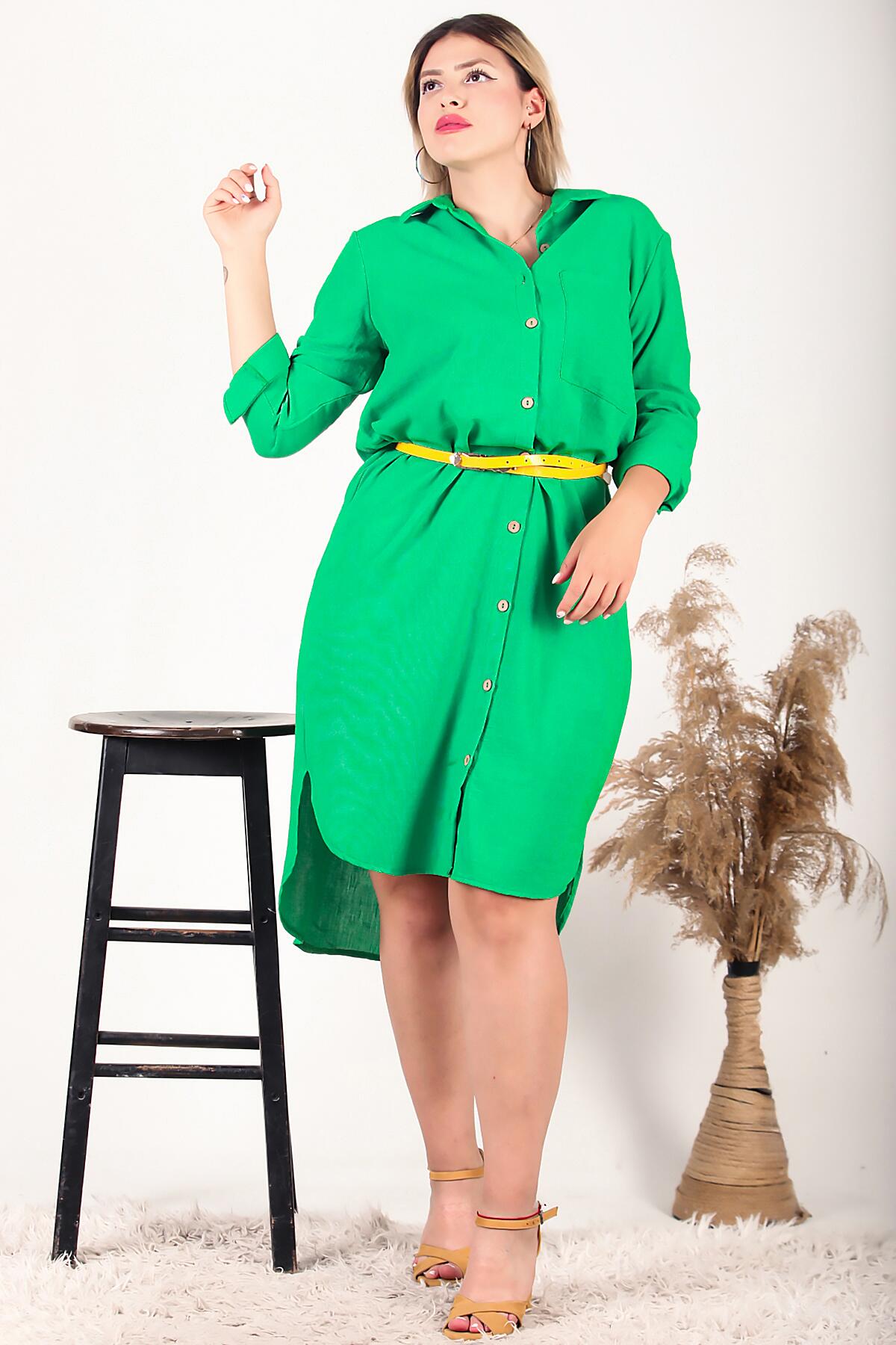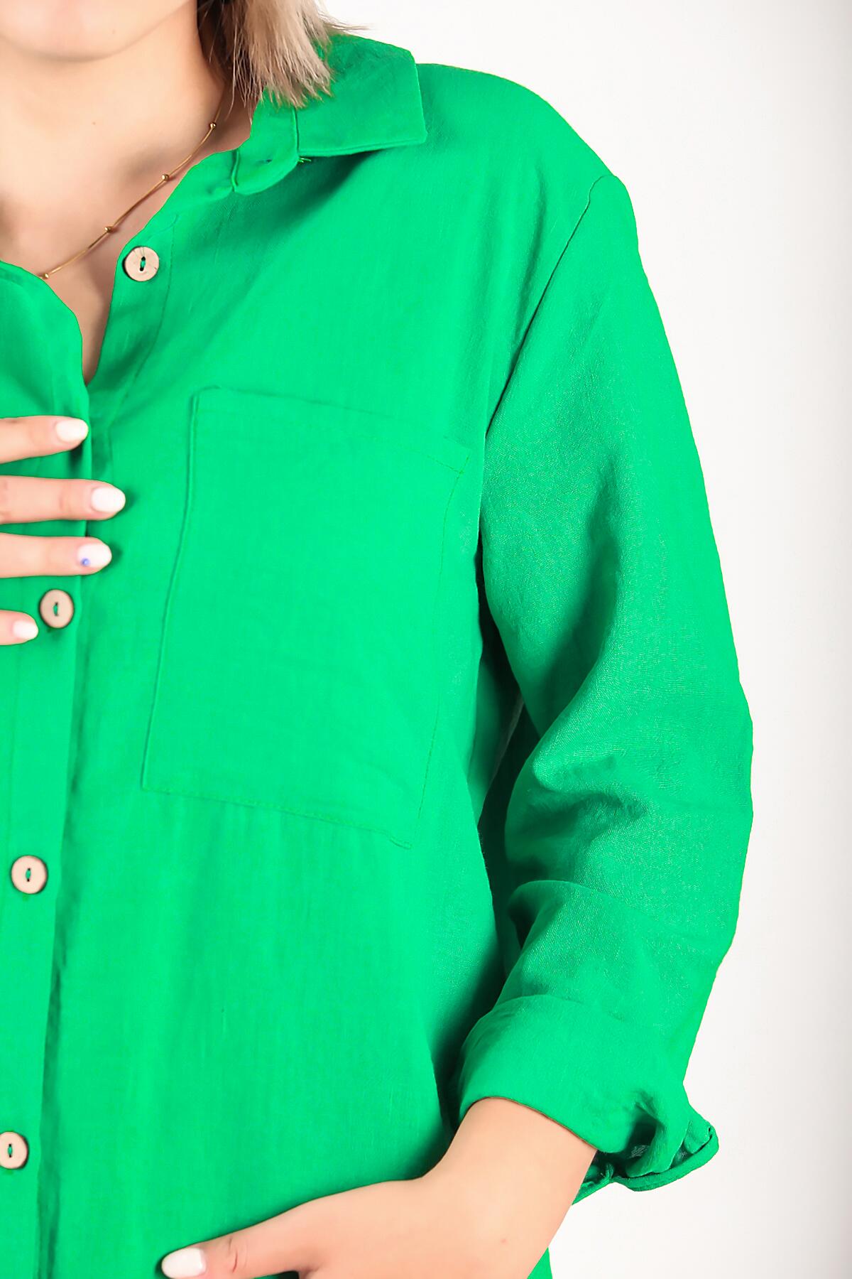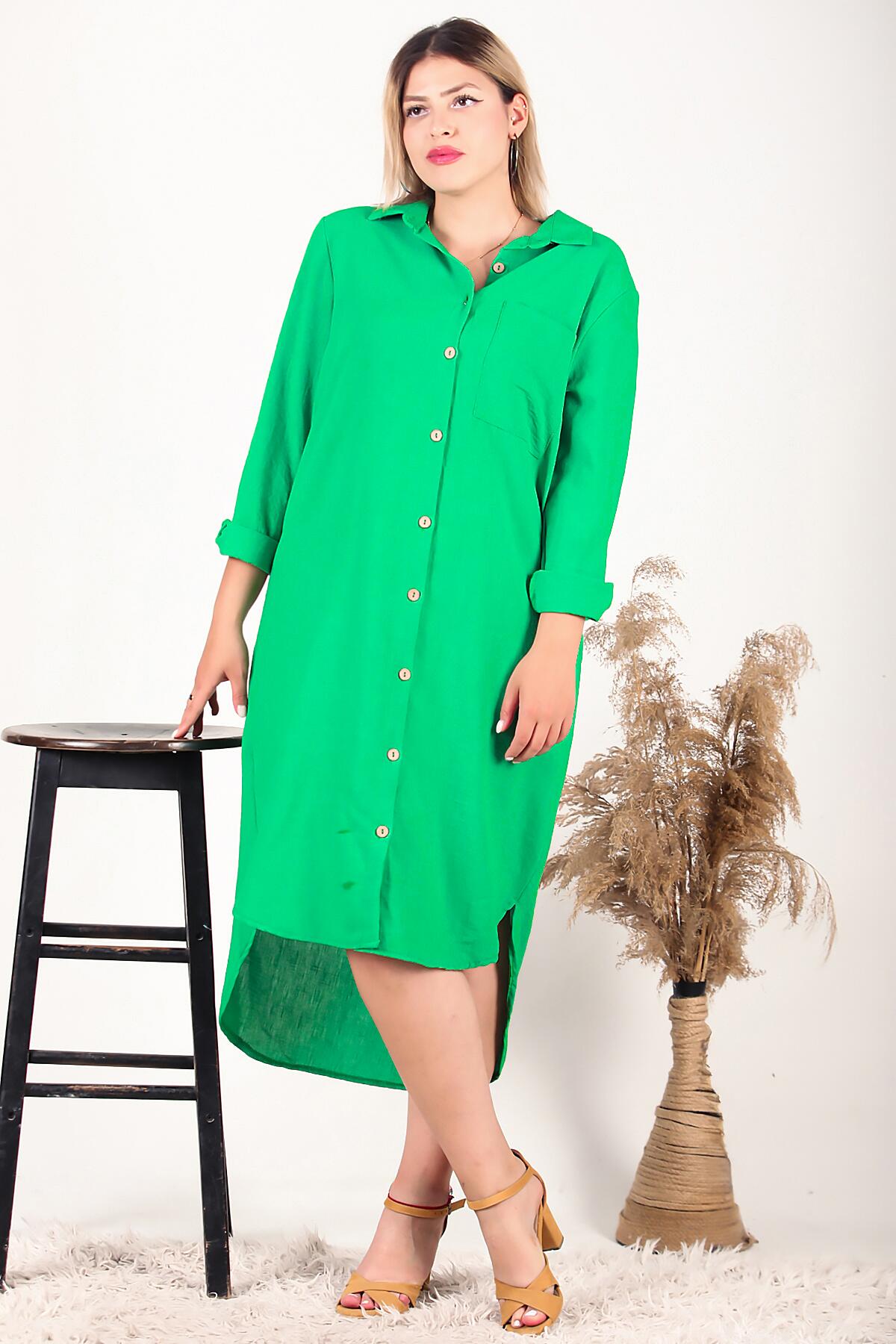 Numune Bedeni: 42 Numune Boyu: 107 cm (Ön) 121 cm (Arka) Kumaş Tipi: %100 Pamuk Kol: Uzun Kol ve Bağlamalı