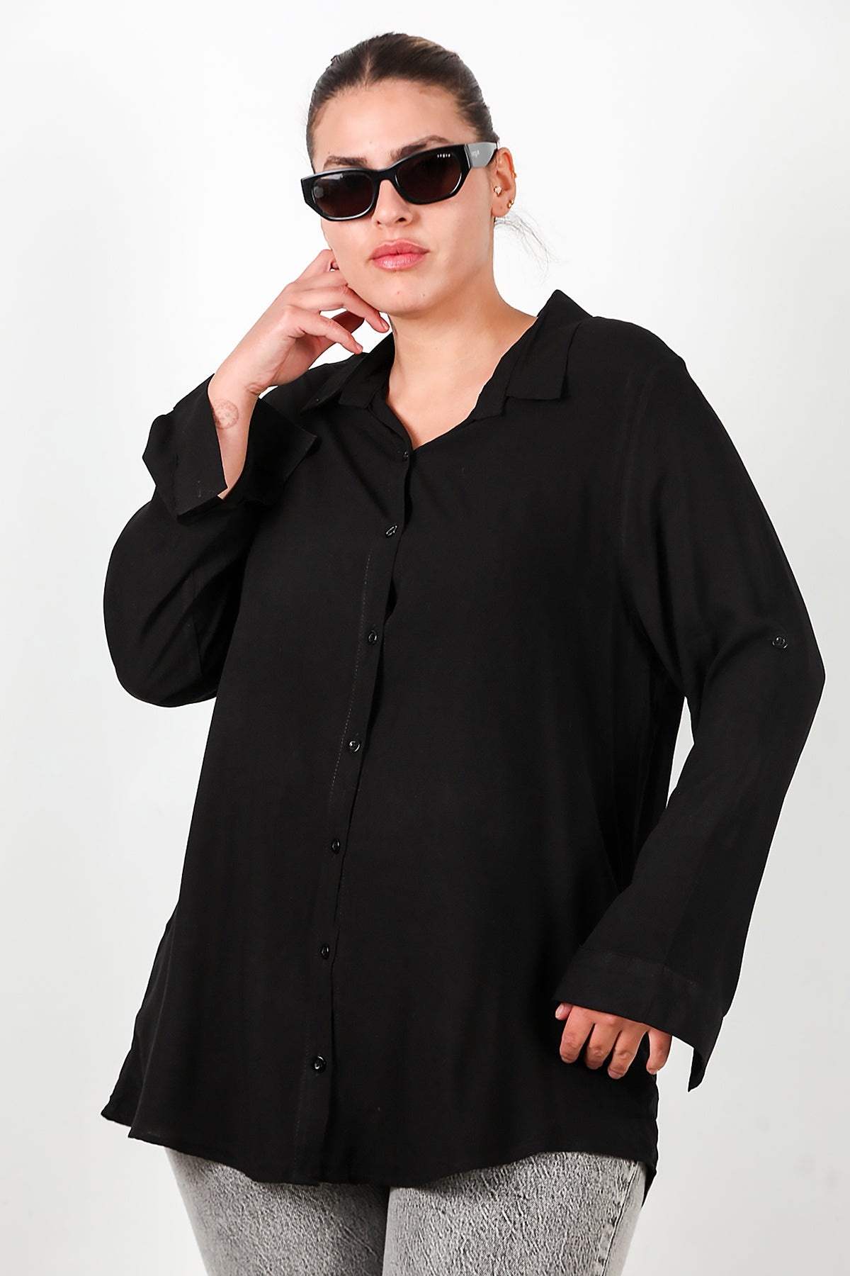 Büyük Beden Gömlek Siyah Siyah