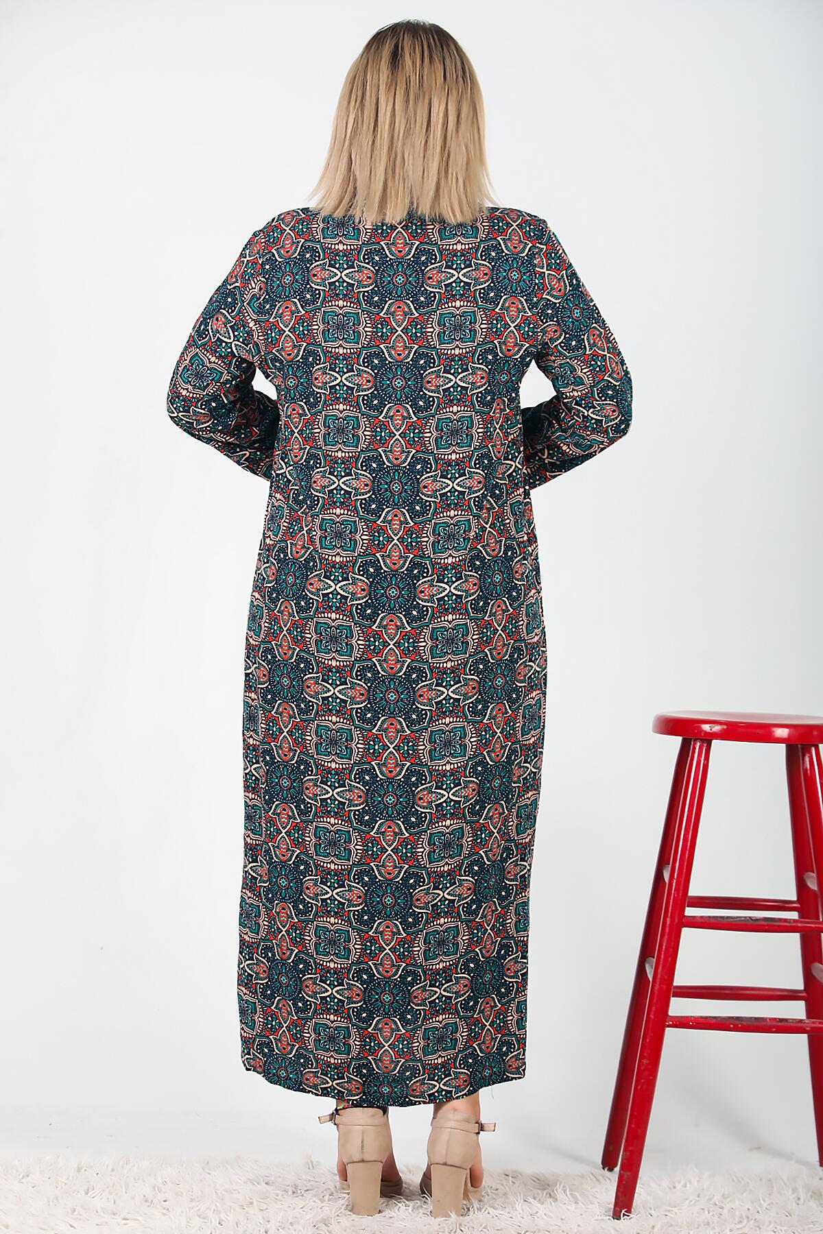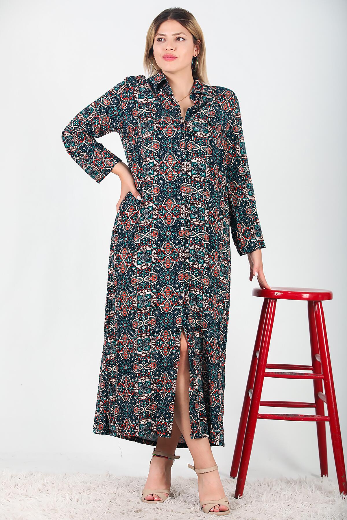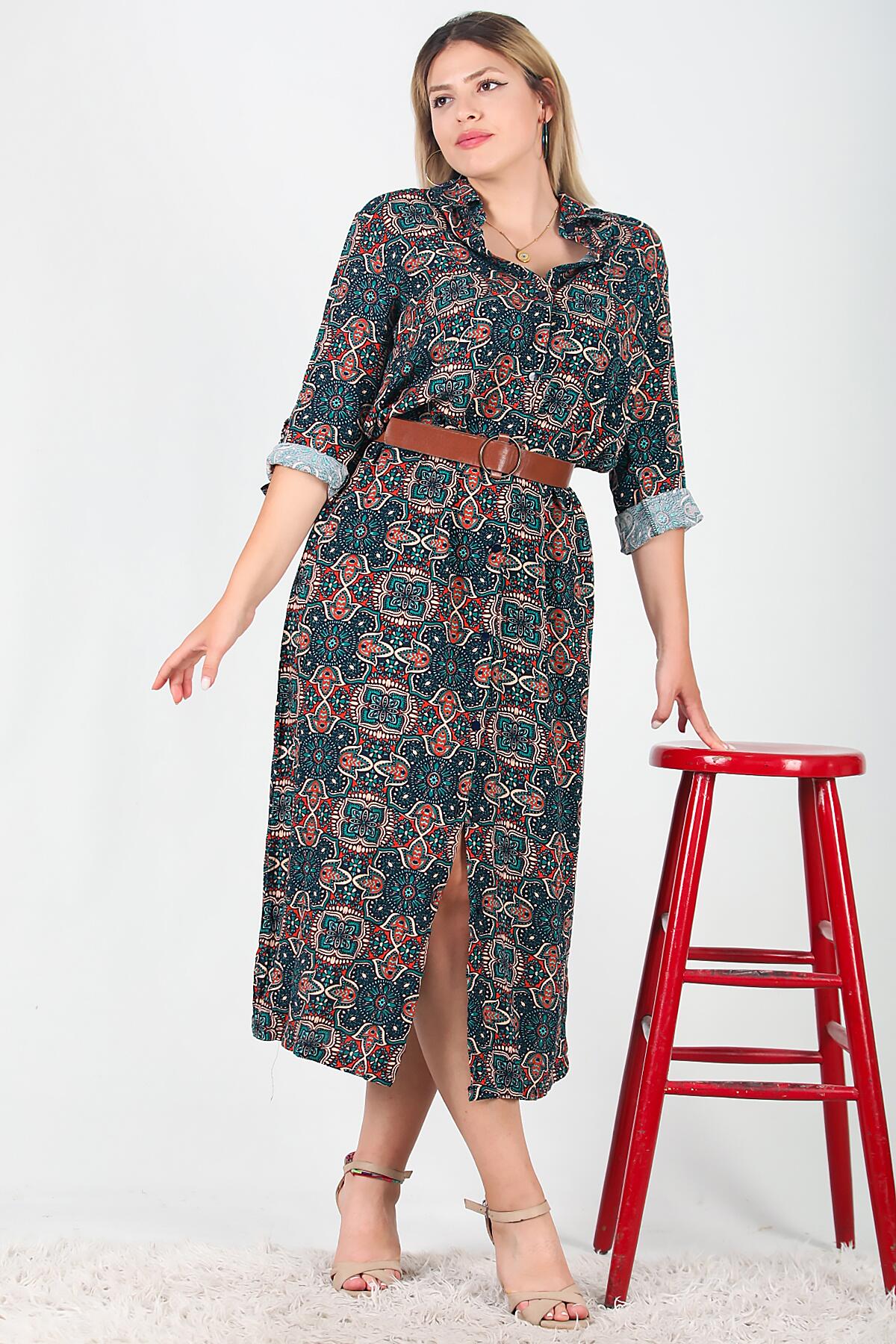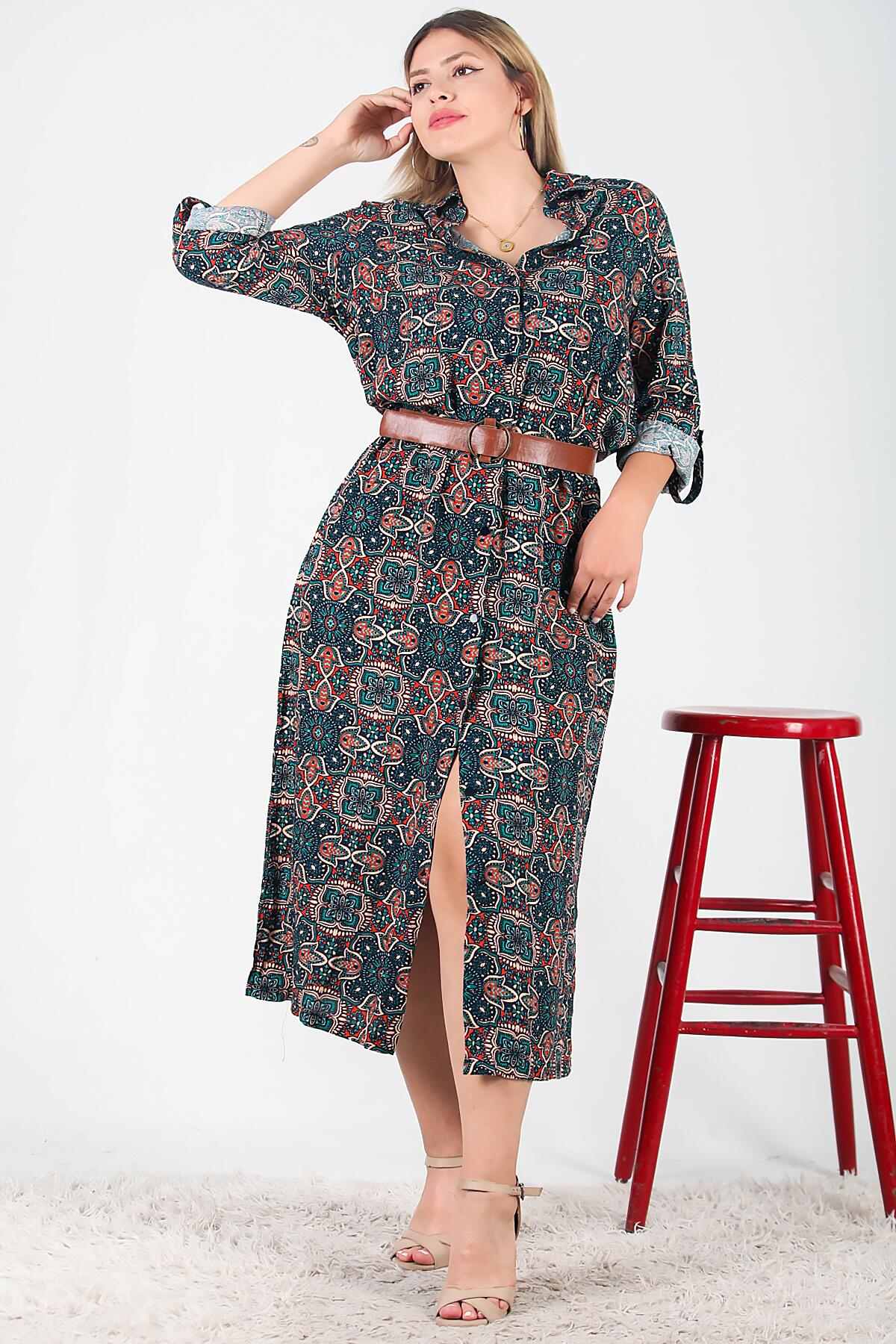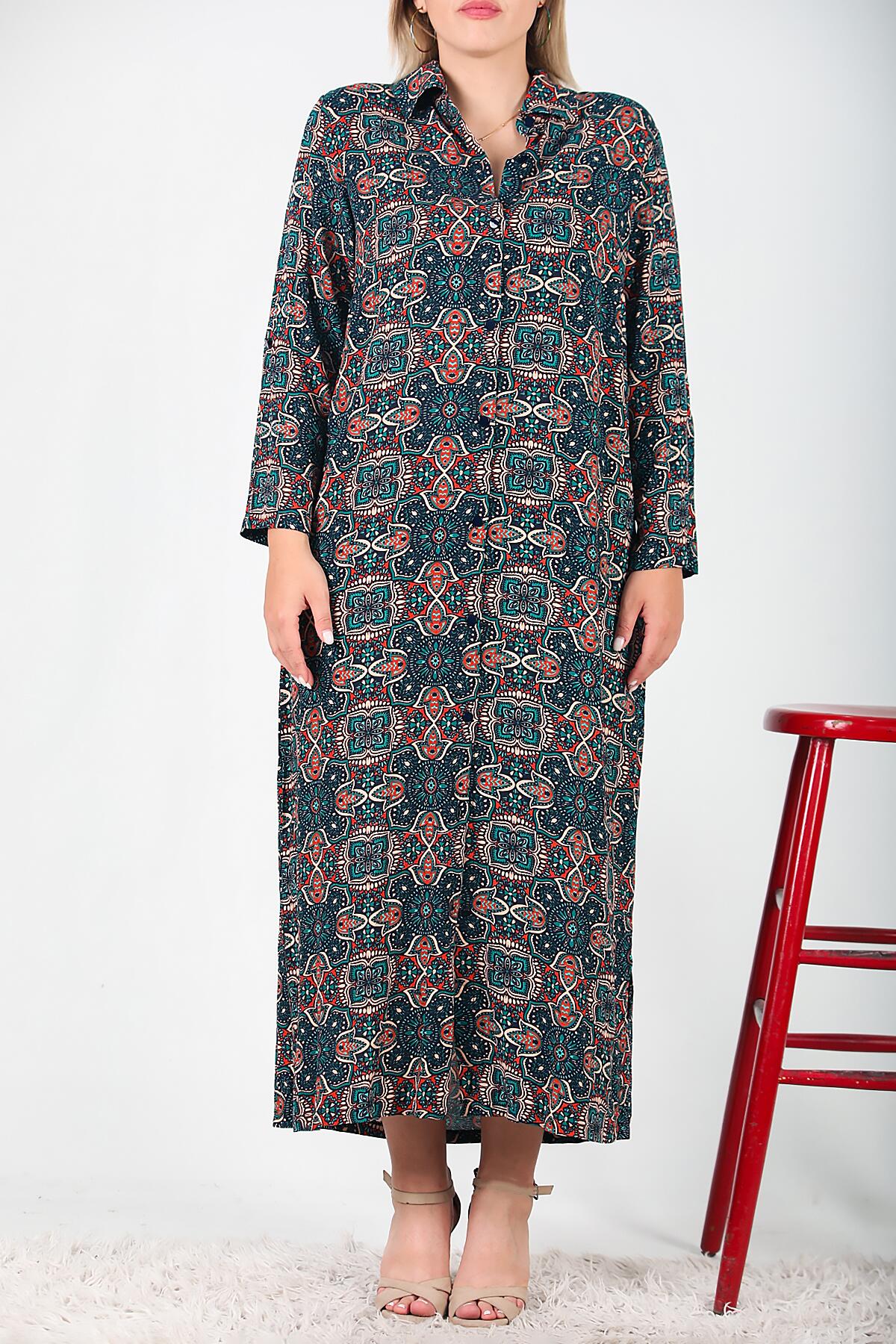 Büyük Beden Gömlek Yaka Uzun Elbise Lacivert