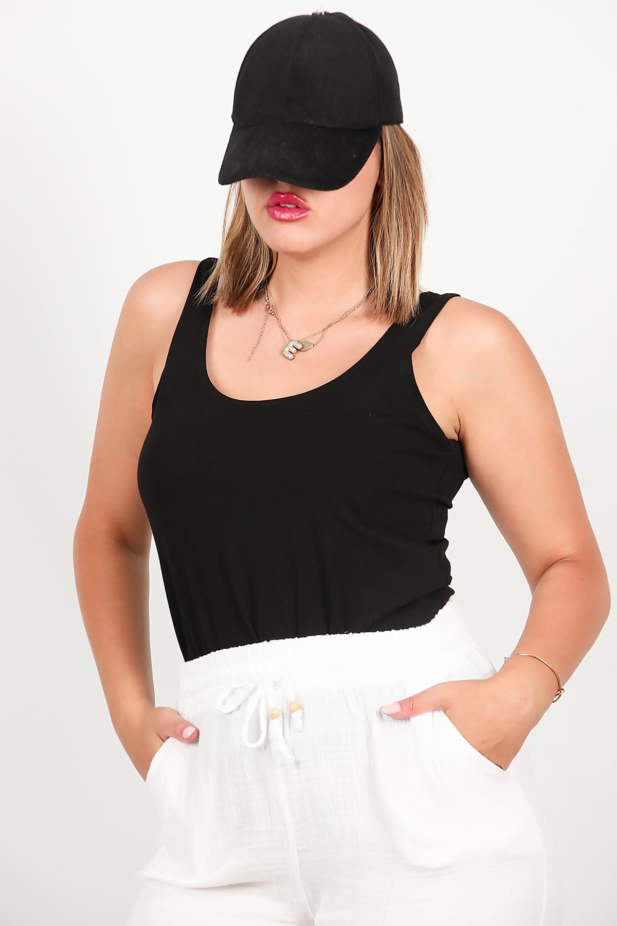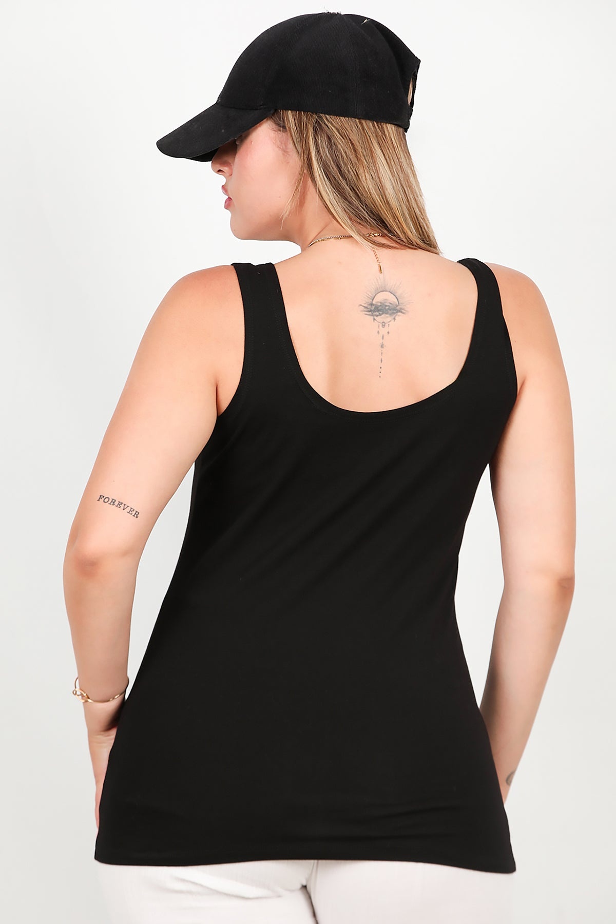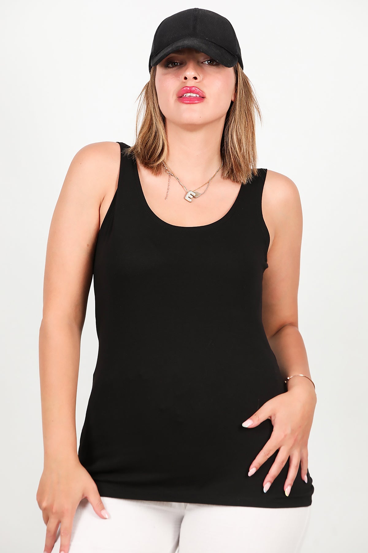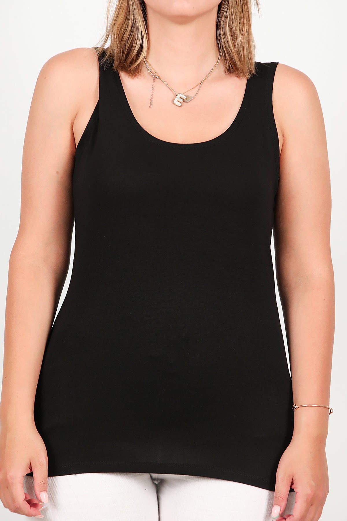 Büyük Beden Kalın Askılı Likralı Bluz Siyah