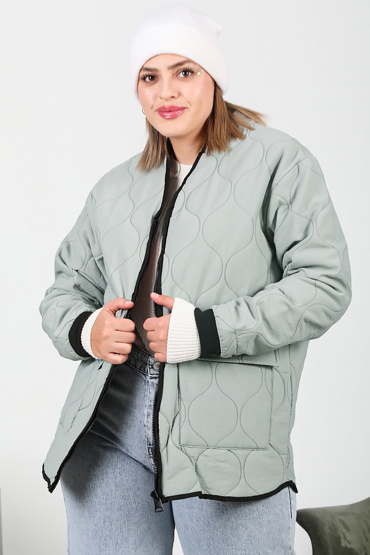 Numune Bedeni: 44Numune Boyu: 78 cmKumaş Tipi: %100 PolyesterKol: Uzun KolKumaş Türü: Kapitone