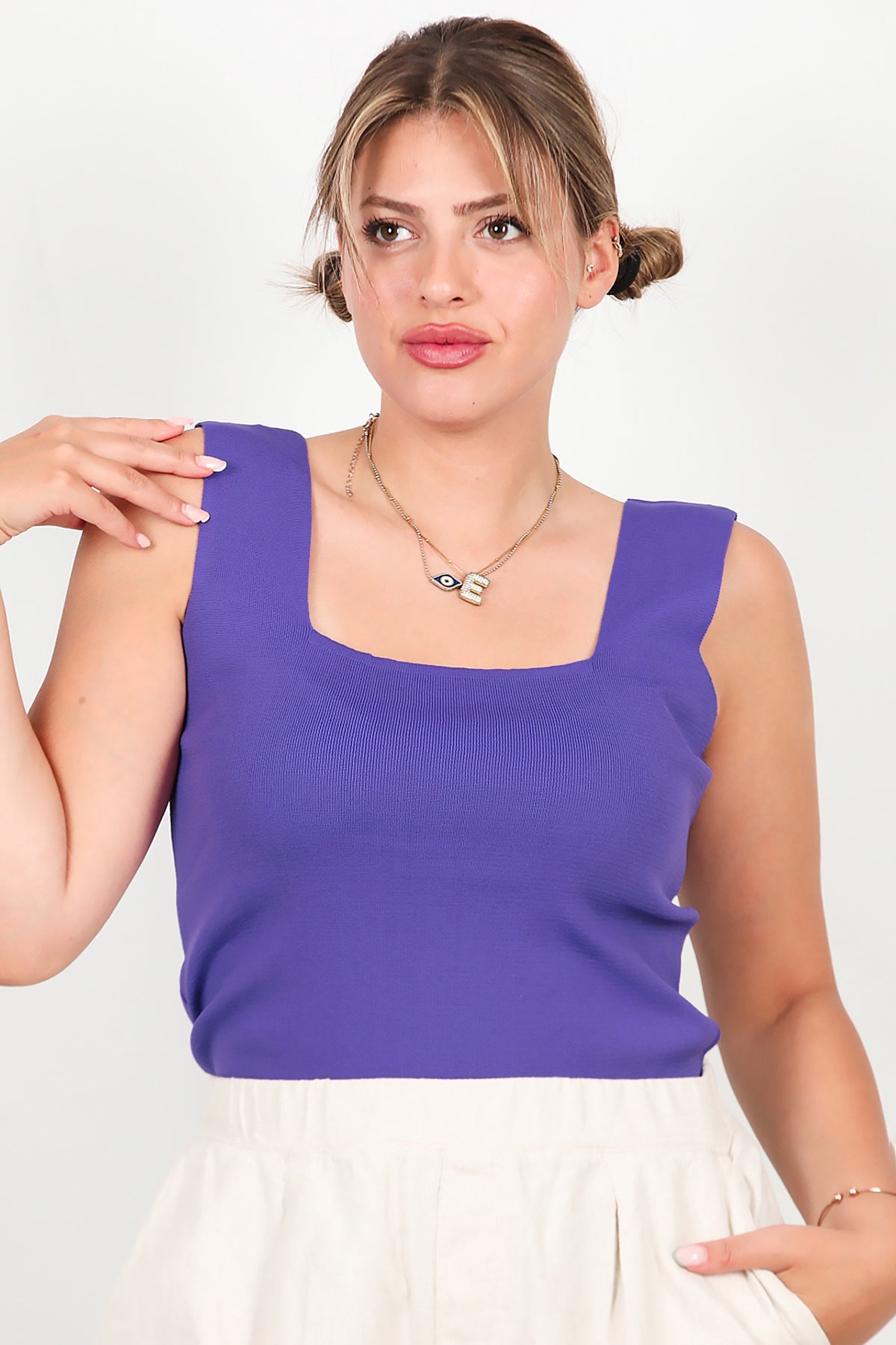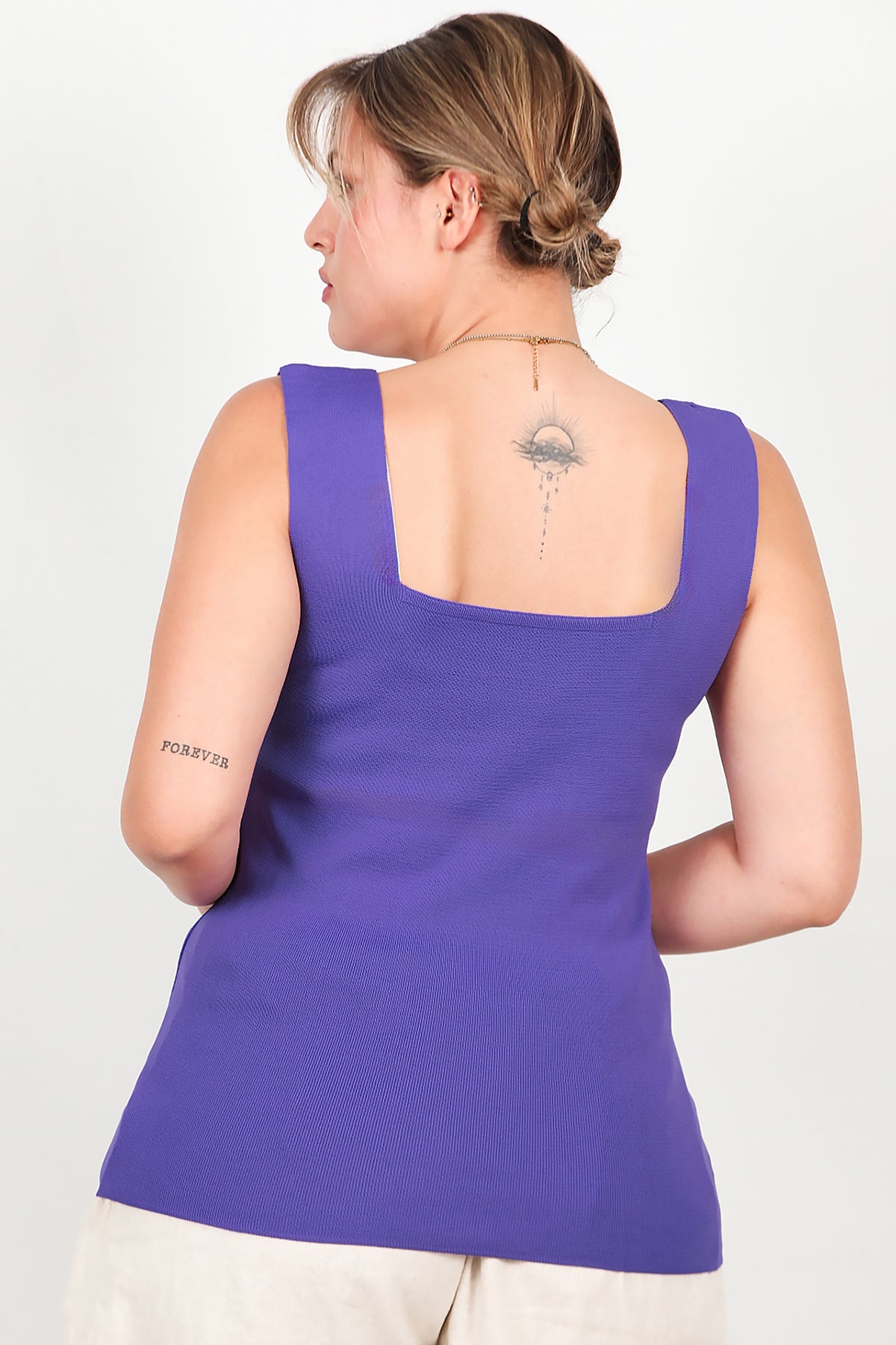 Büyük Beden Kare Yaka Bluz Mor