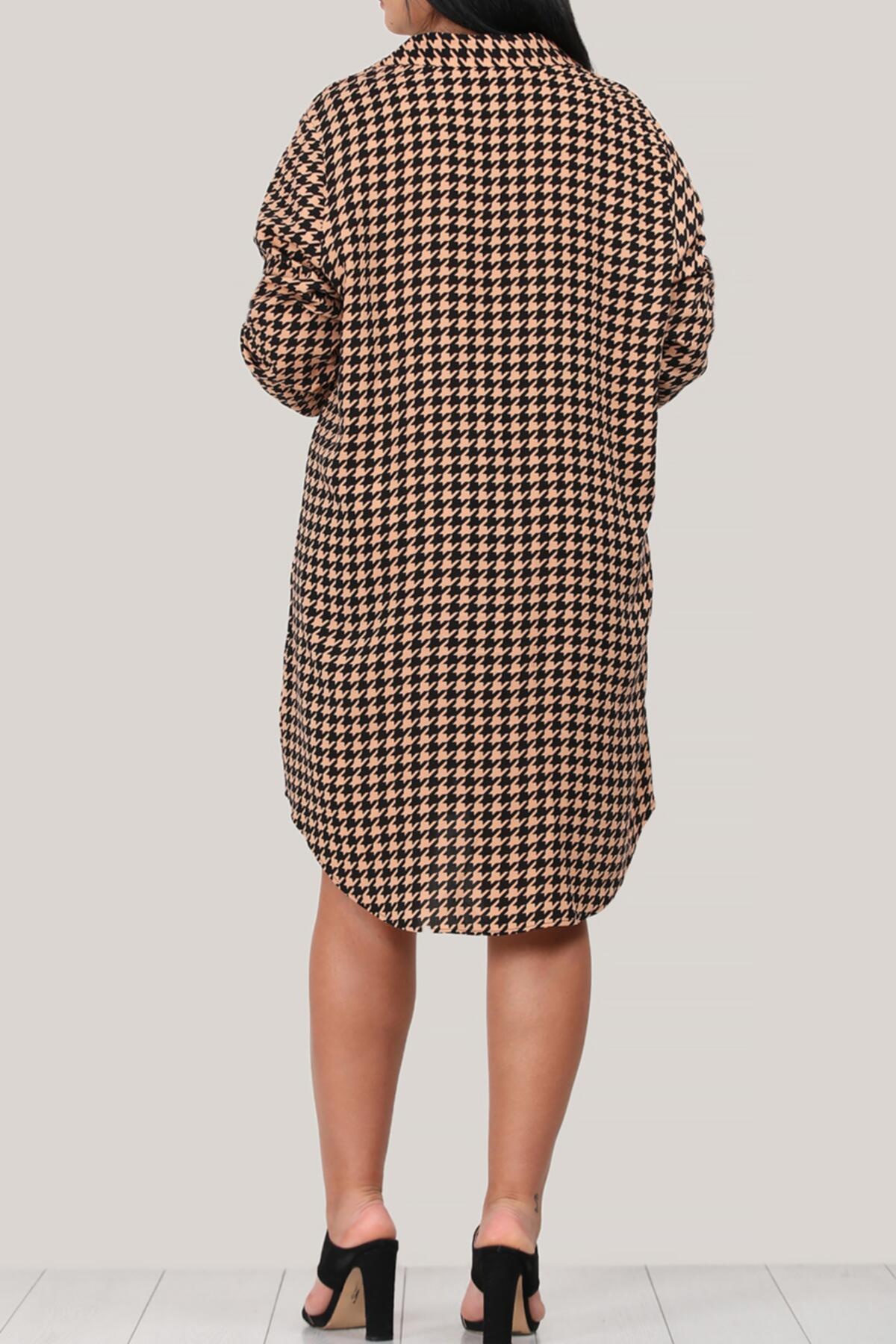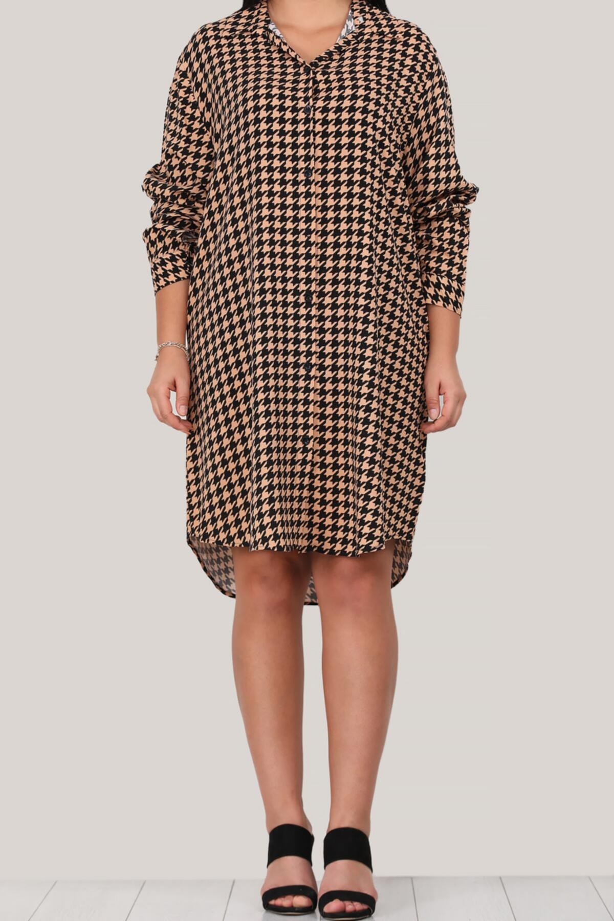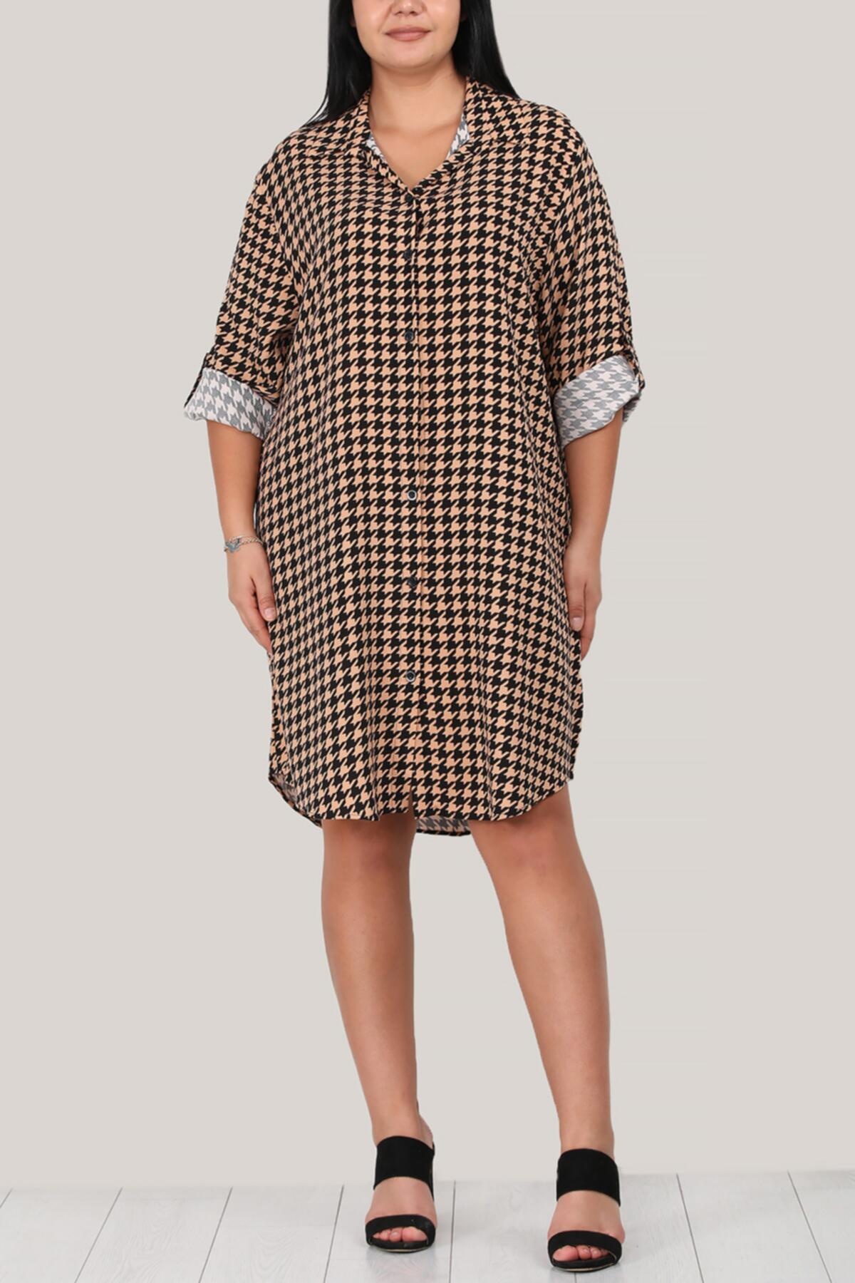 Büyük Beden Kısa Gömlek Elbise Bej Bej