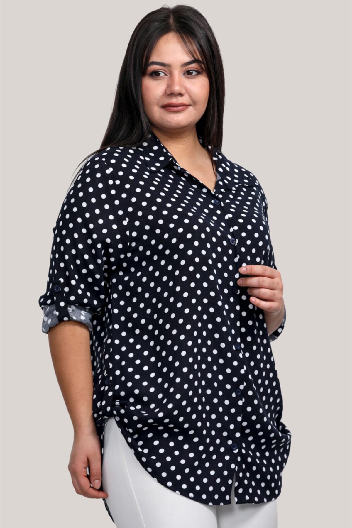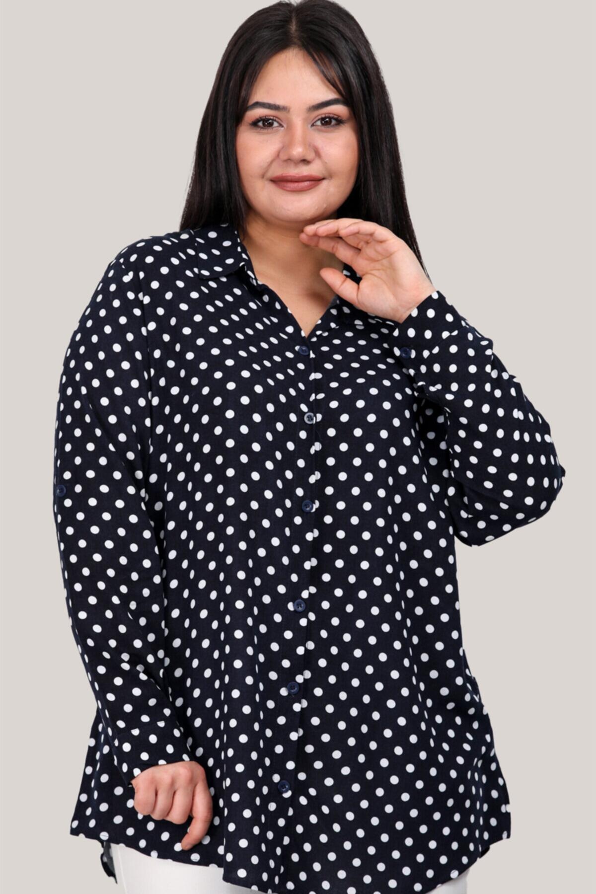Büyük Beden Kol Katlamalı Gömlek Koyu Lacivert Koyu Lacivert