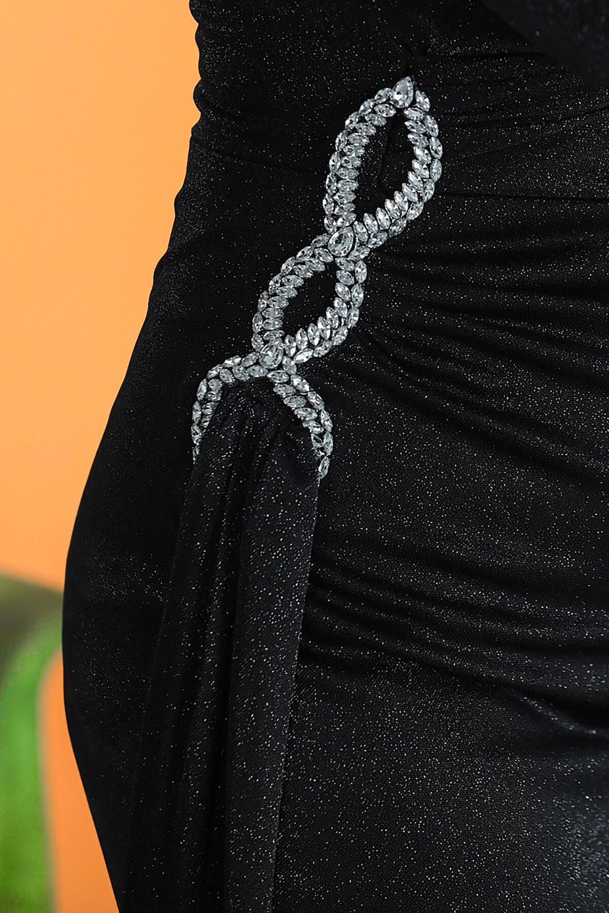 Büyük Beden Kruvaze Yaka Simli Abiye Siyah