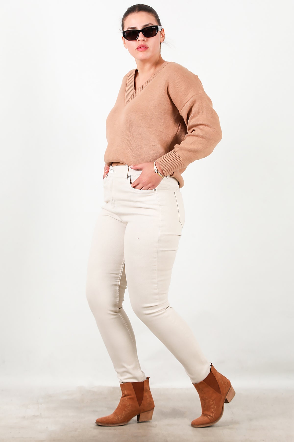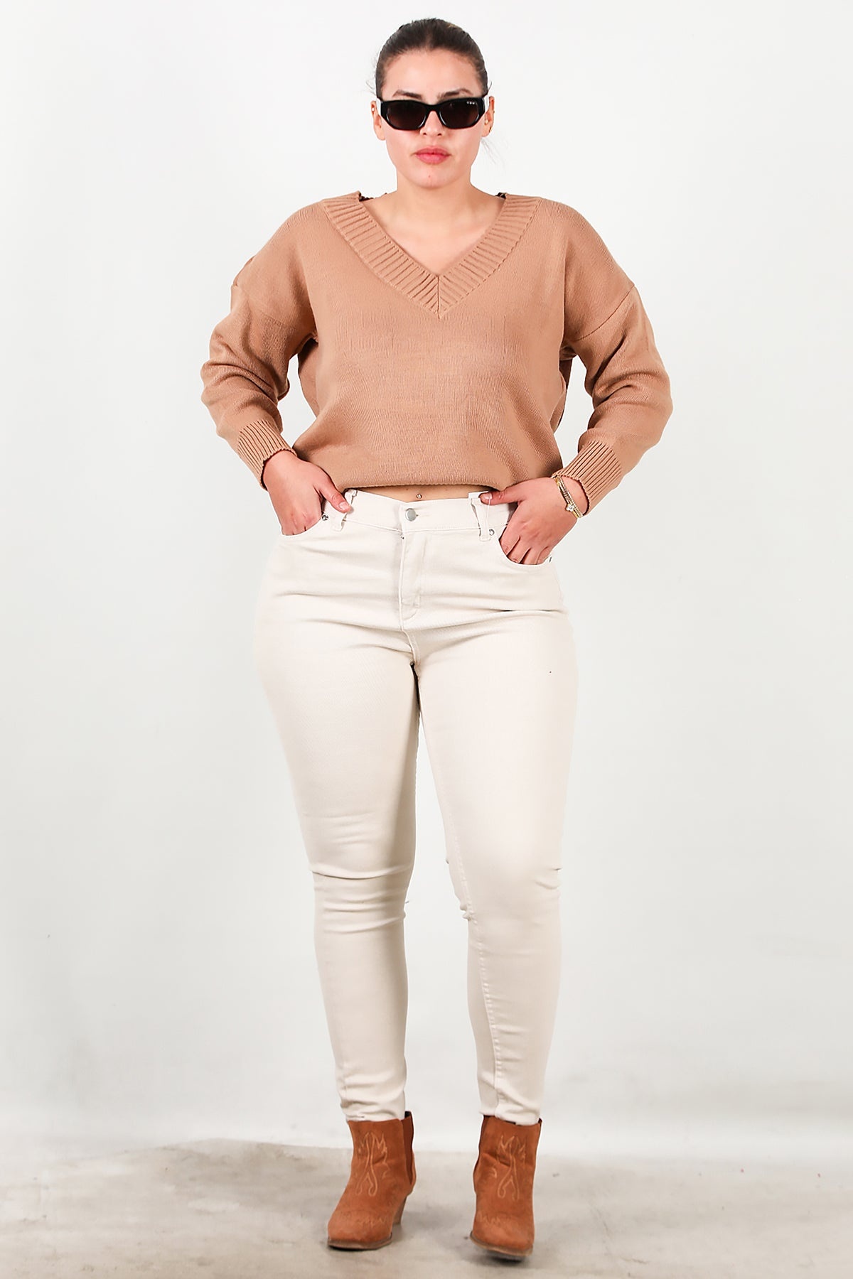 MODEL BİLGİLERİ Boy: 175 cm Göğüs:94 cm Bel: 75 cm Kalça: 112 cm