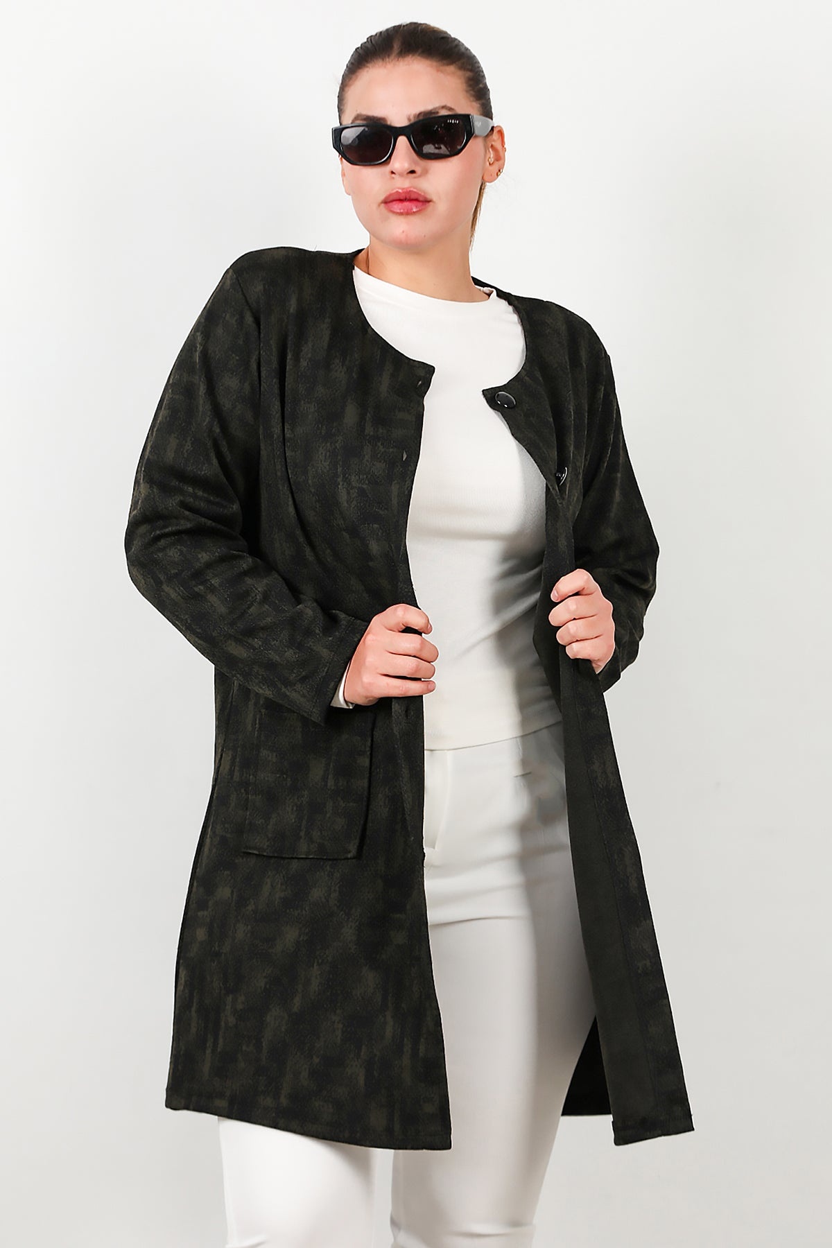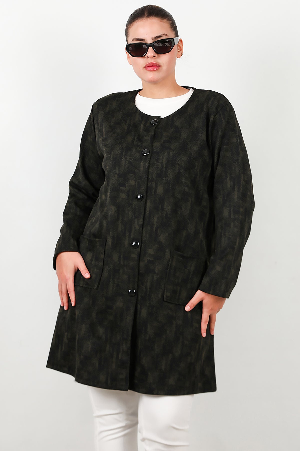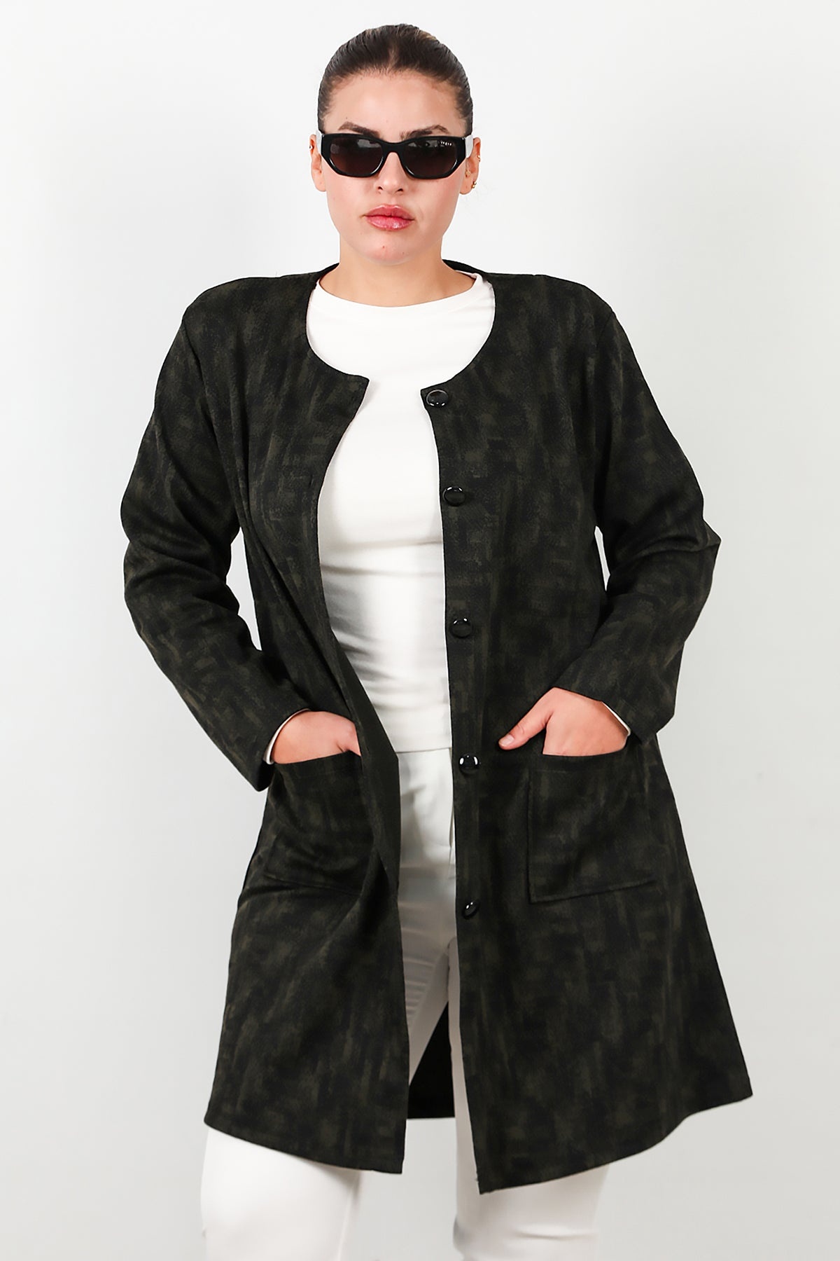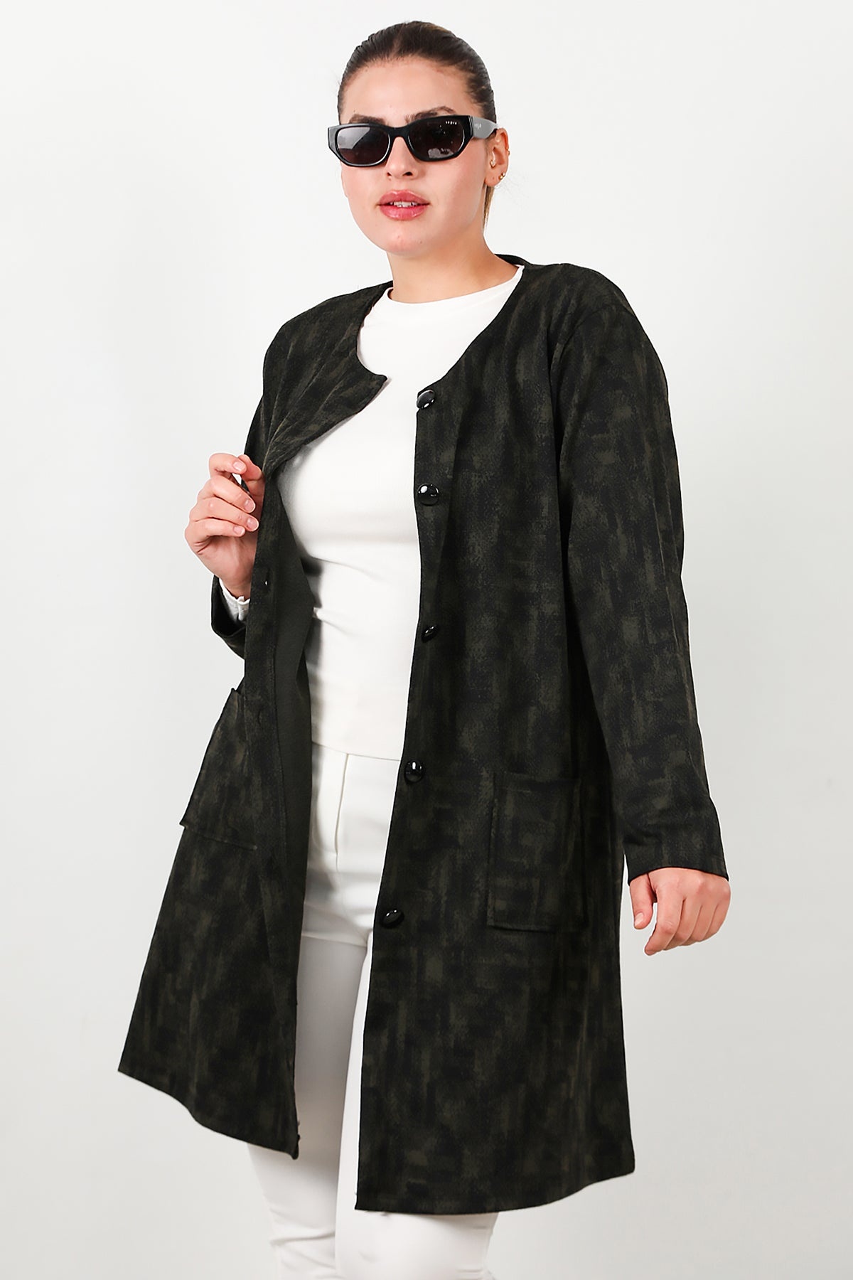 MODEL BİLGİLERİ Boy: 175 cm Göğüs:94 cm Bel: 75 cm Kalça: 112 cm