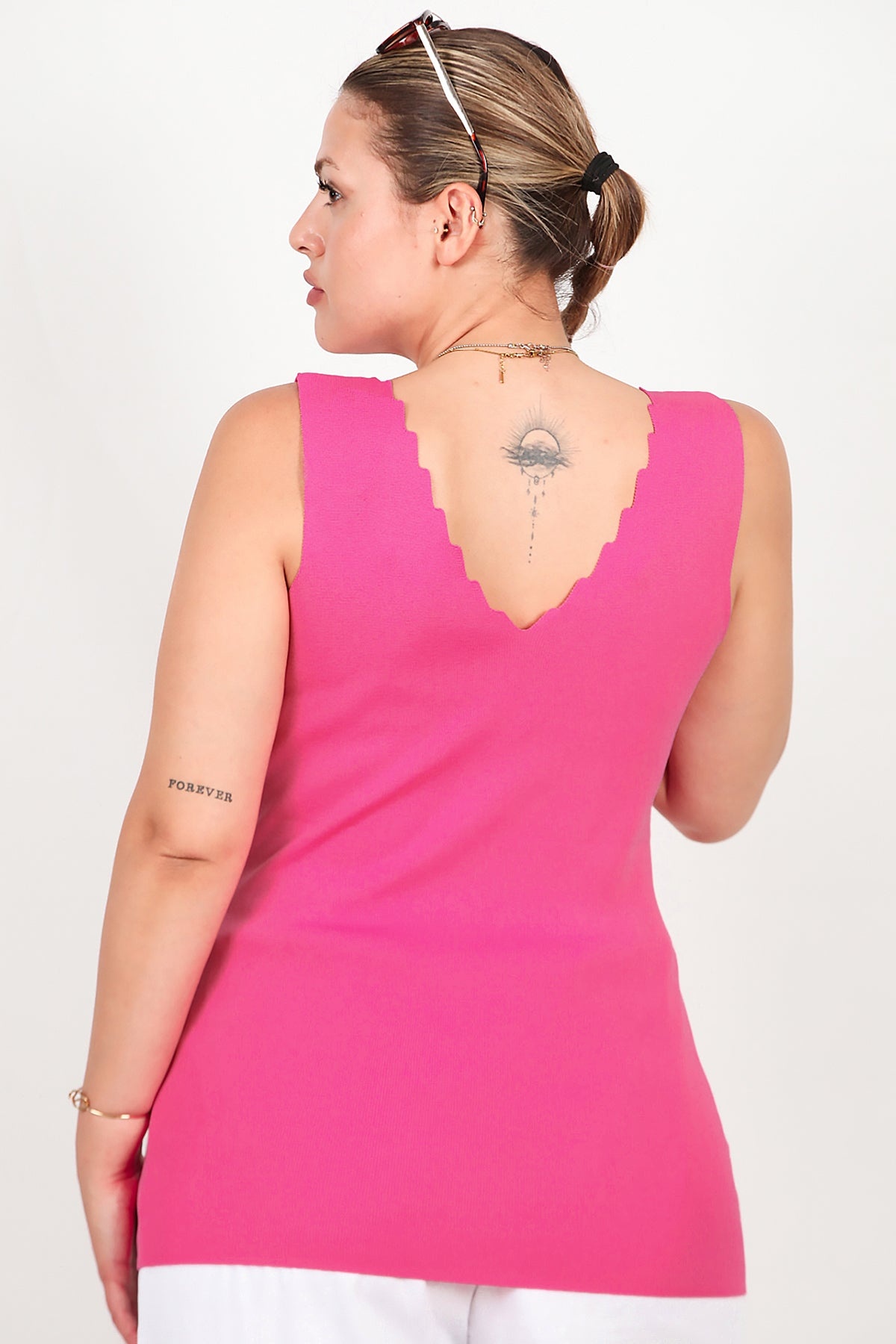 Büyük Beden Merdiven Yaka Bluz Pembe