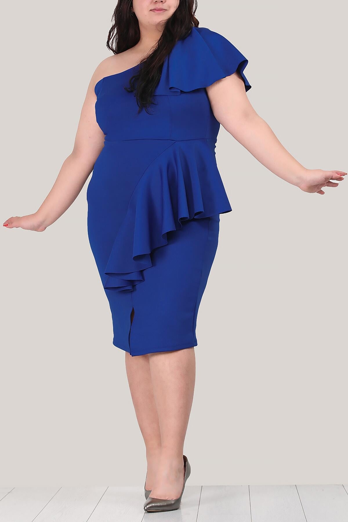 Büyük Beden Midi Boy Tek Omuz Fırfır Detaylı Abiye Elbise Saks