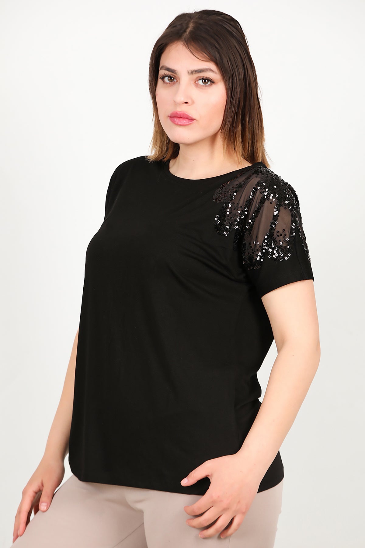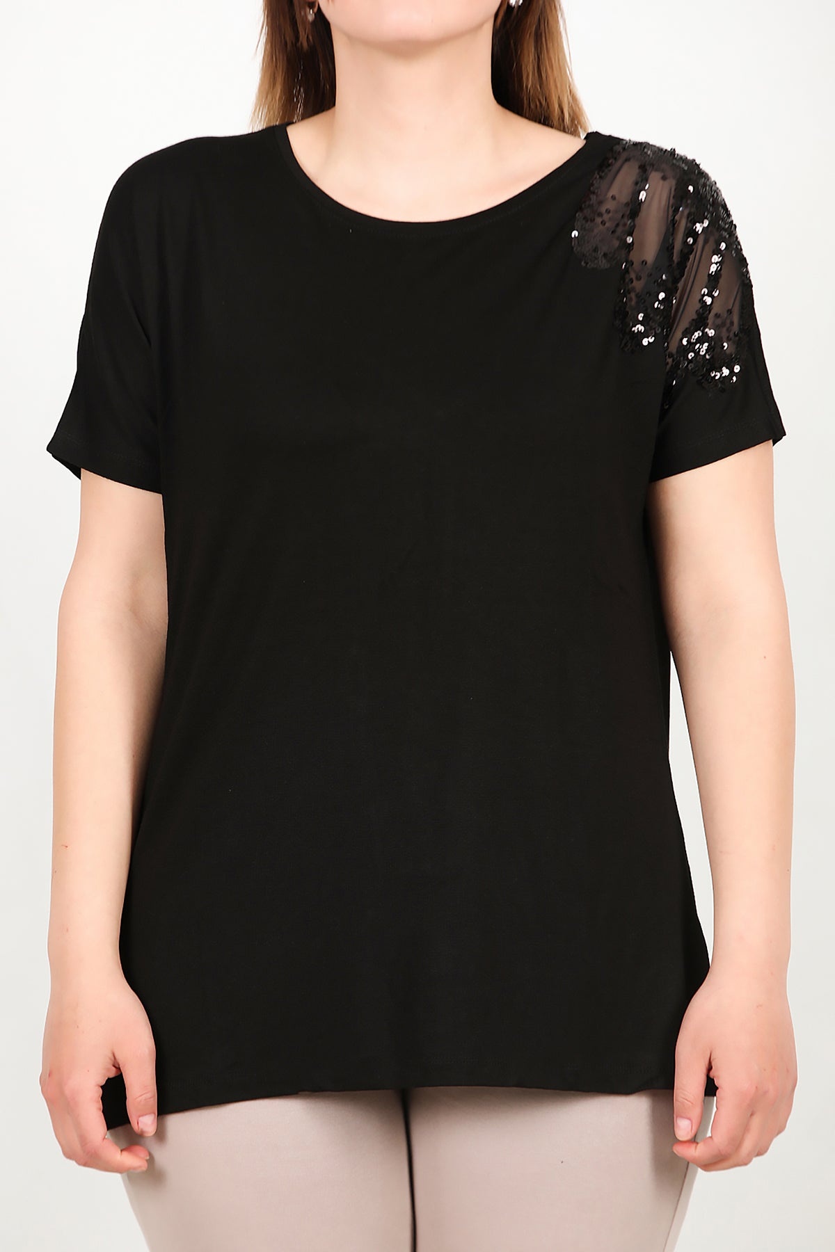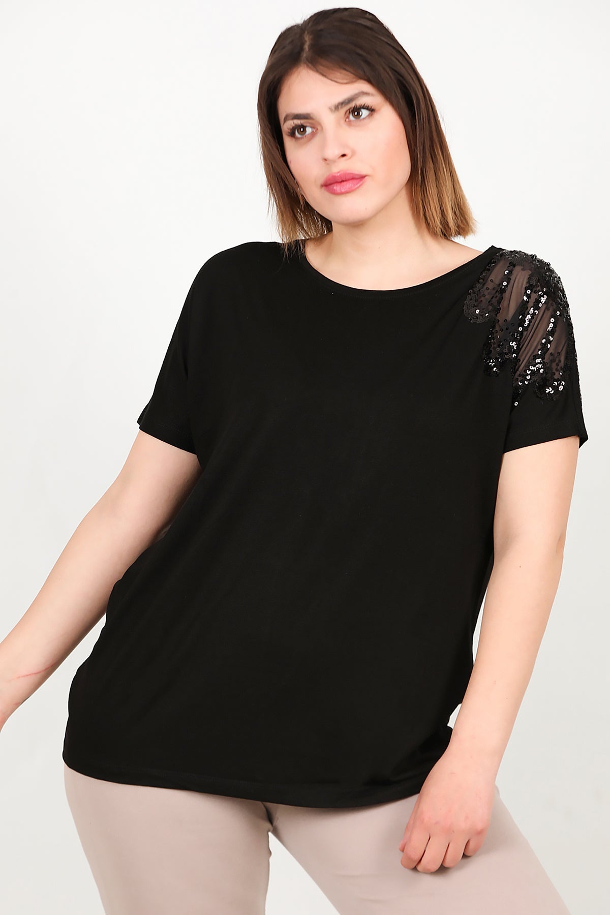 Büyük Beden Omuz Nakışlı Bluz Siyah