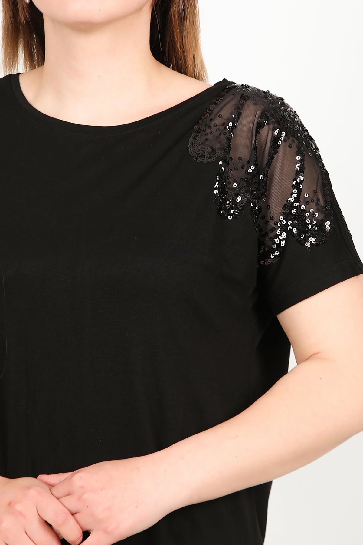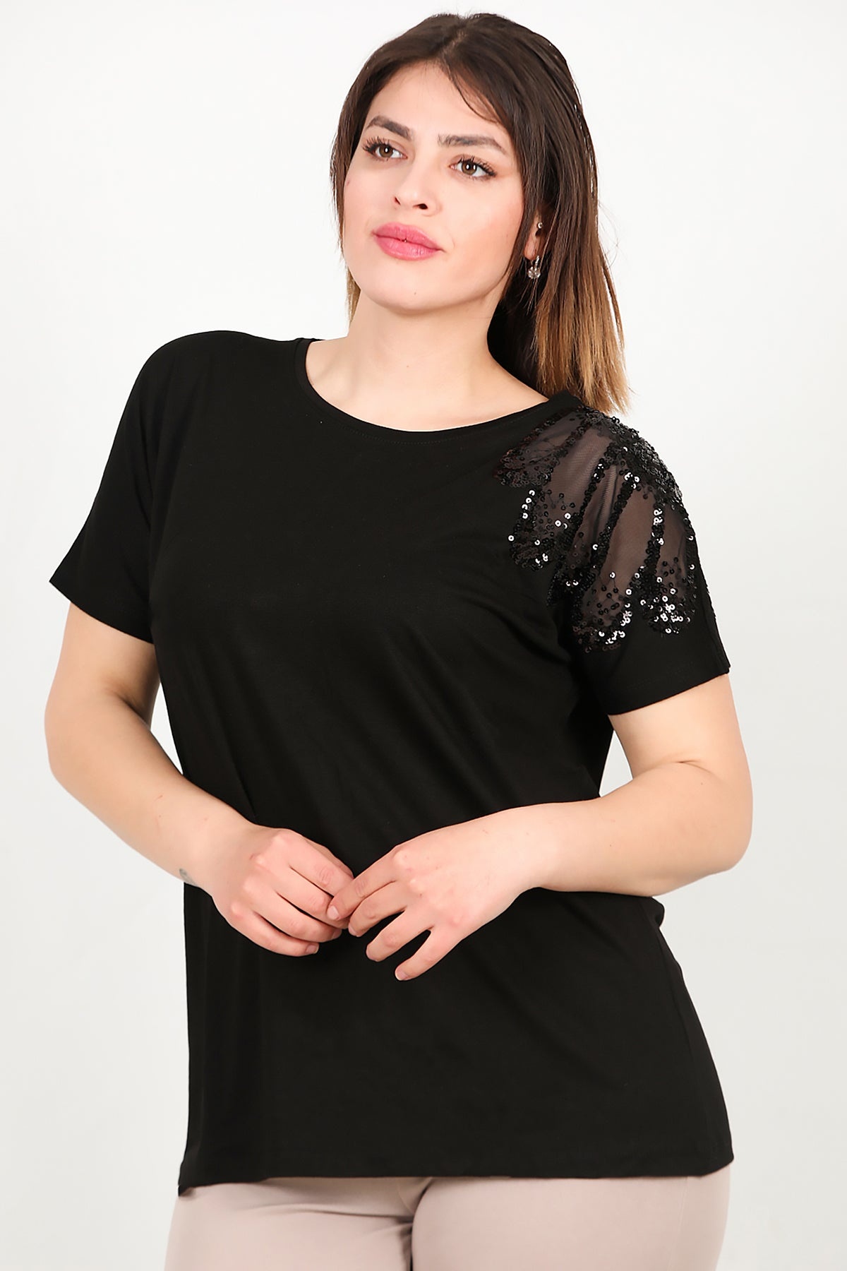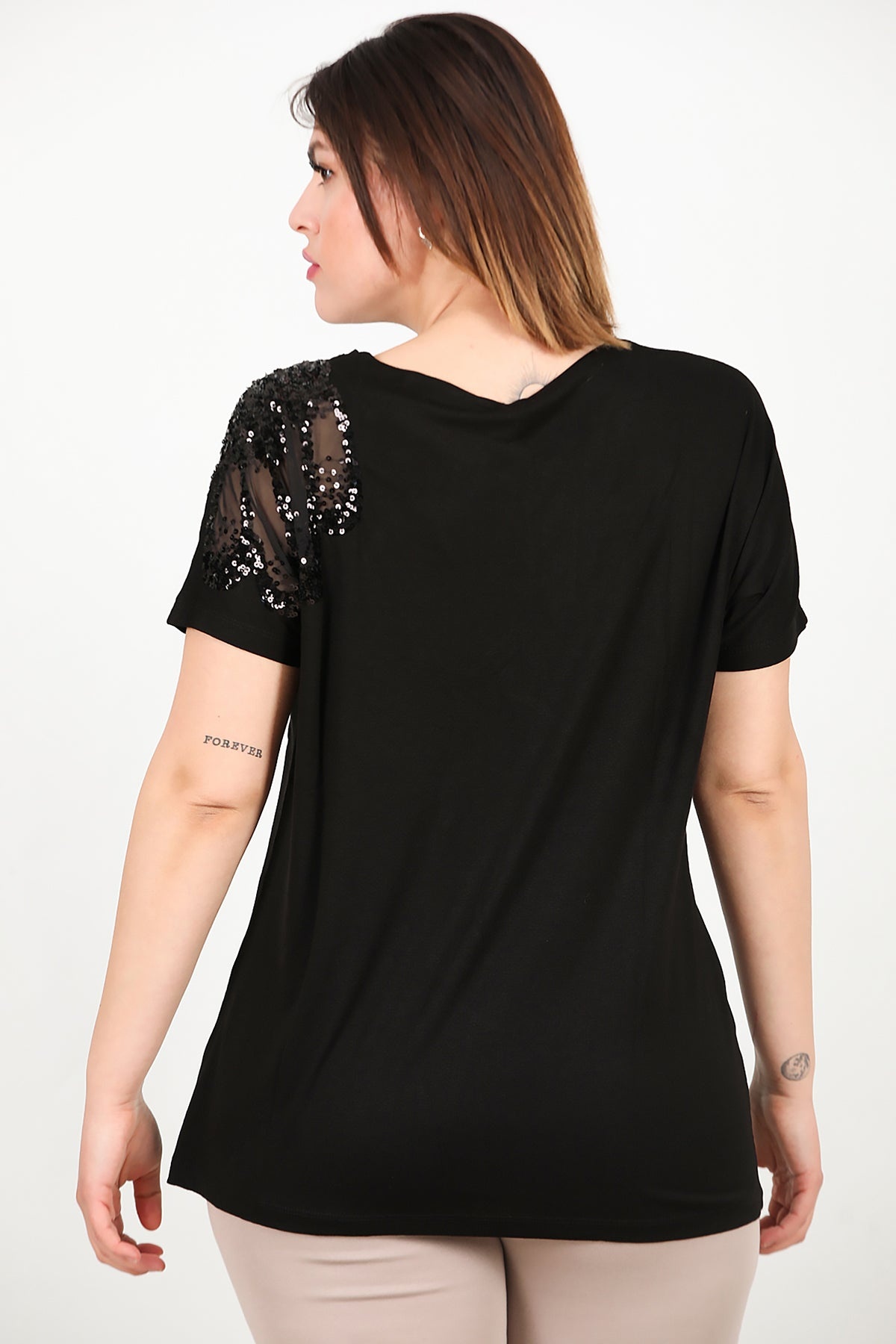 Büyük Beden Omuz Nakışlı Bluz Siyah