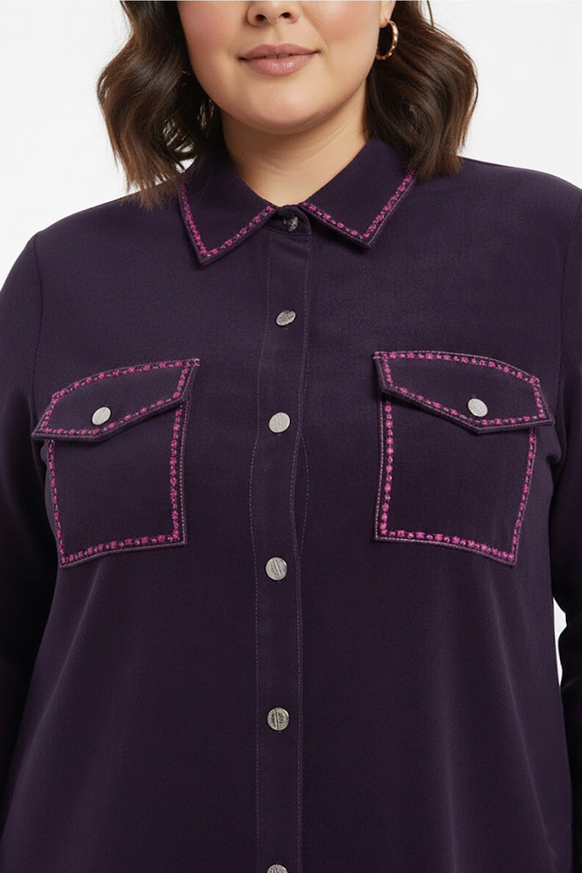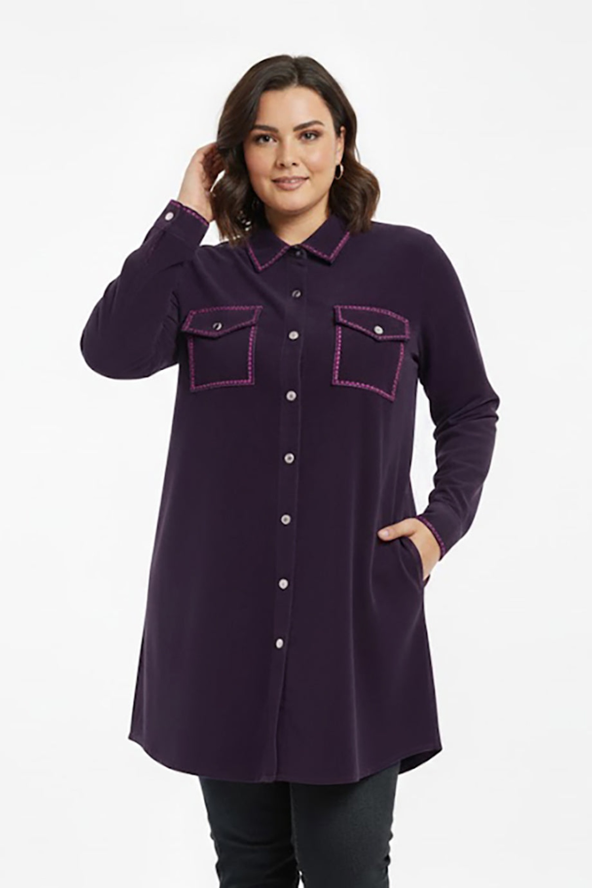 Büyük Beden Önü Düğmeli Süet Tunik Mor