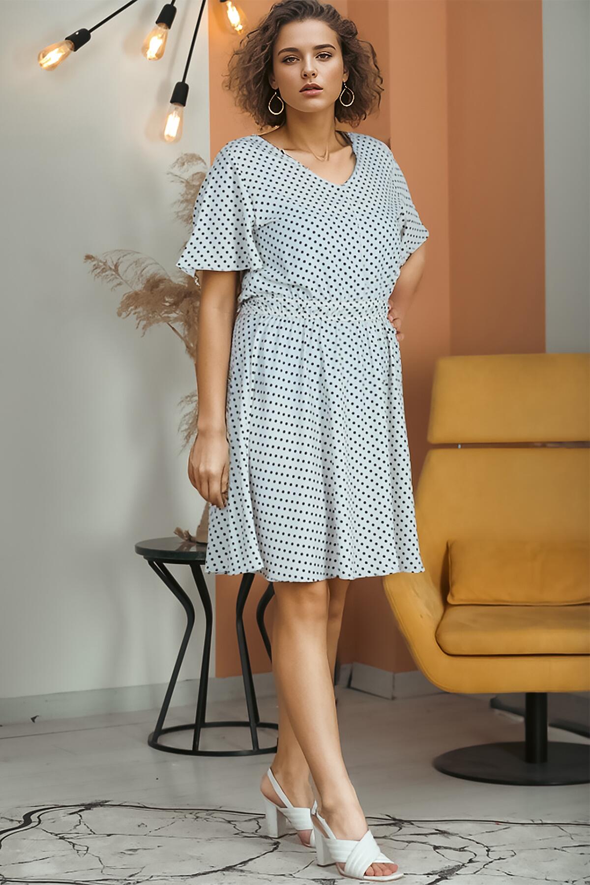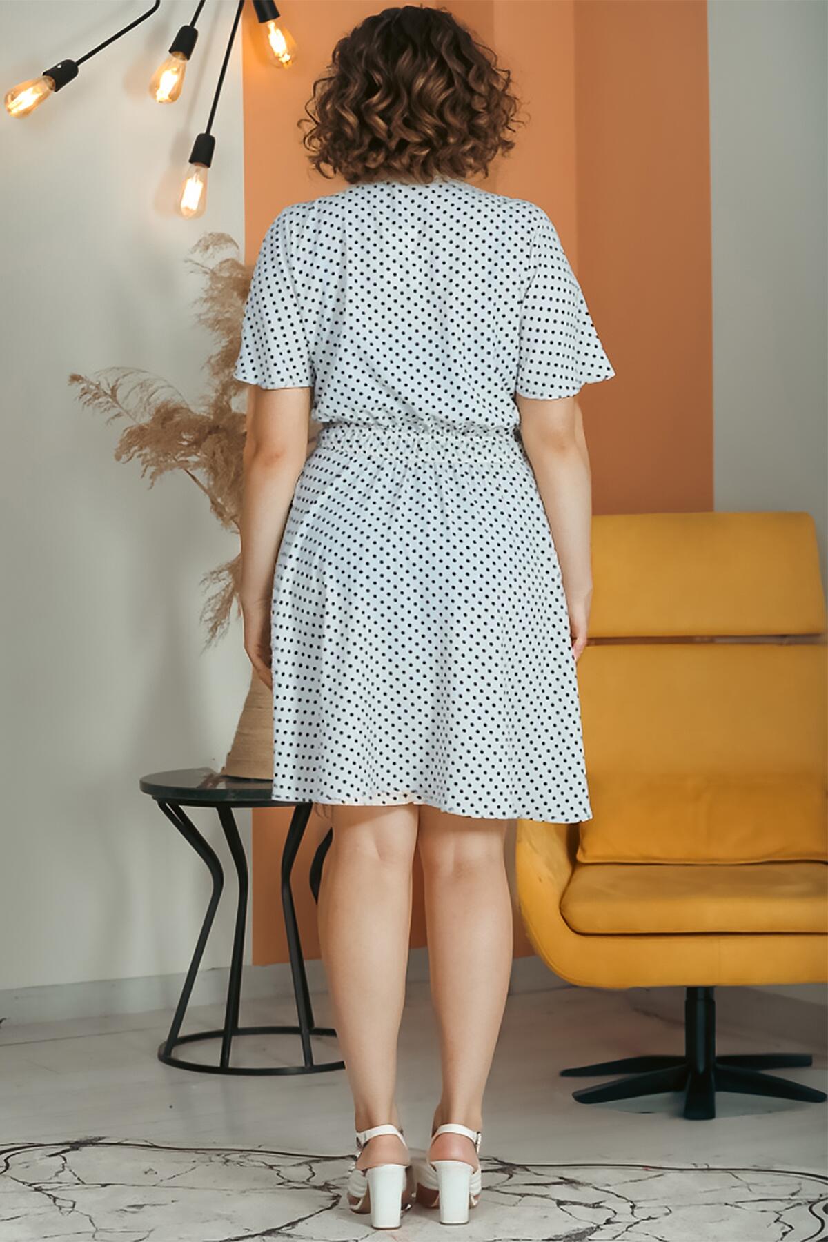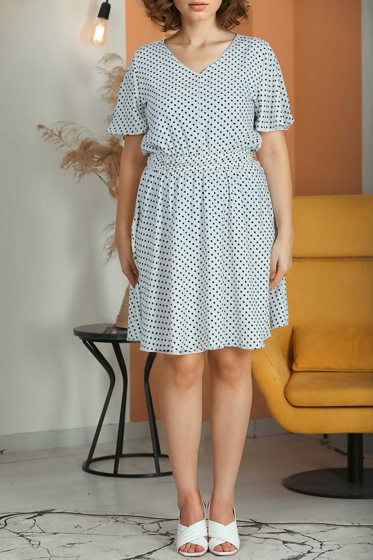 Büyük Beden Puantiyeli V Yaka Elbise