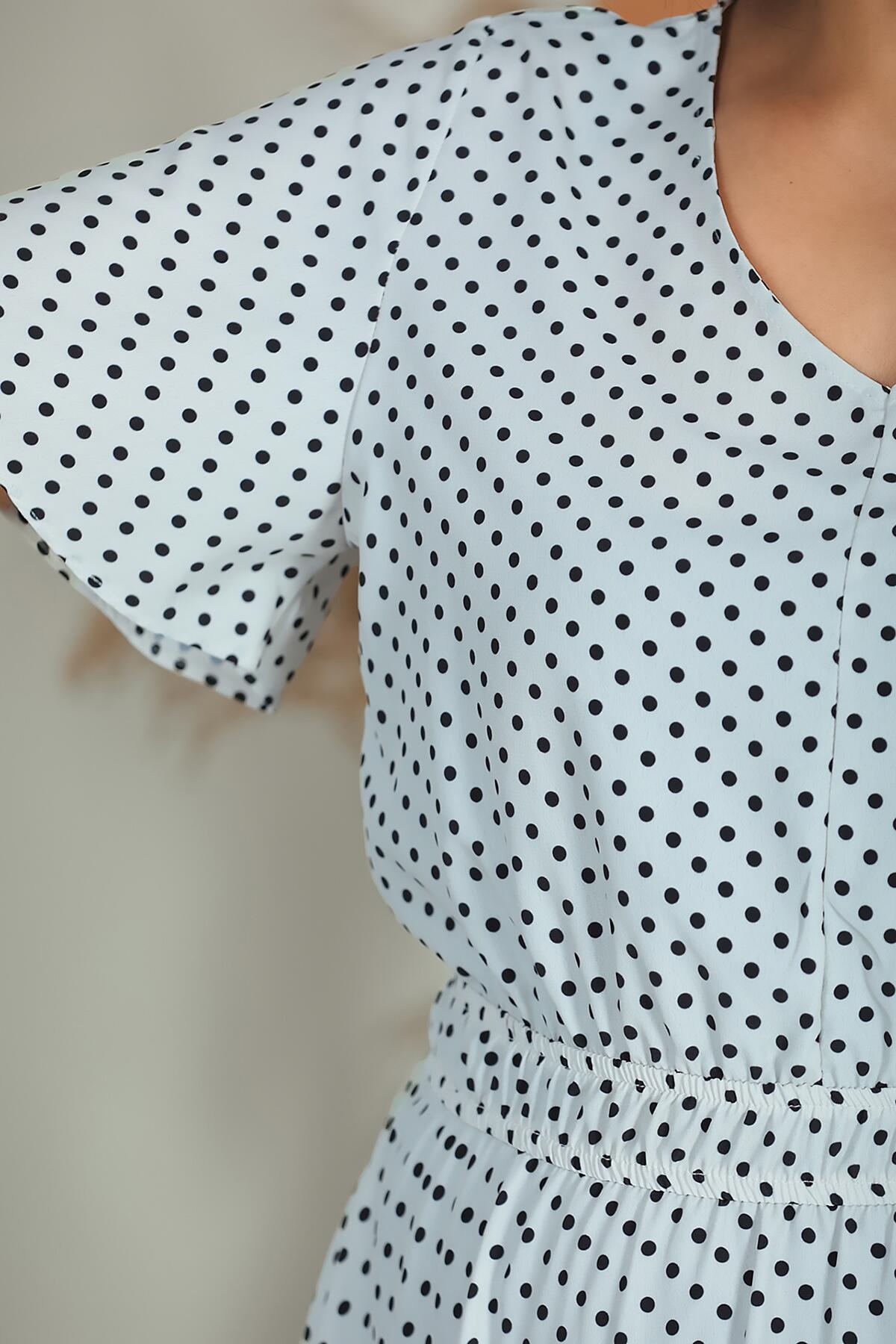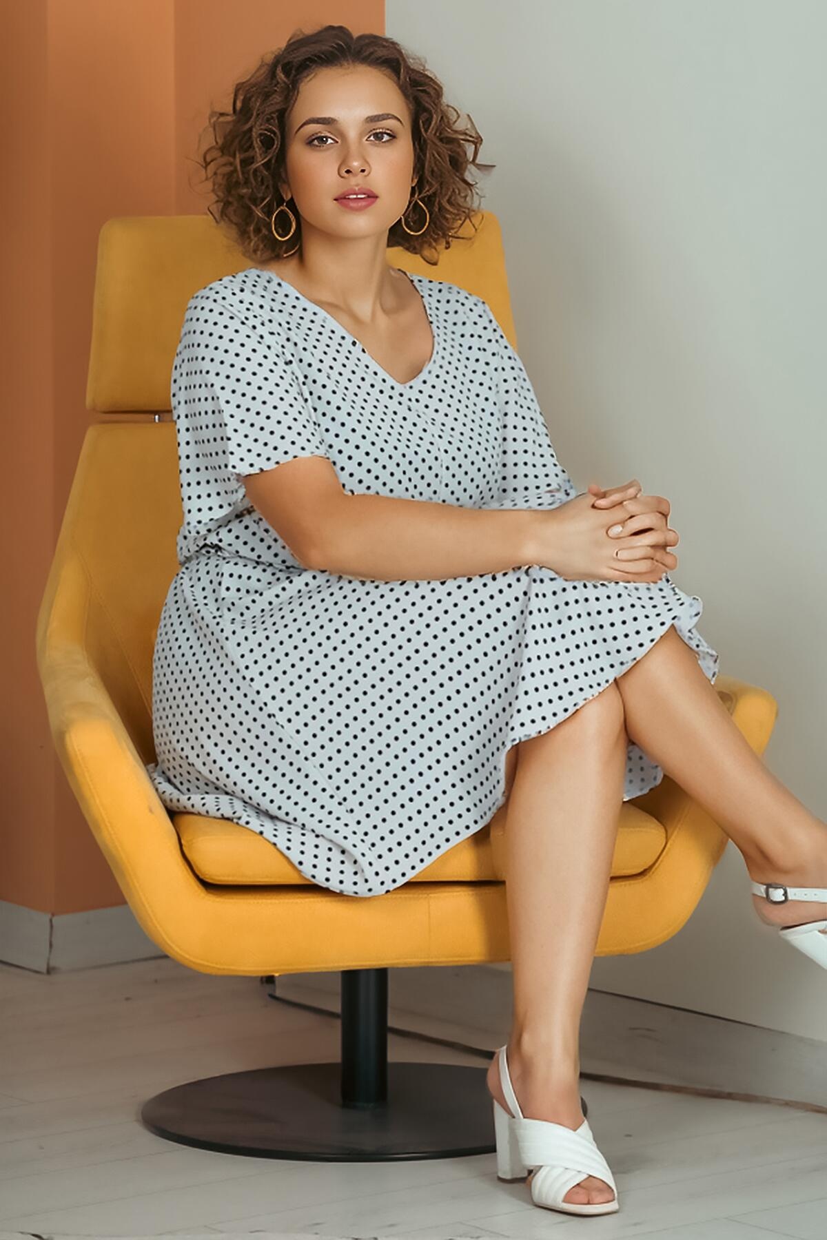 Büyük Beden Puantiyeli V Yaka Elbise Ekru