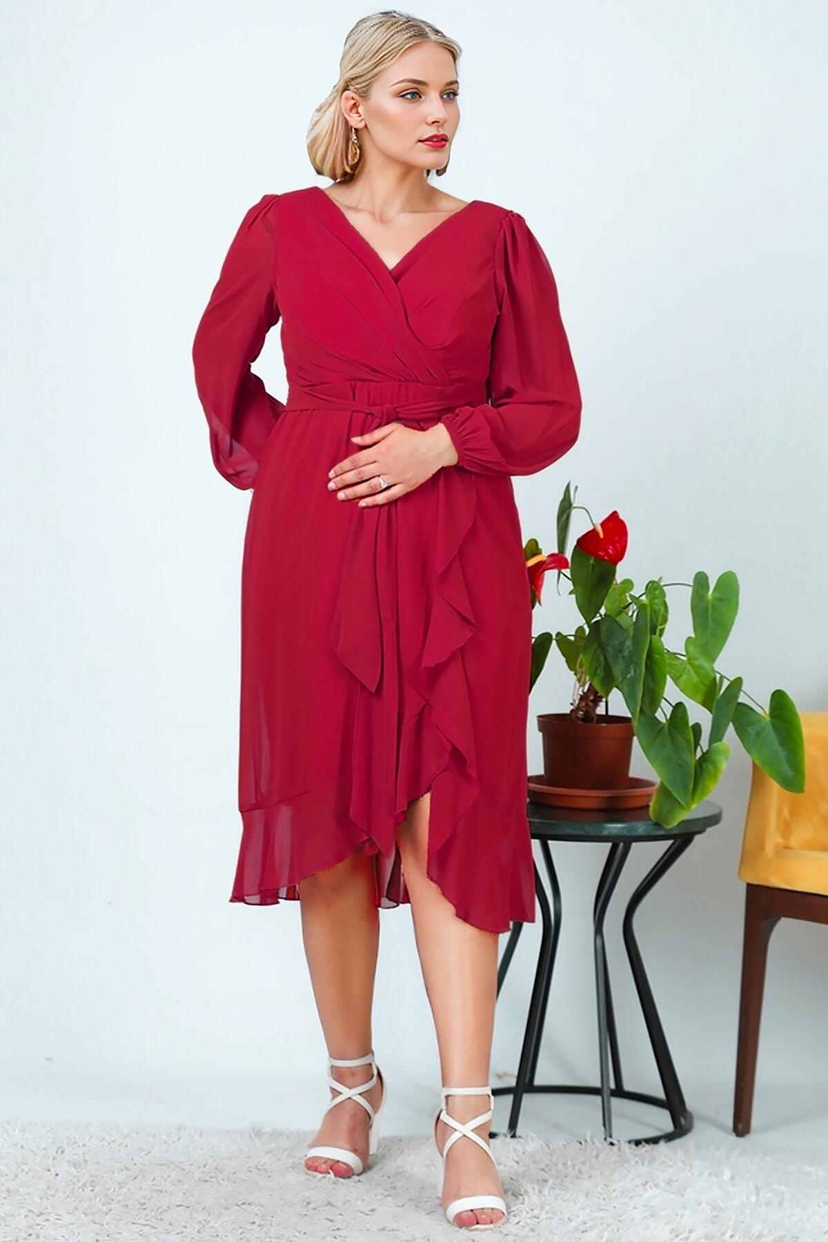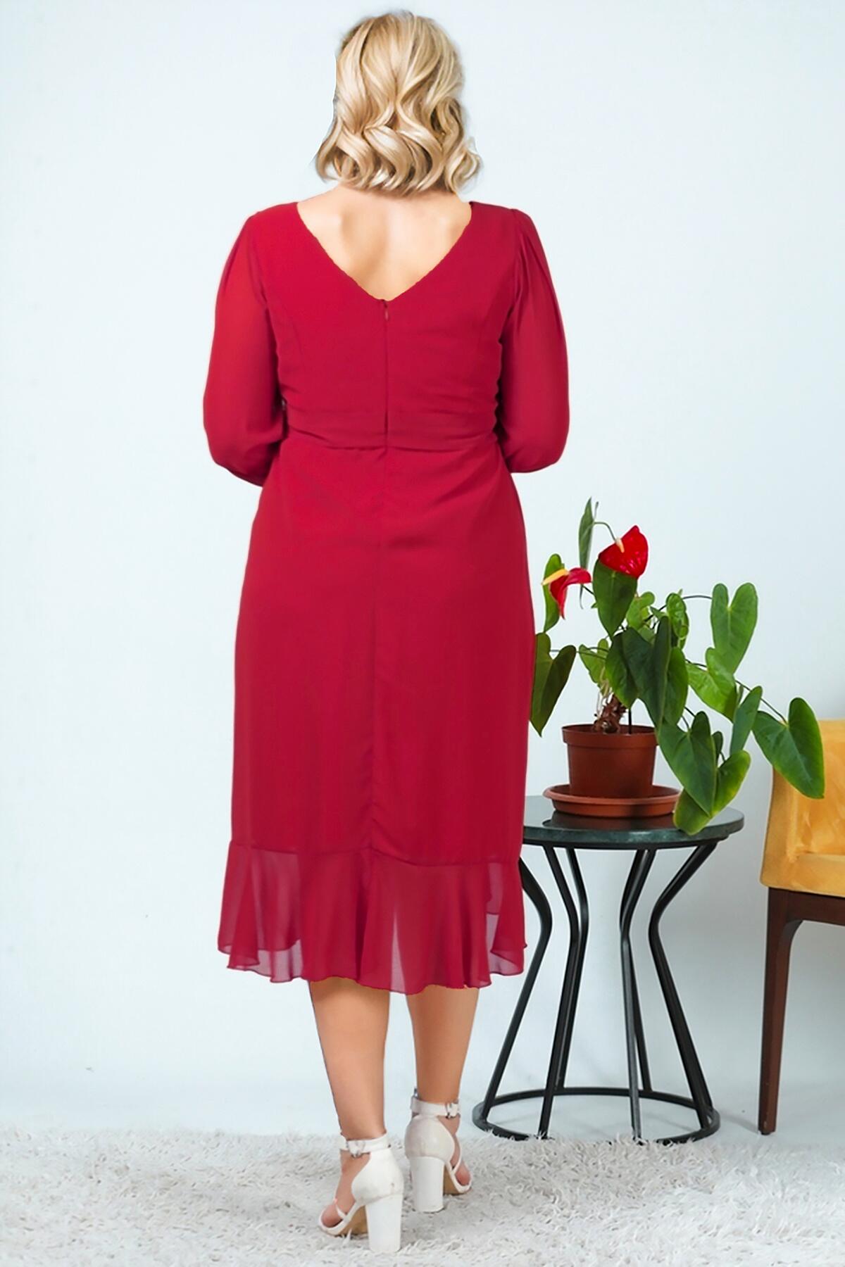Büyük Beden Şifon Abiye Elbise Kırmızı