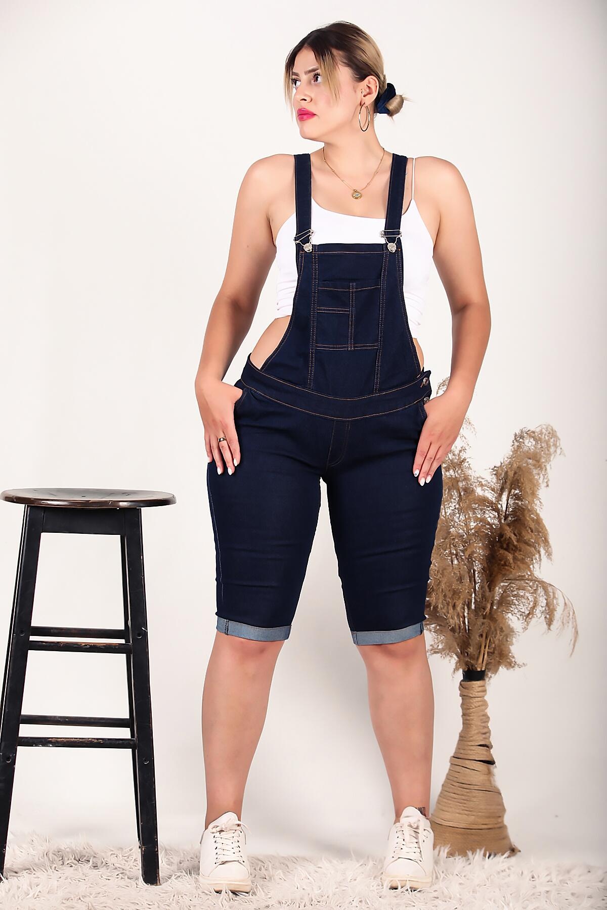 Büyük Beden Şort Tulum Lacivert