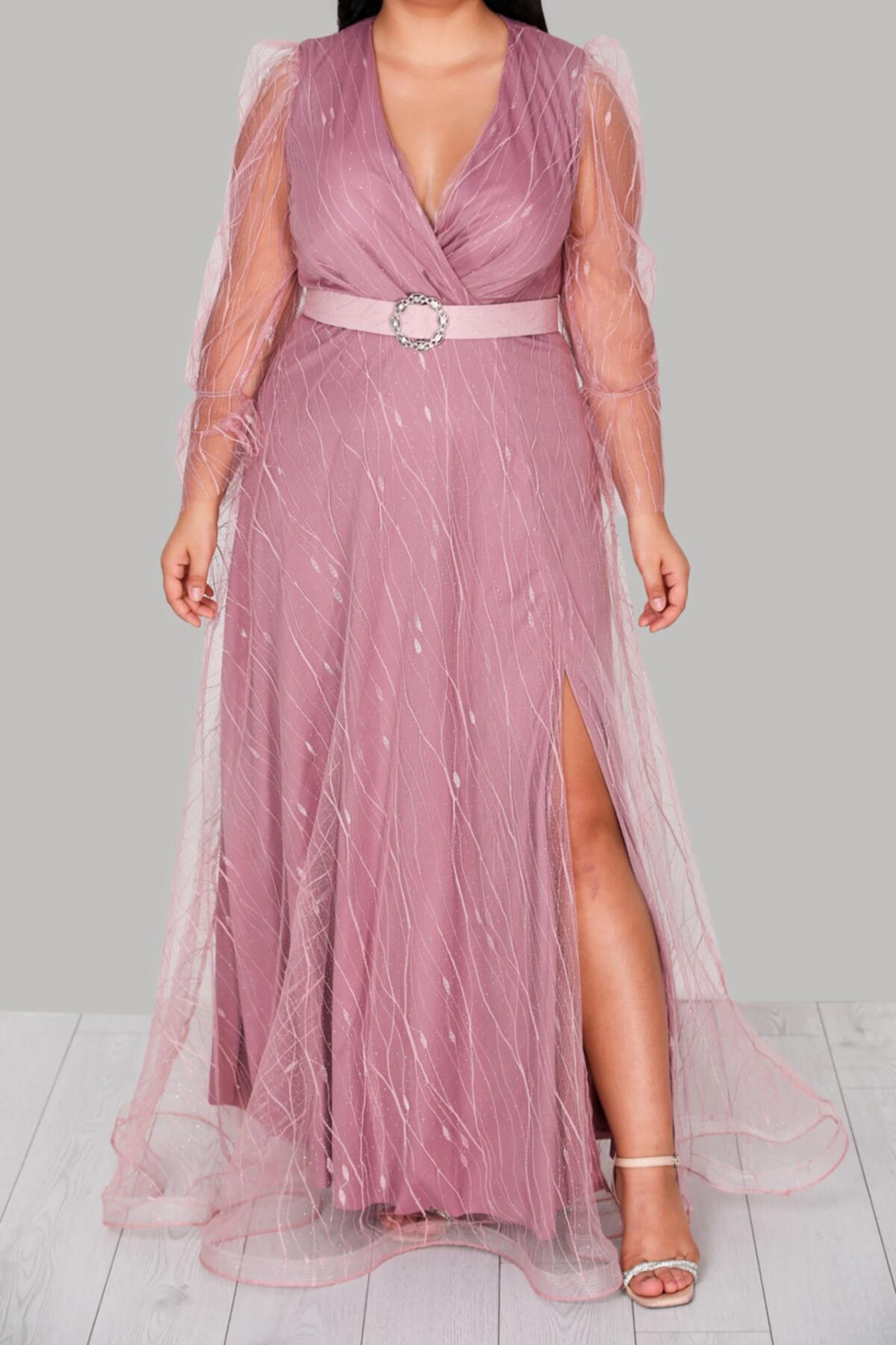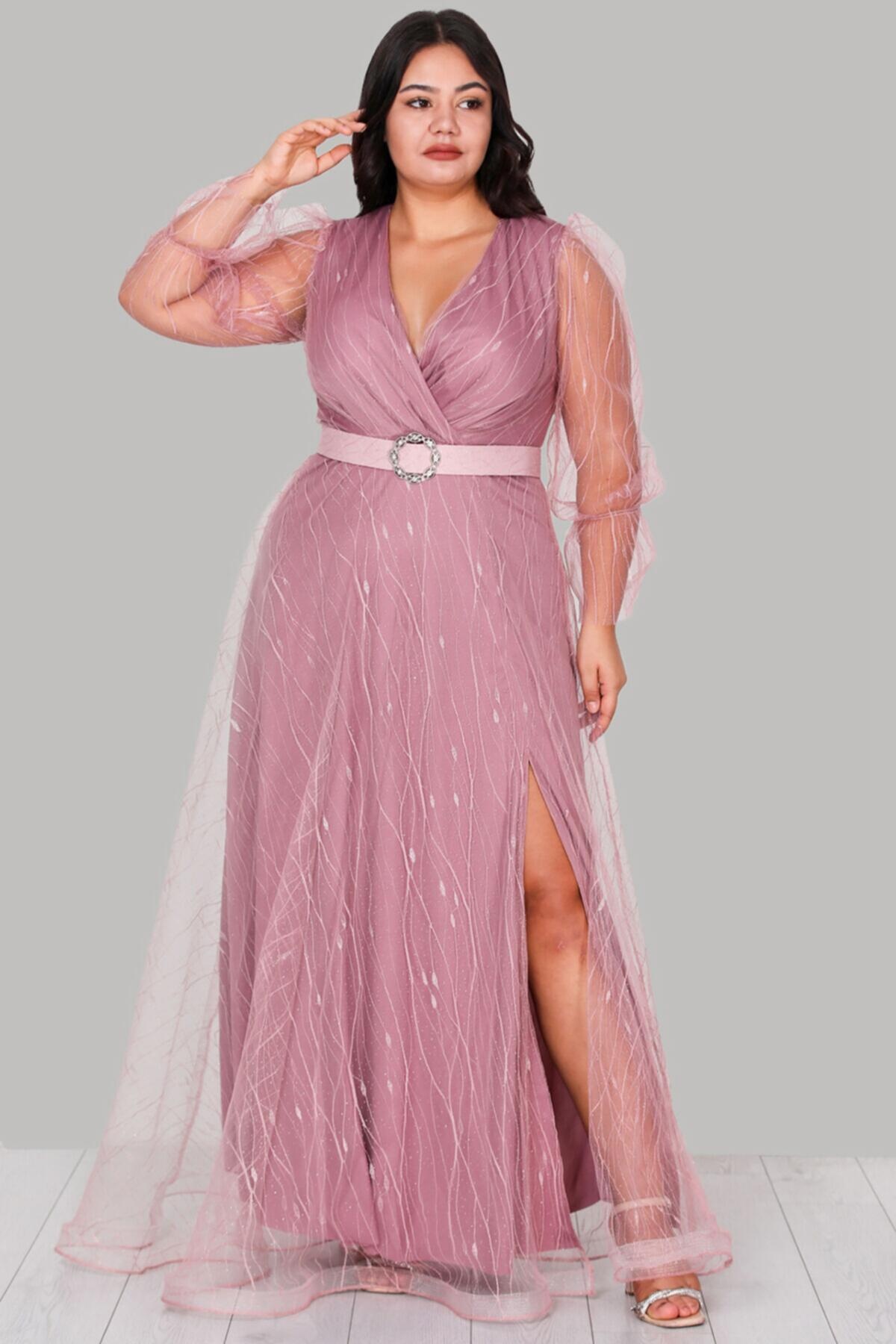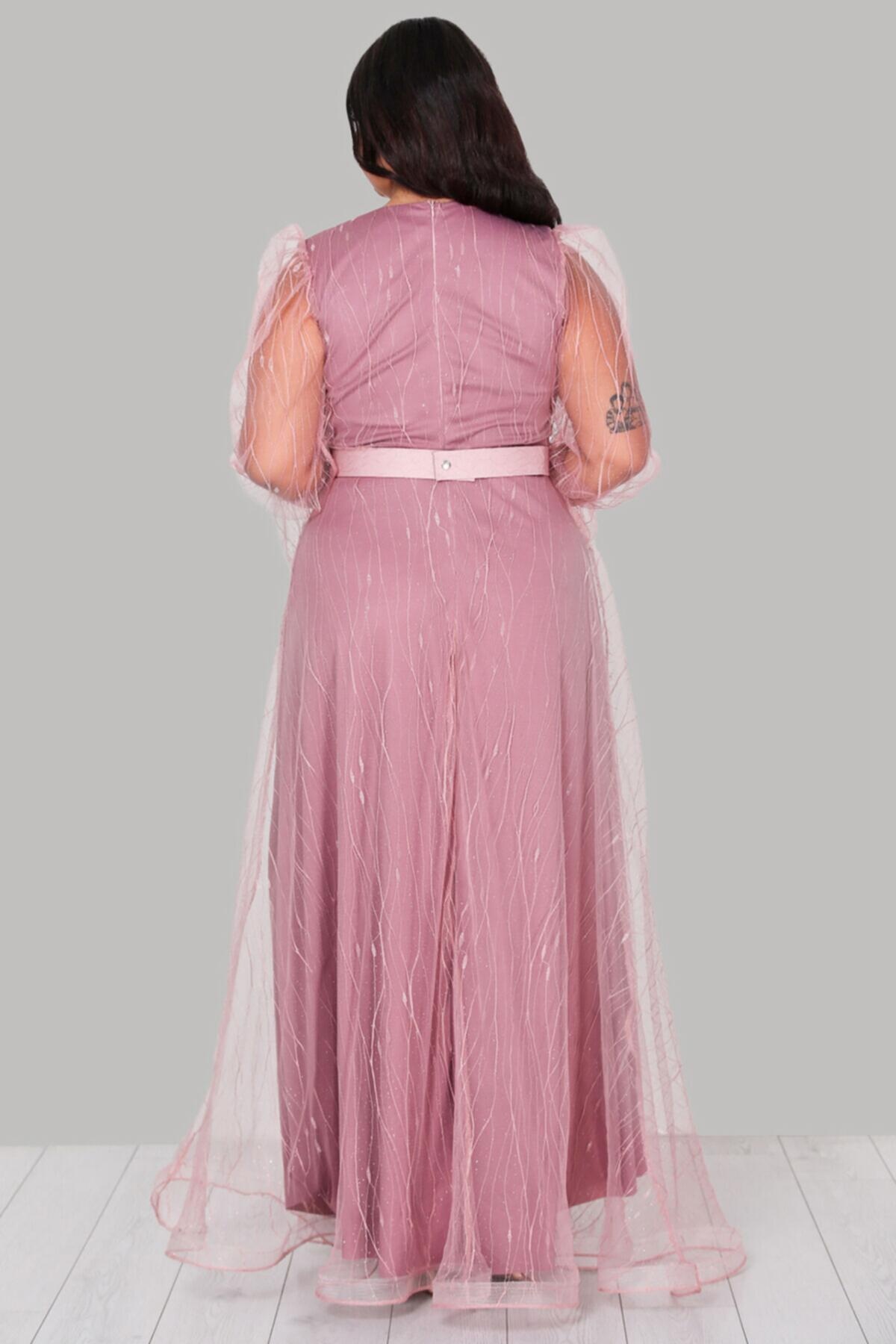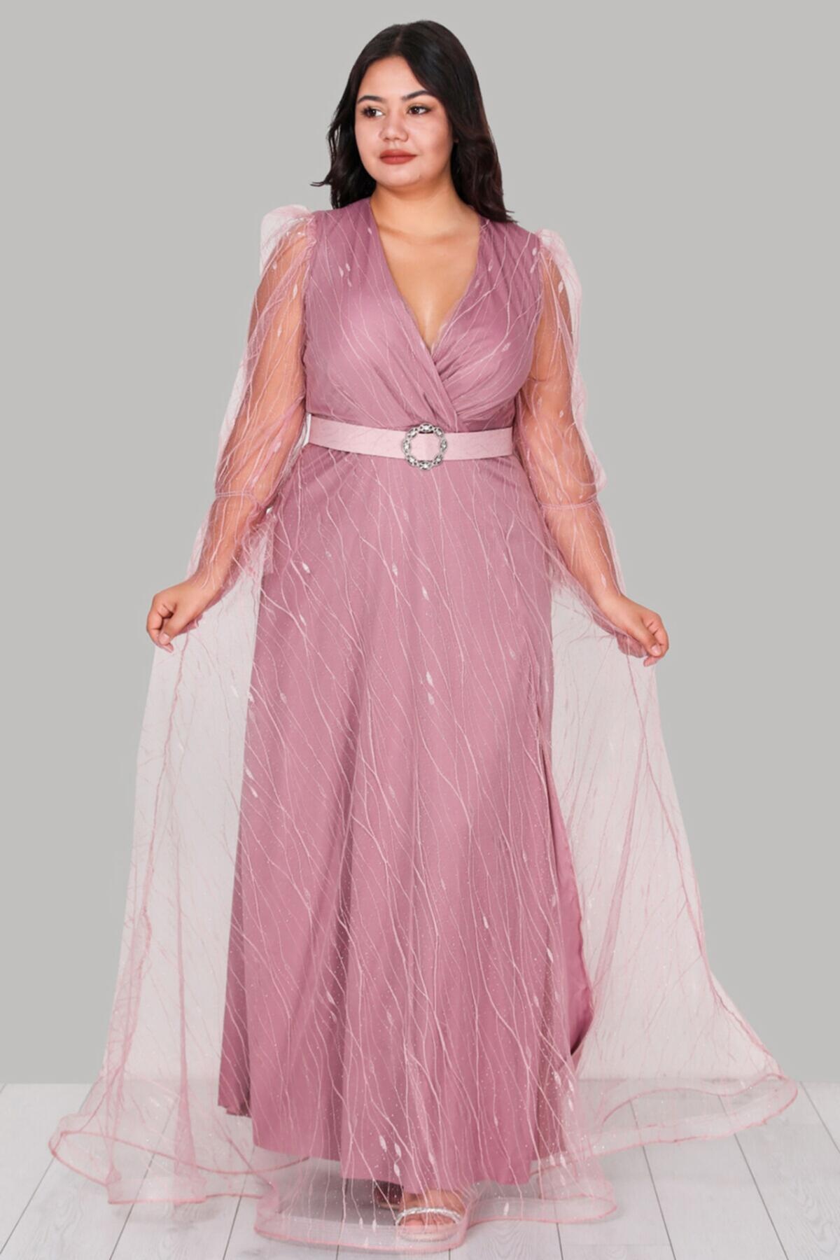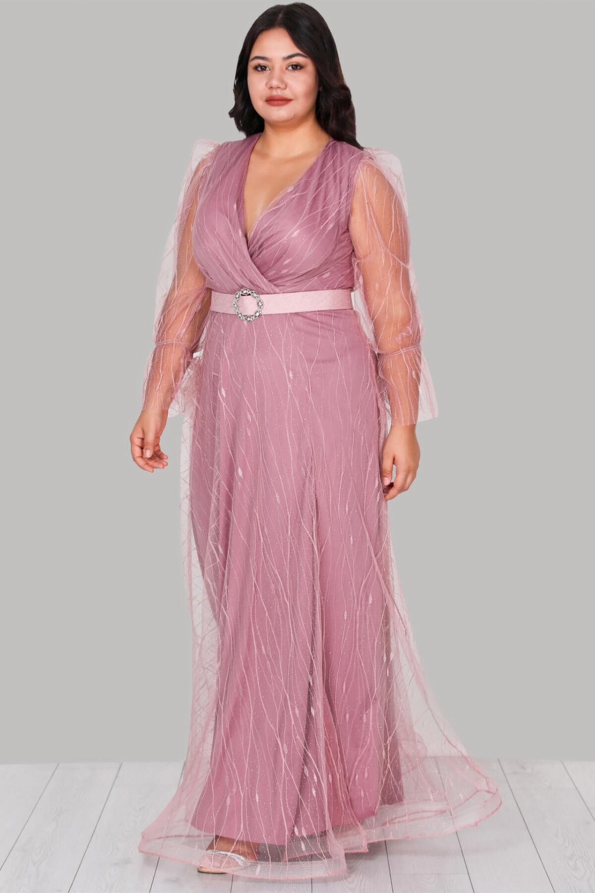 Büyük Beden Uzun Abiye Elbise Gül Kurusu