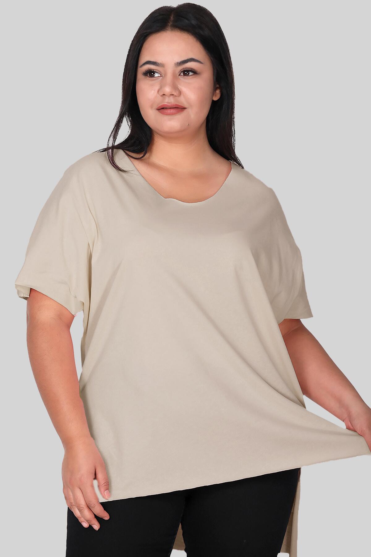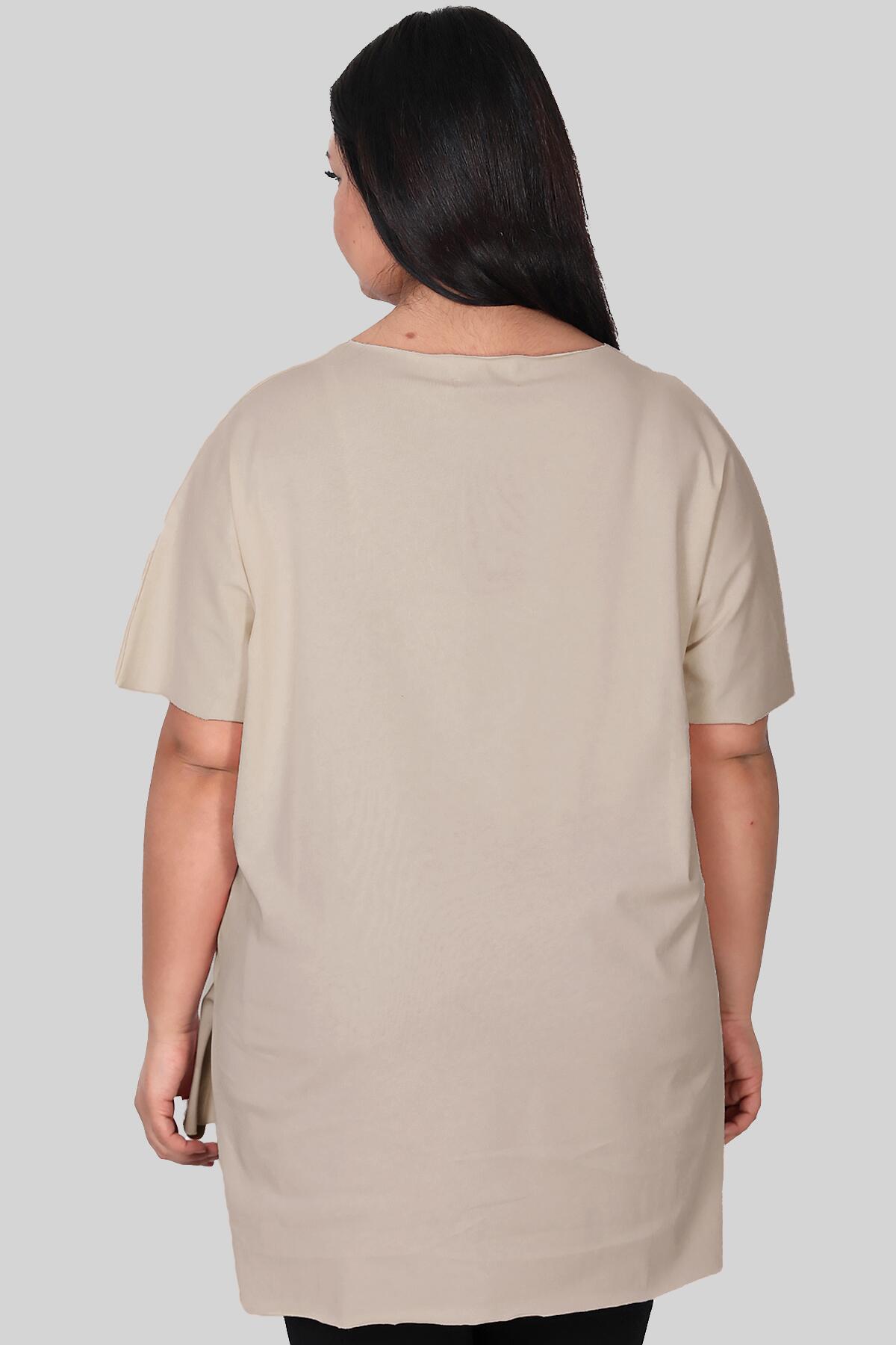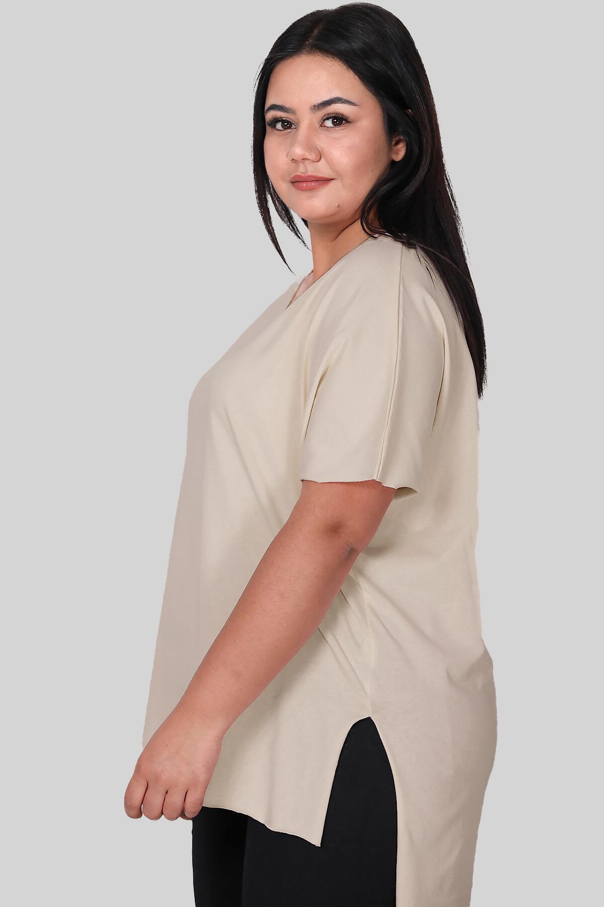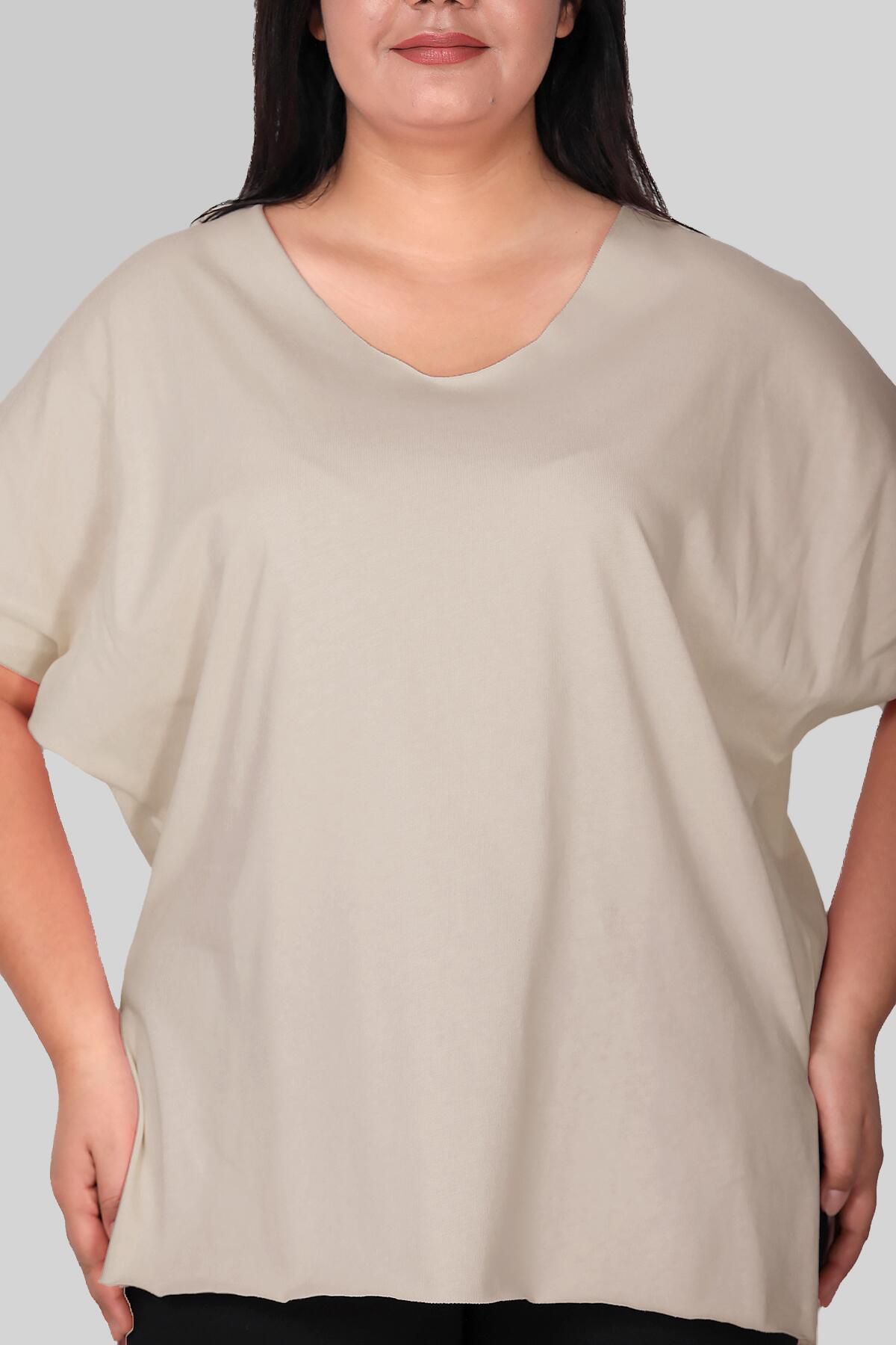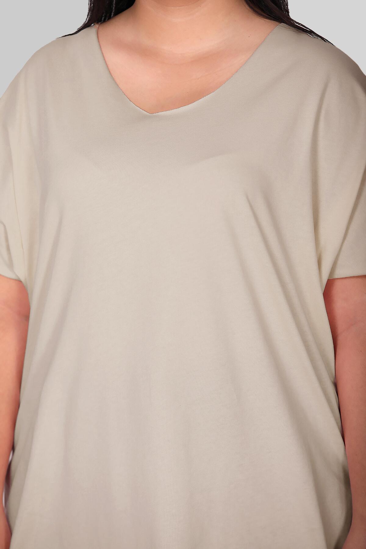 Büyük Beden V Yaka T-shırt Taş