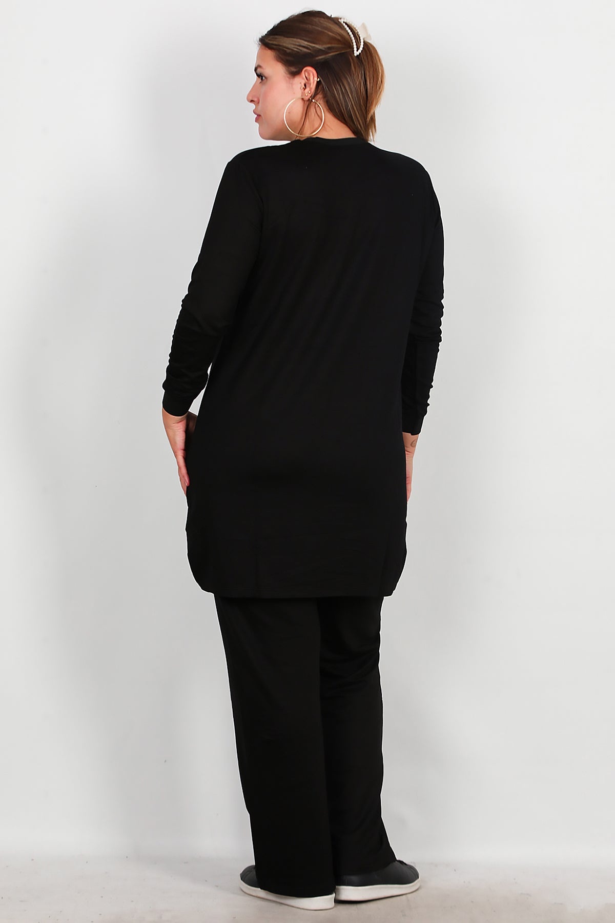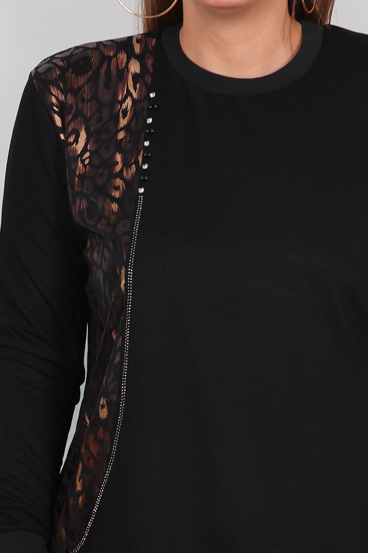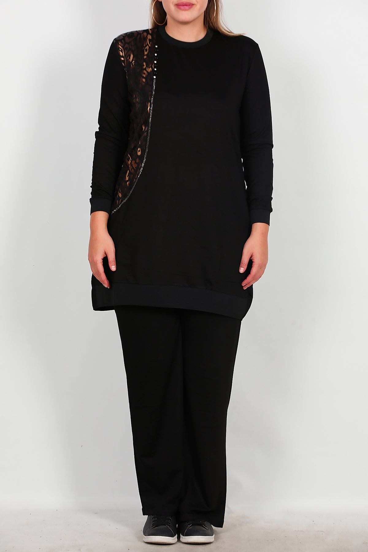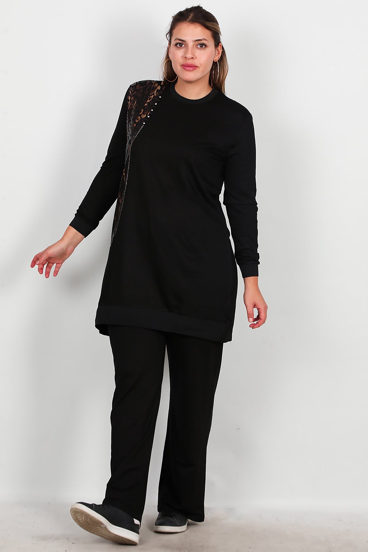 Büyük Beden Yan Leopar Detay 2li Takım Siyah