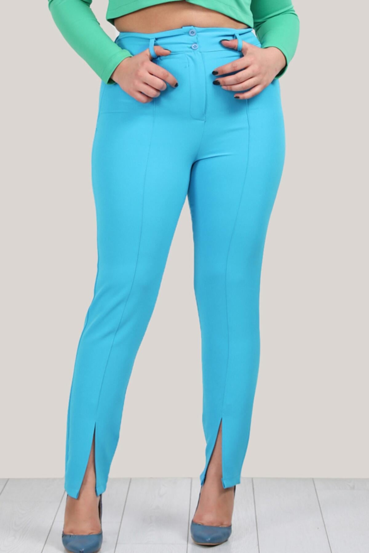 Büyük Beden Yırtmaçlı Pantolon Mavi