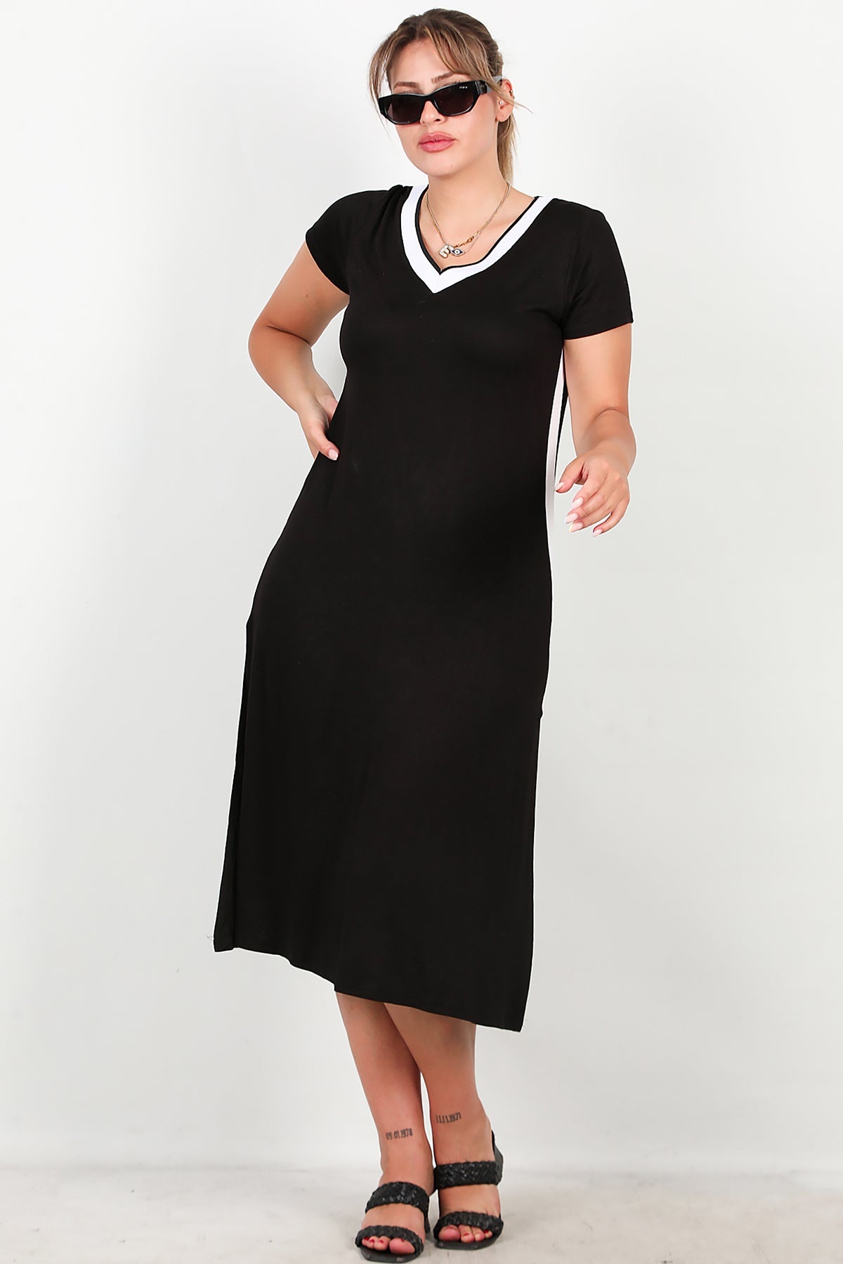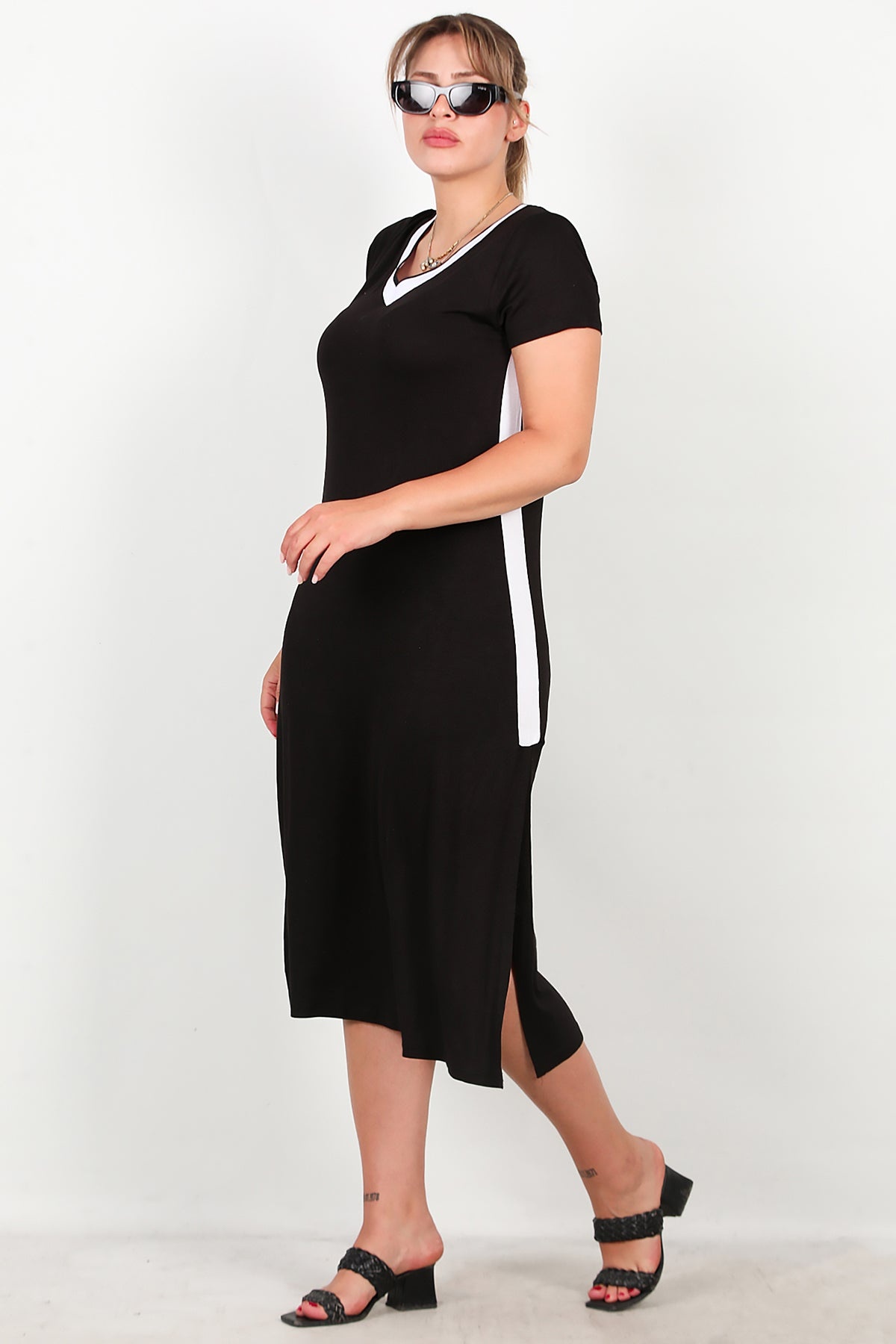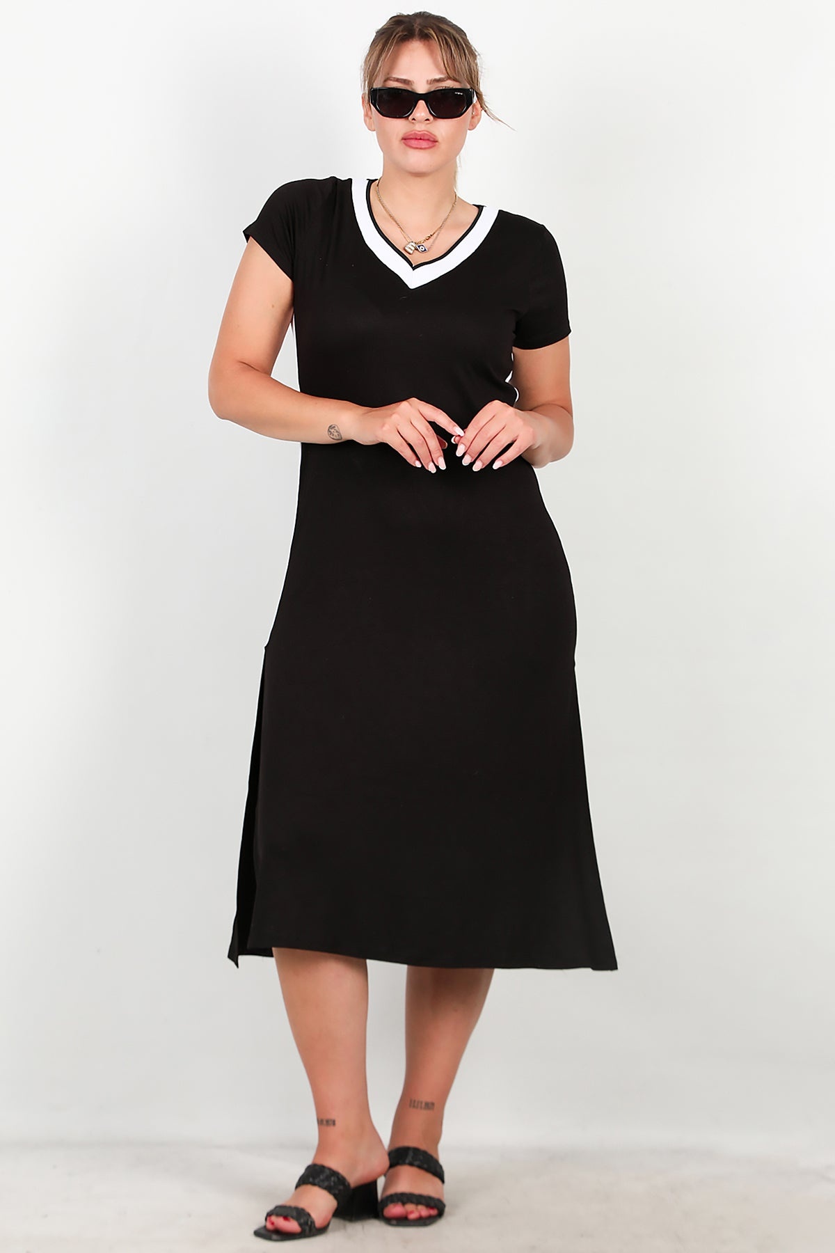 Büyük Beden Yırtmaçlı Uzun Elbise Siyah