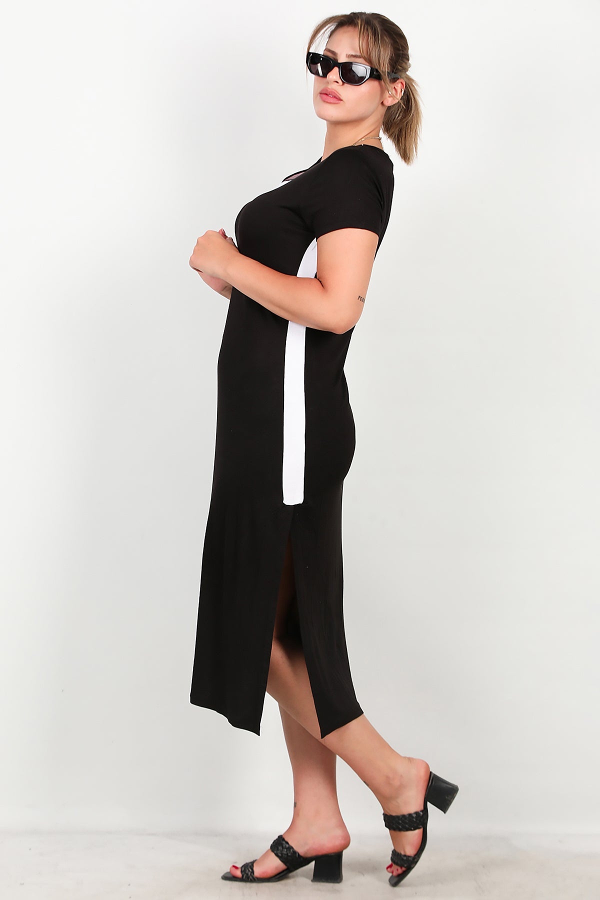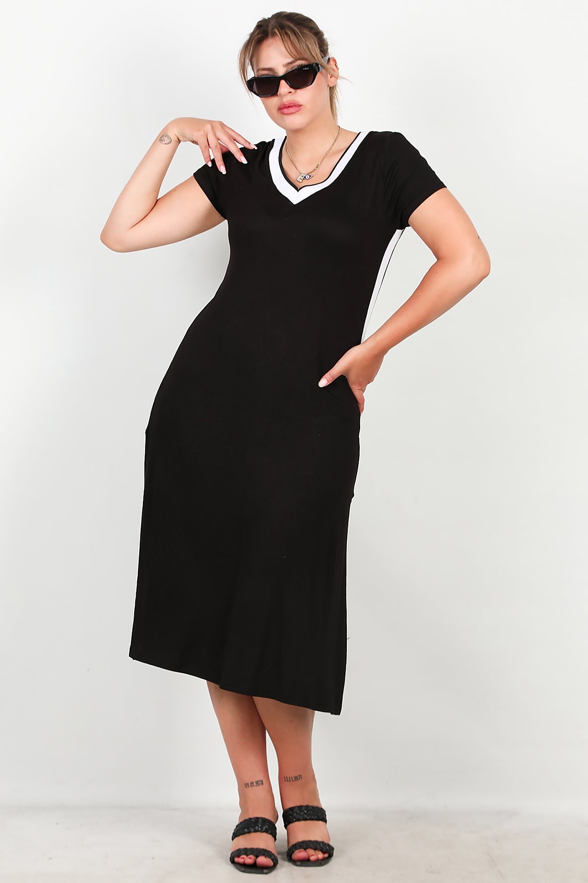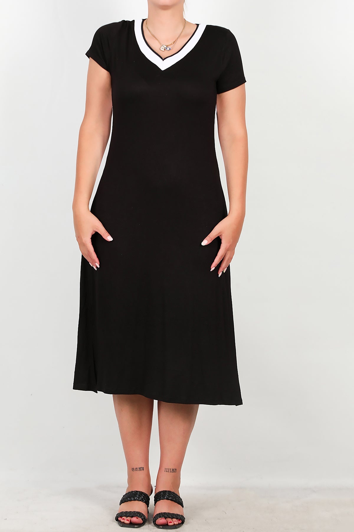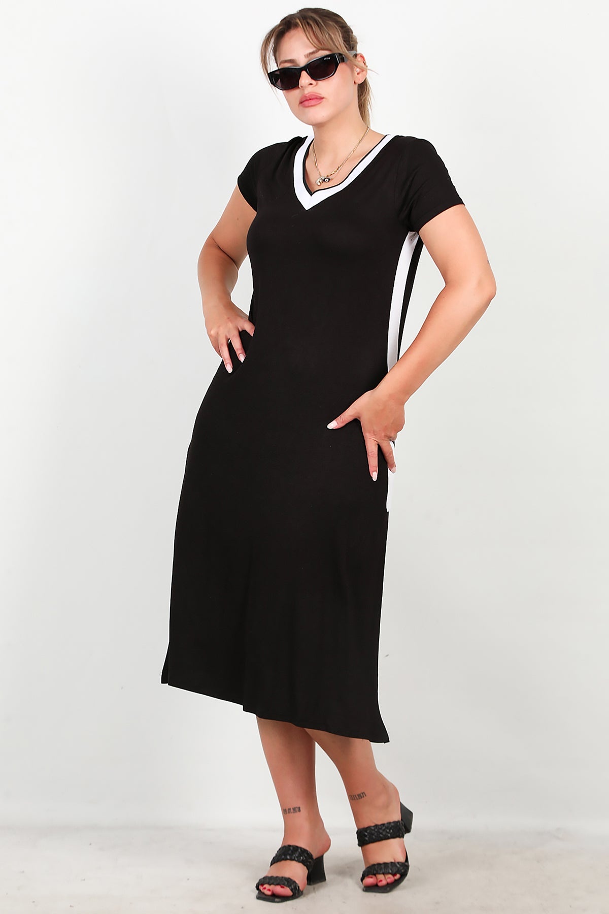 Büyük Beden Yırtmaçlı Uzun Elbise Siyah