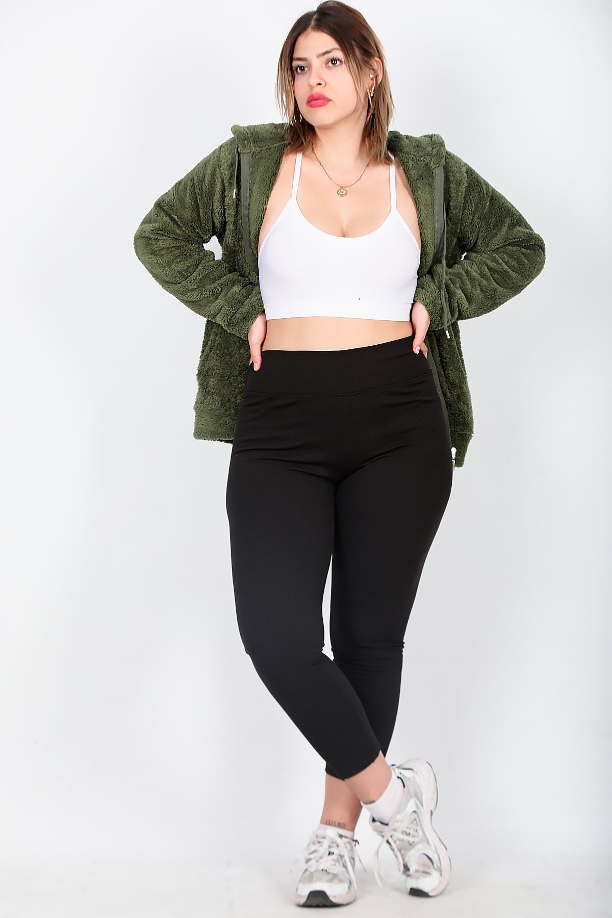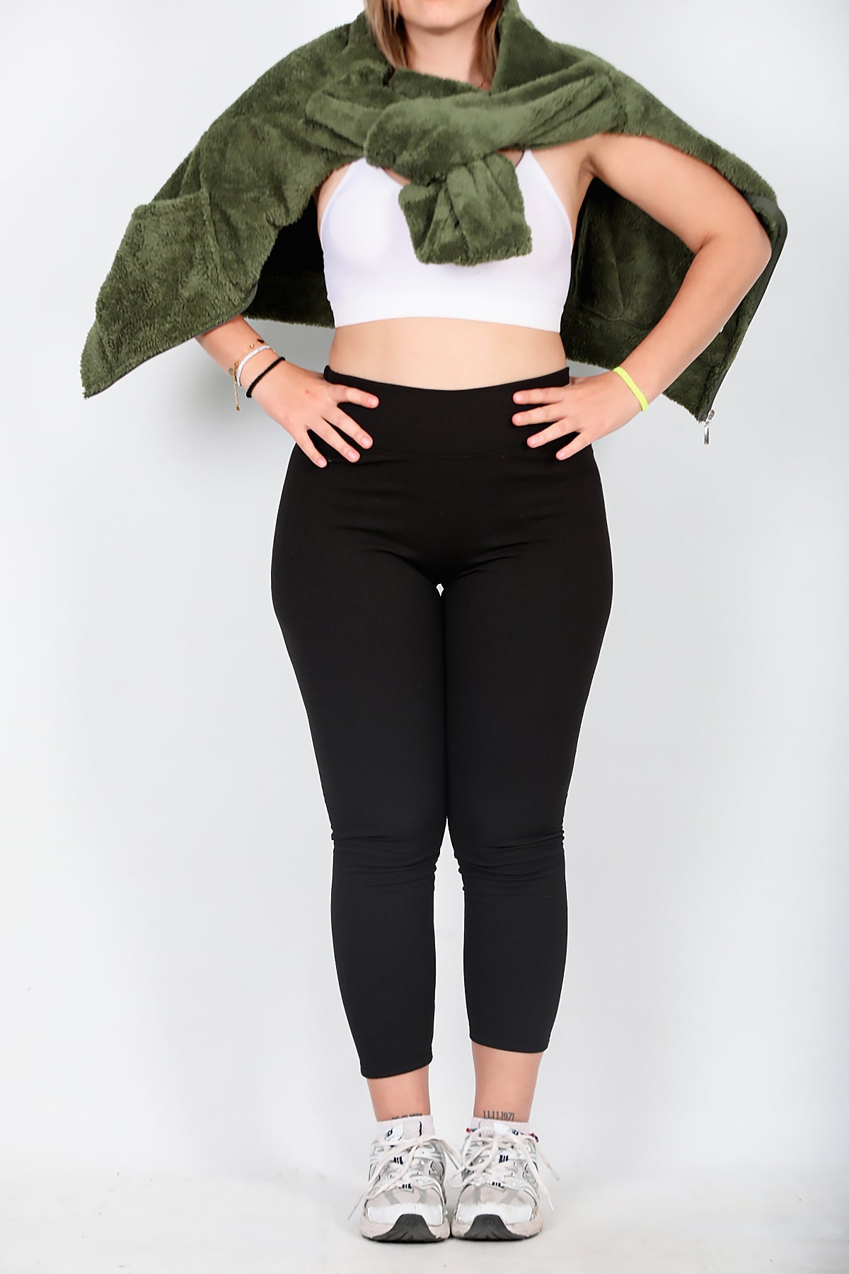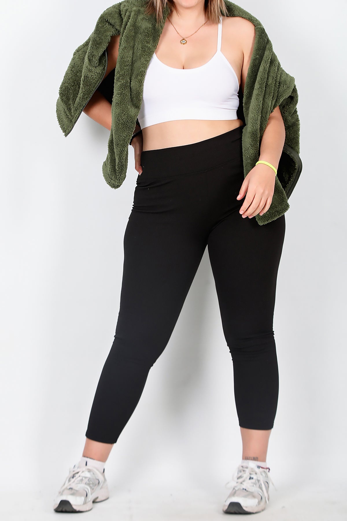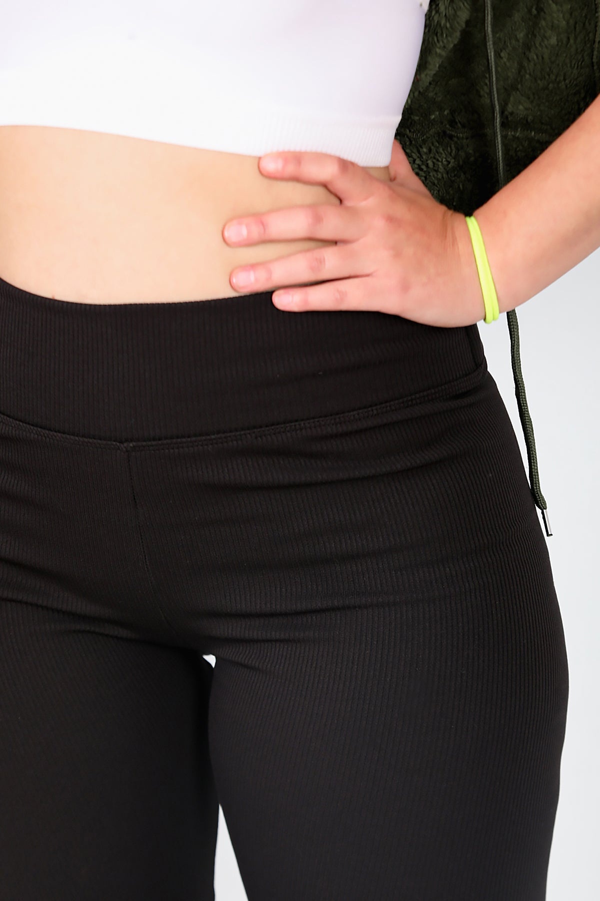 Büyük Beden Yüksek Bel Fitilli Tayt Siyah Siyah