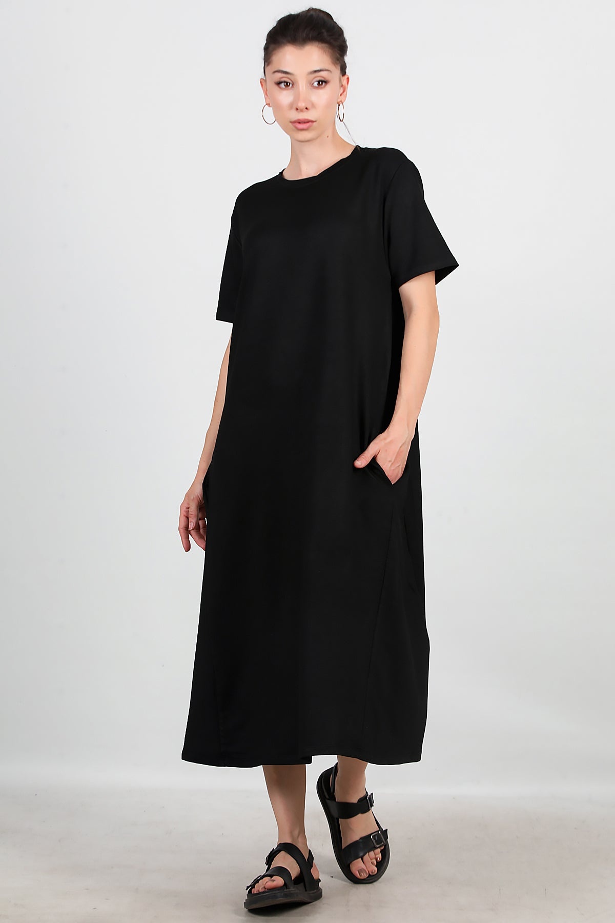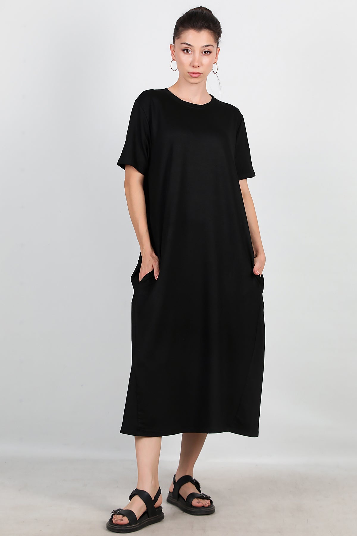 Kadın Cepli Salaş Elbise Siyah