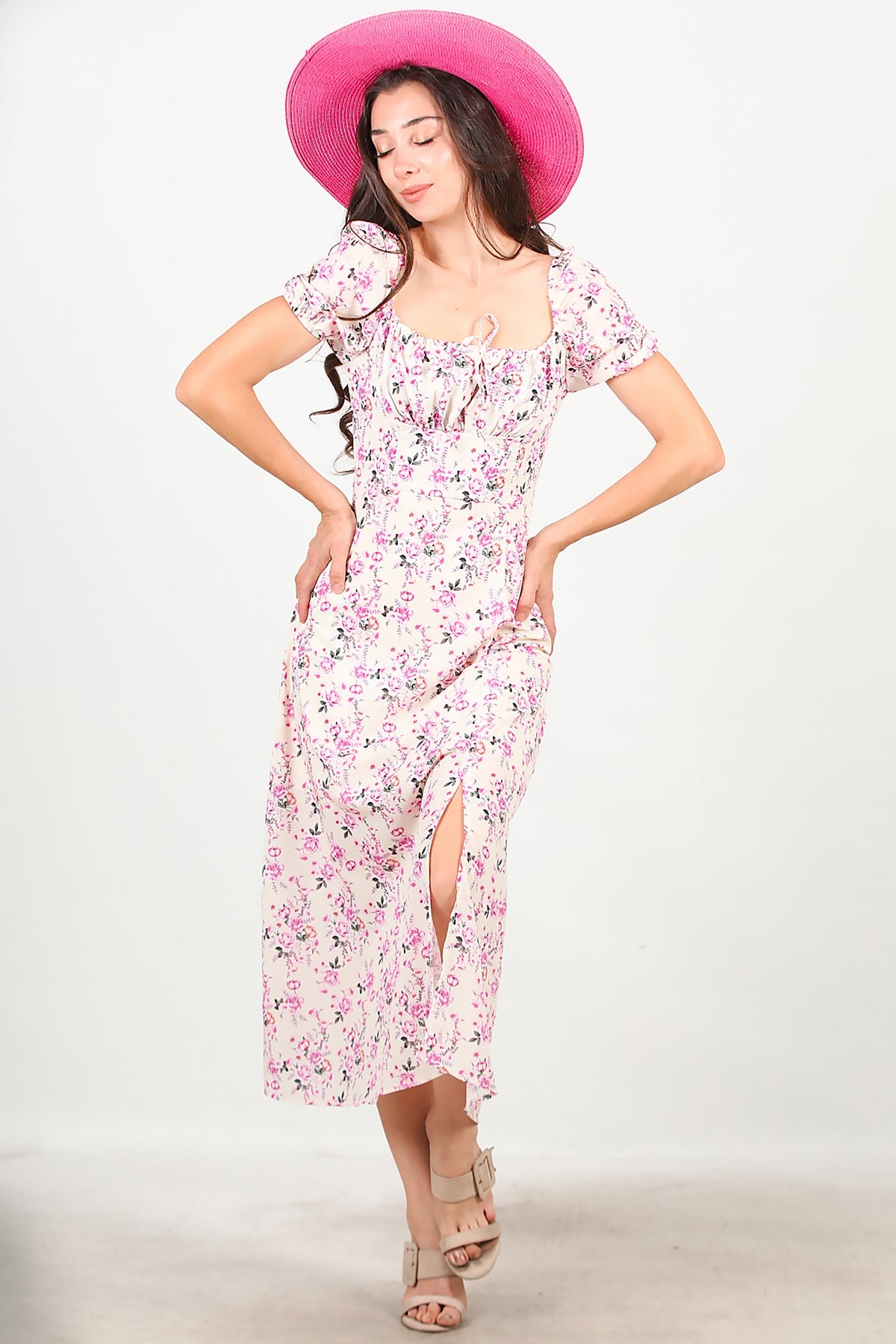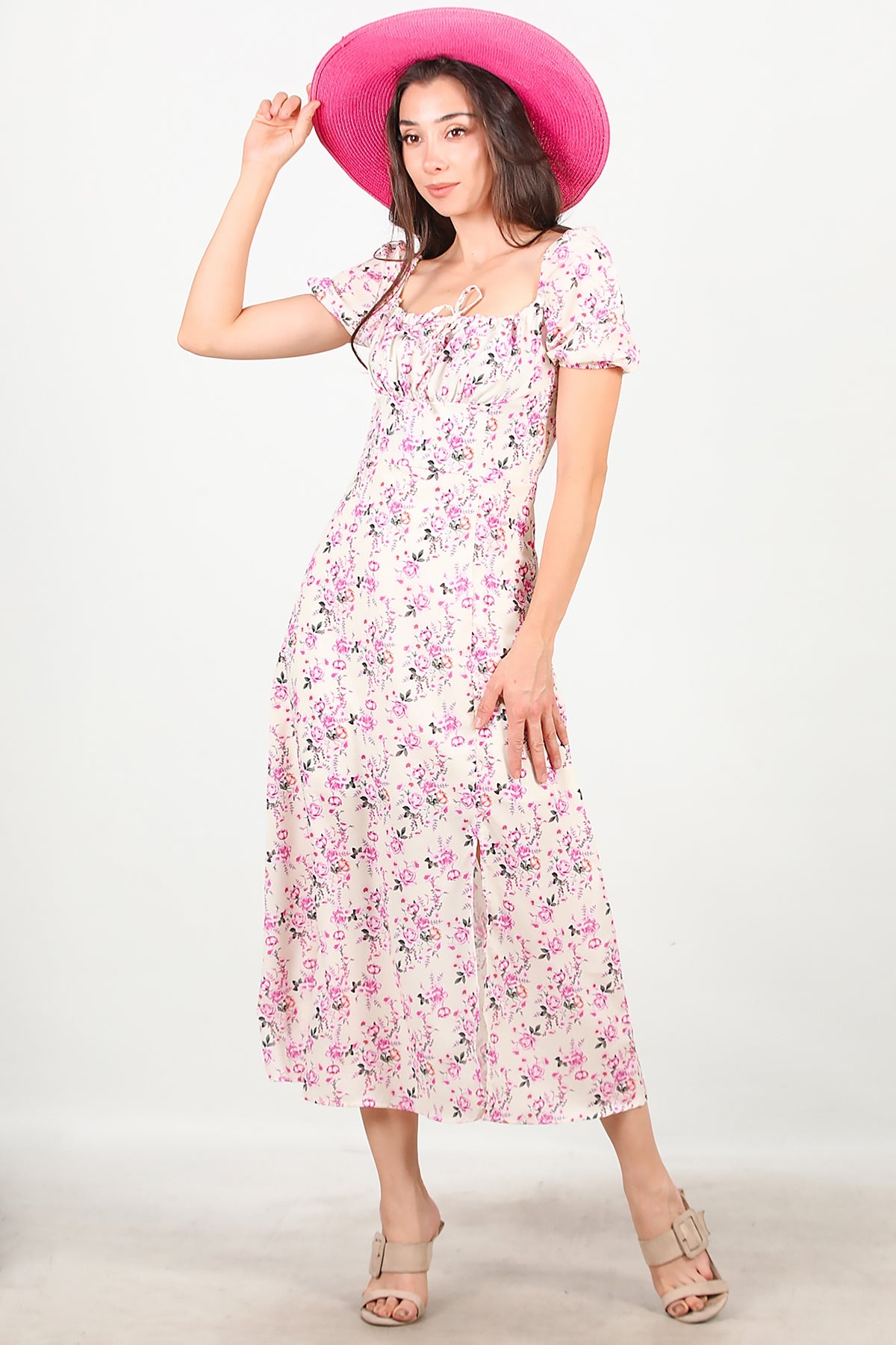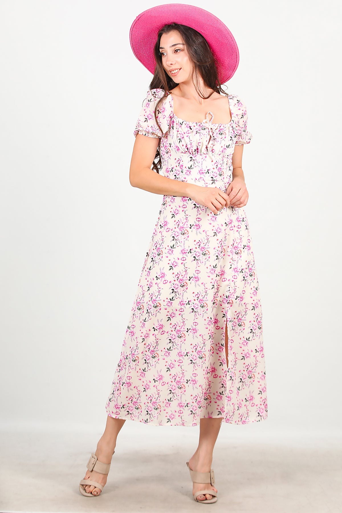 Numune Bedeni: 36Numune Boyu: 123 cmKumaş Tipi: %95 Viskon %5 ElestanKol: Kısa ve Lastikli