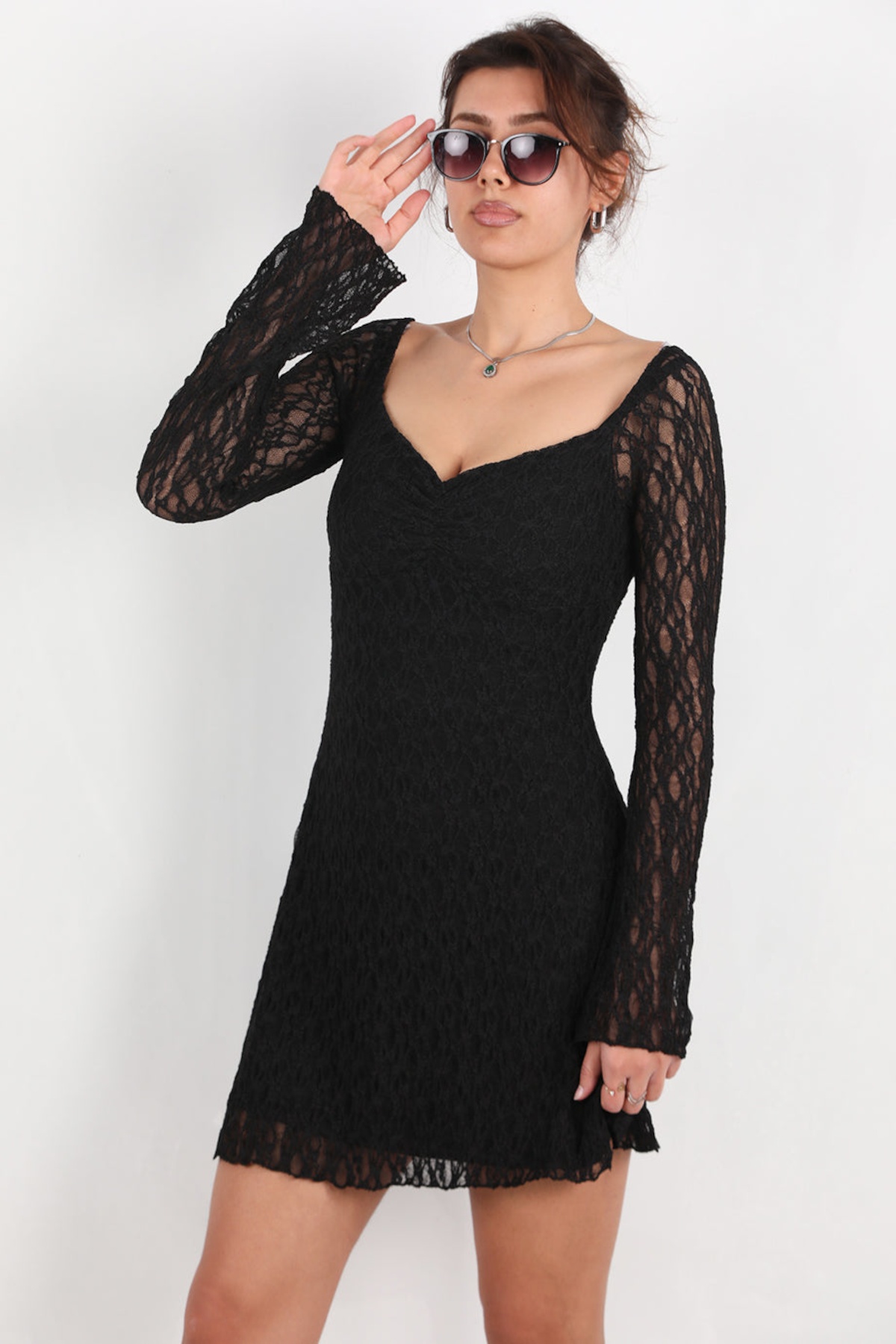 Kadın Dantelli Kısa Elbise Siyah