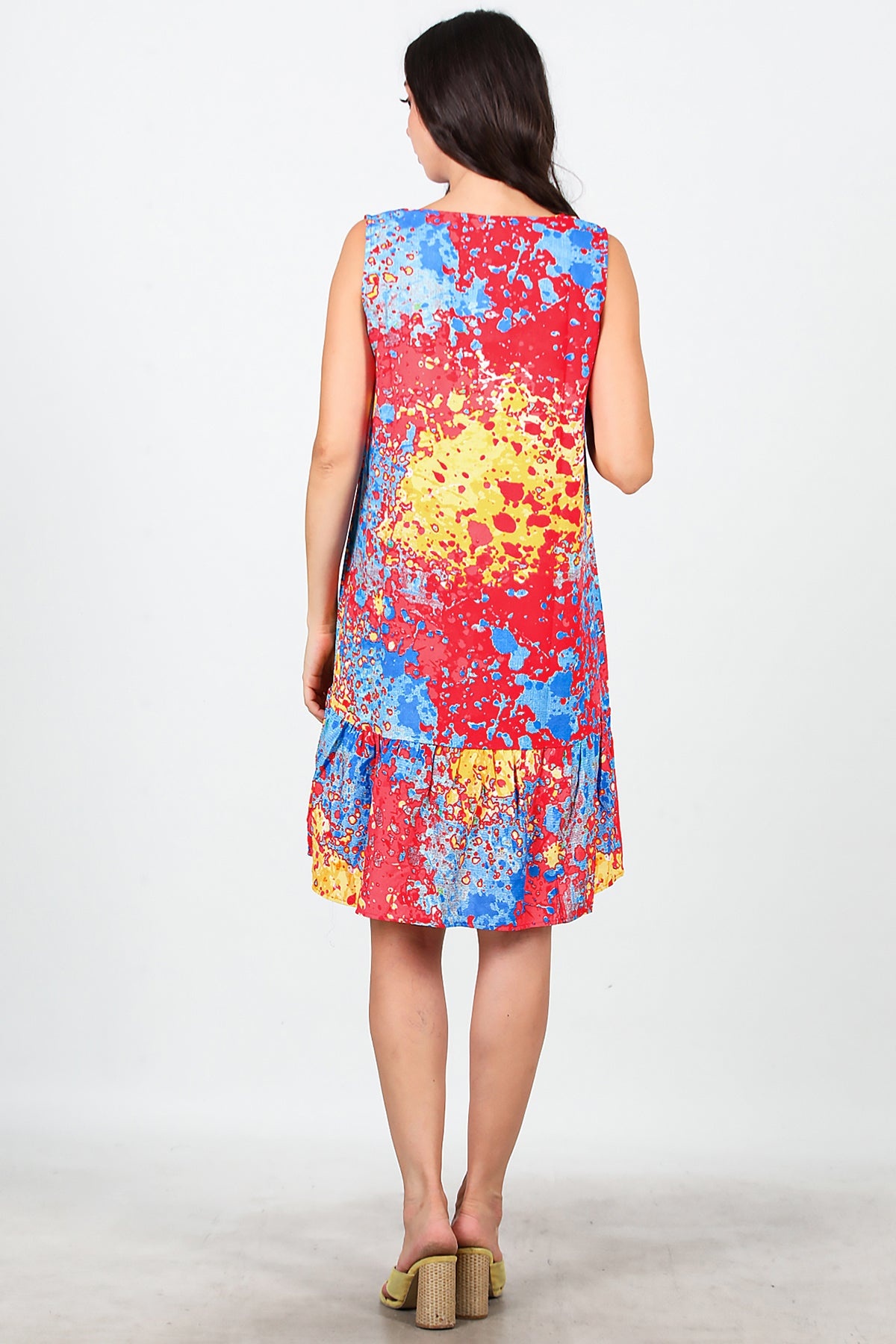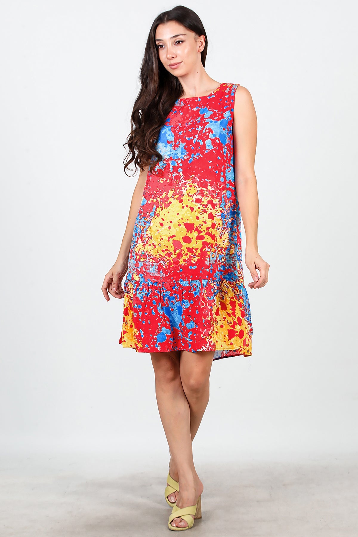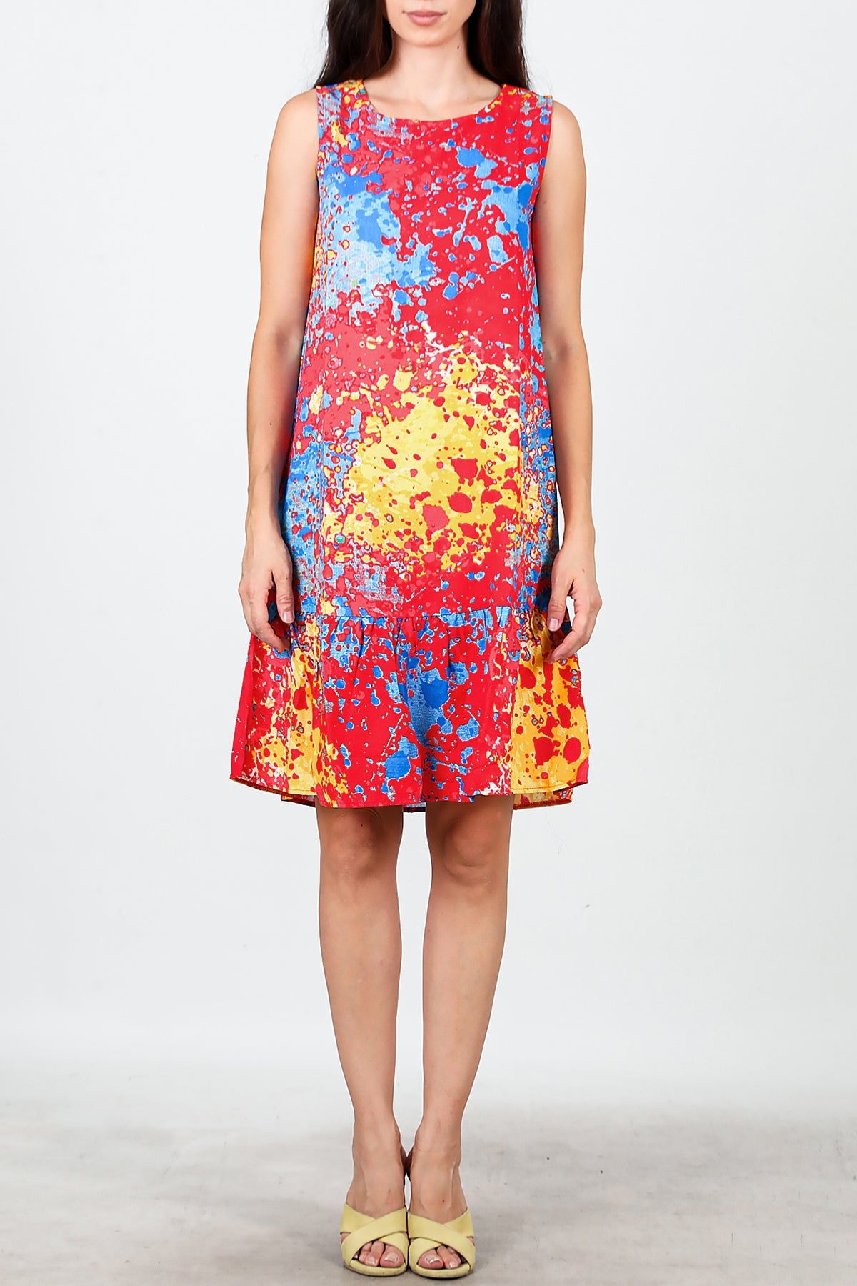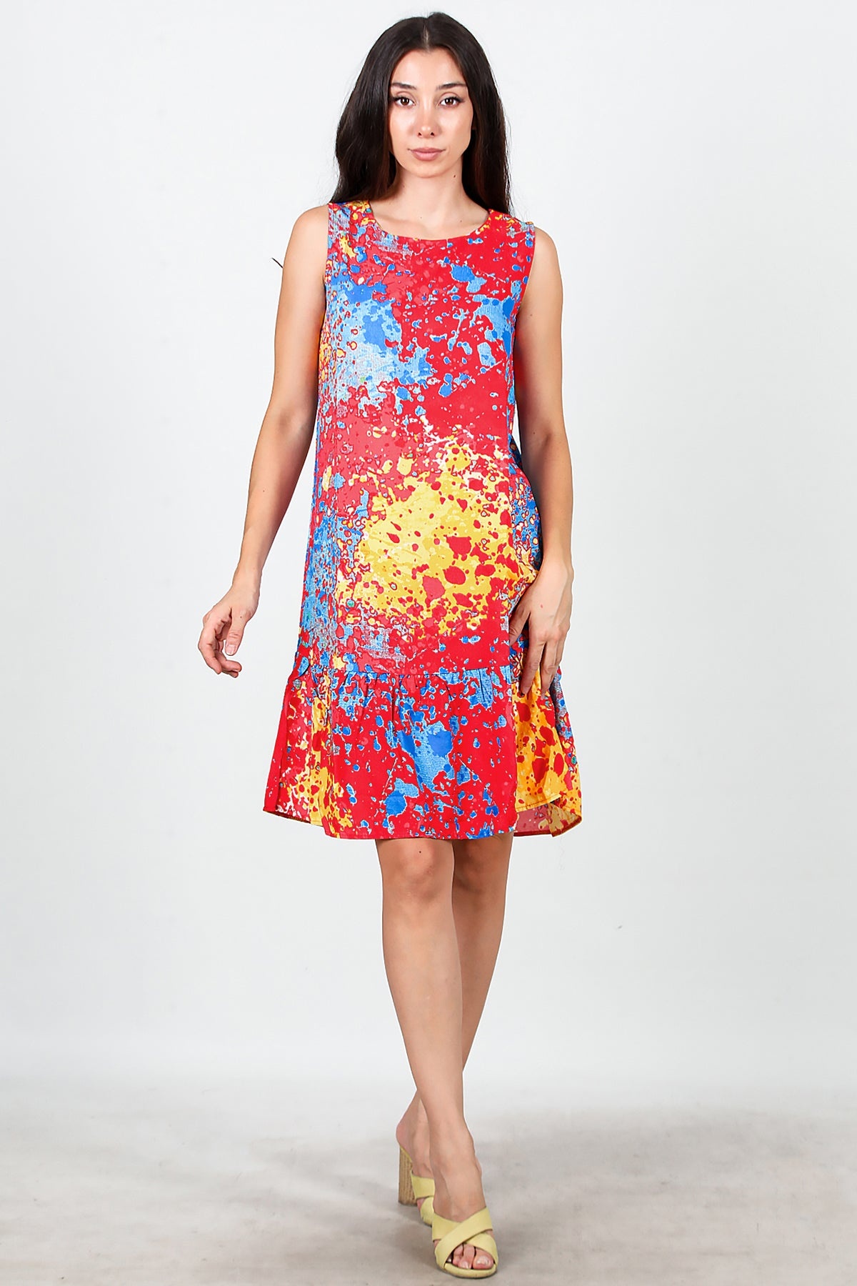 Kadın Desenli Viskon Kolsuz Elbise Kırmızı