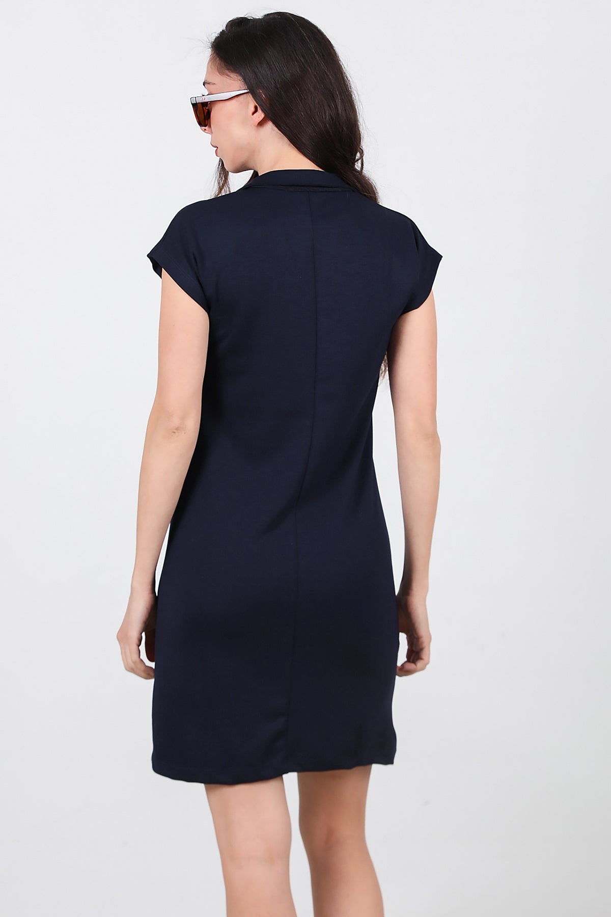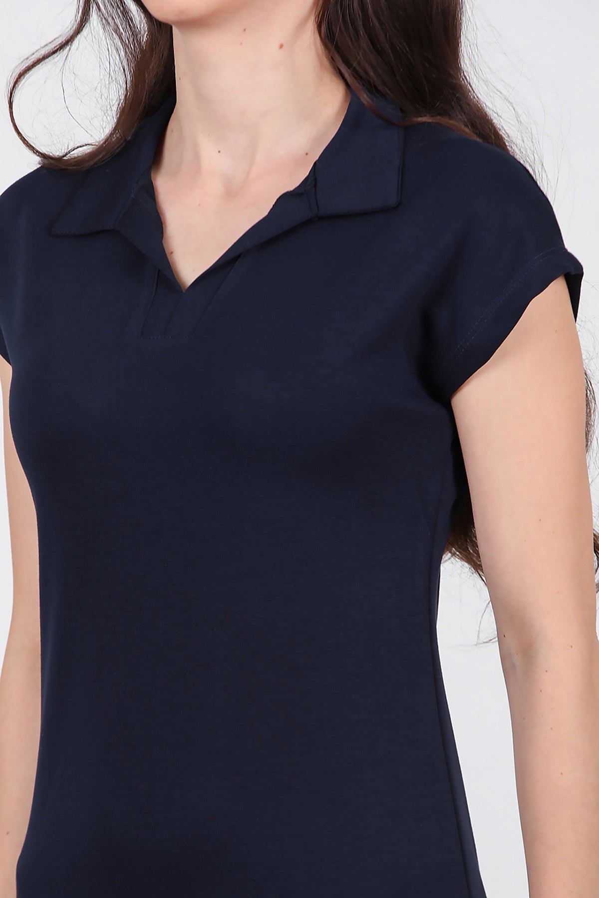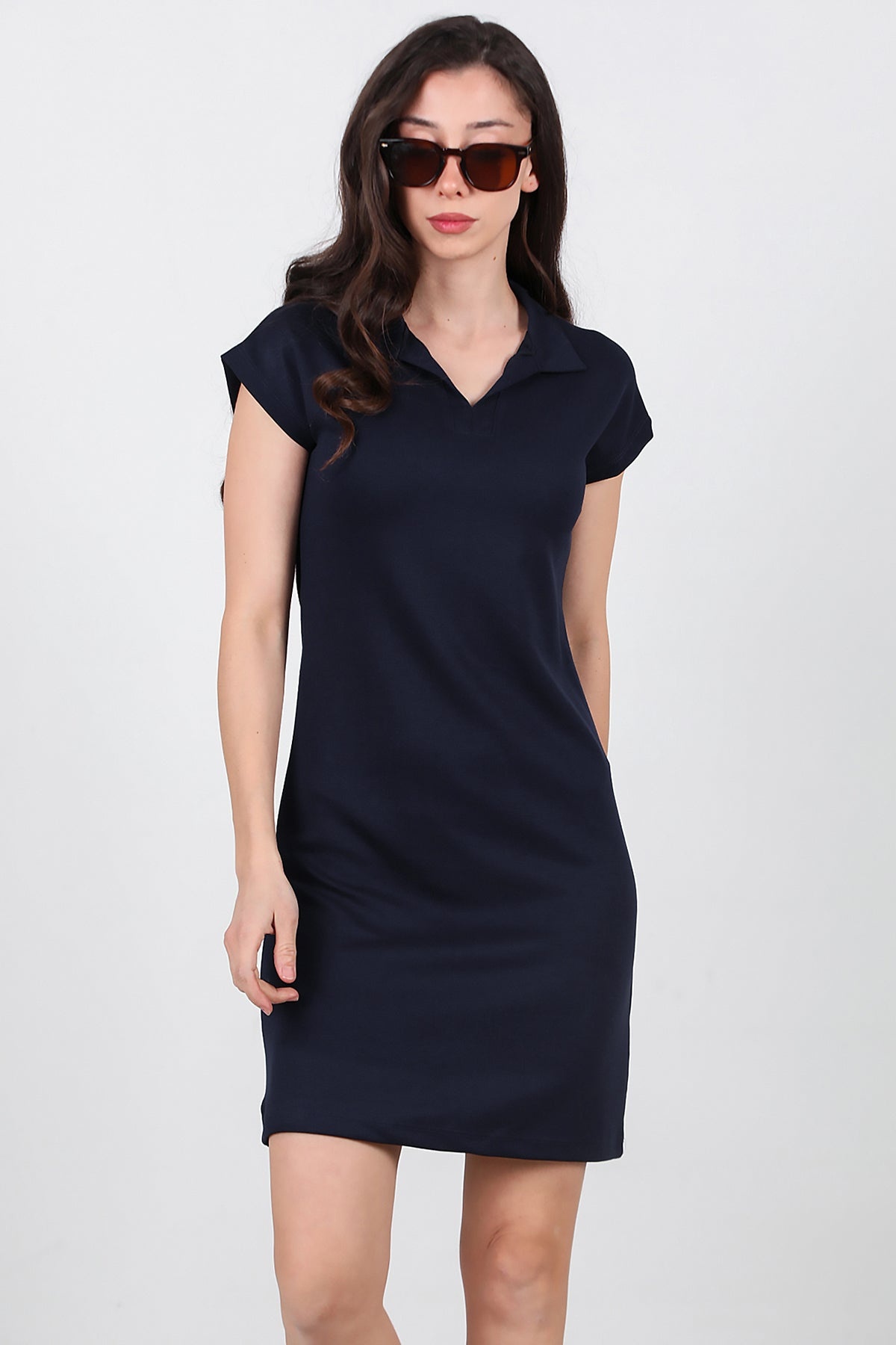 Kadın Gömlek Yaka Kısa Kollu Kısa Elbise Lacivert