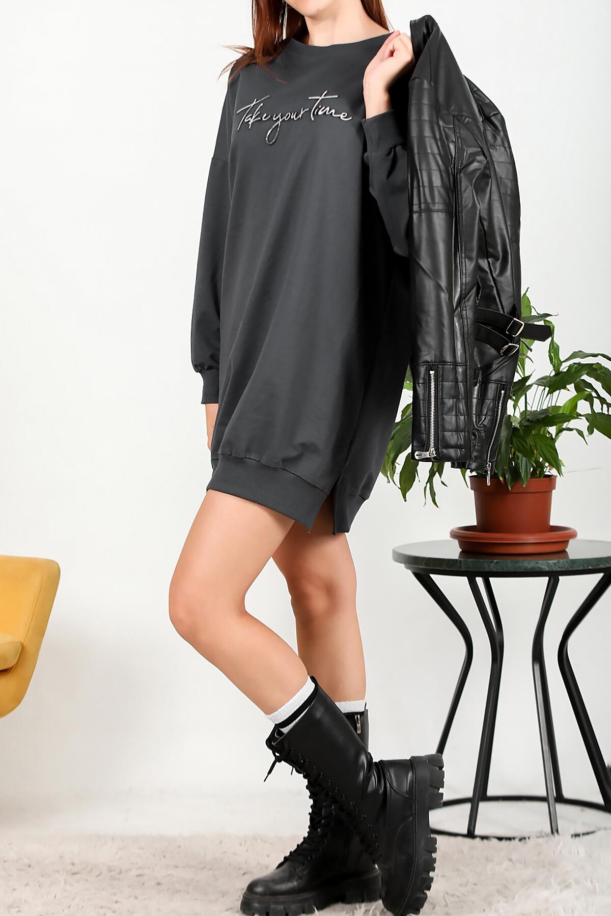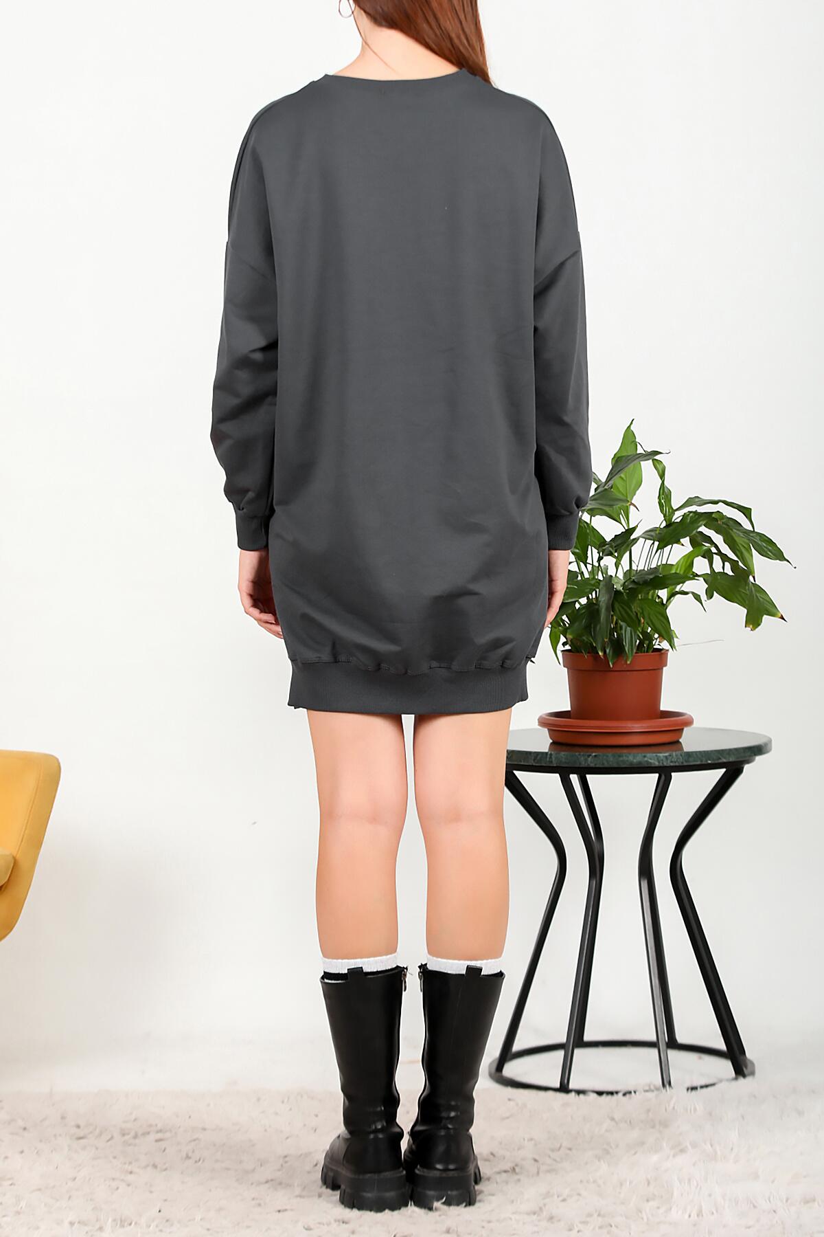 Kadın İki İplik Baskılı Tunik Elbise Füme