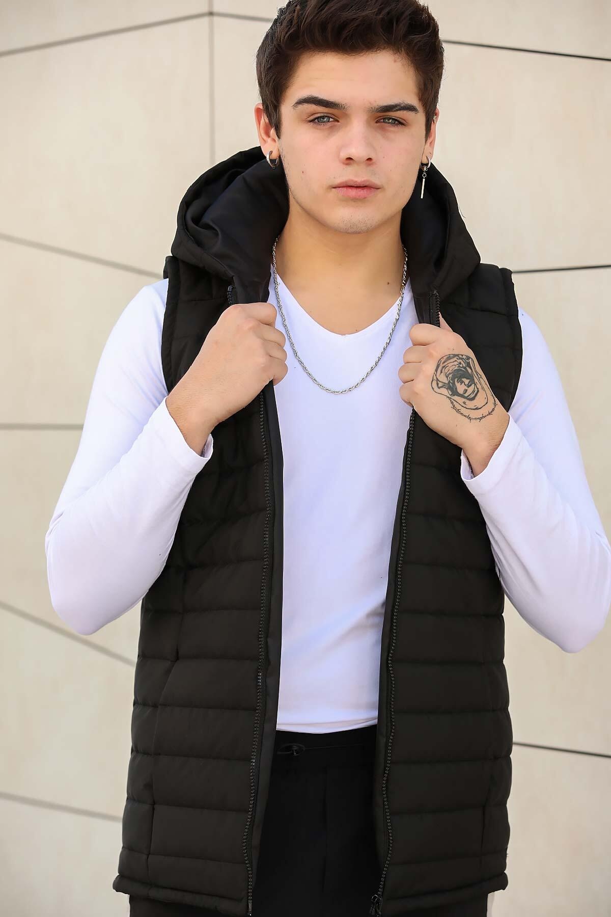 Erkek Kapşonlu Kolsuz T-shirt Beyaz
