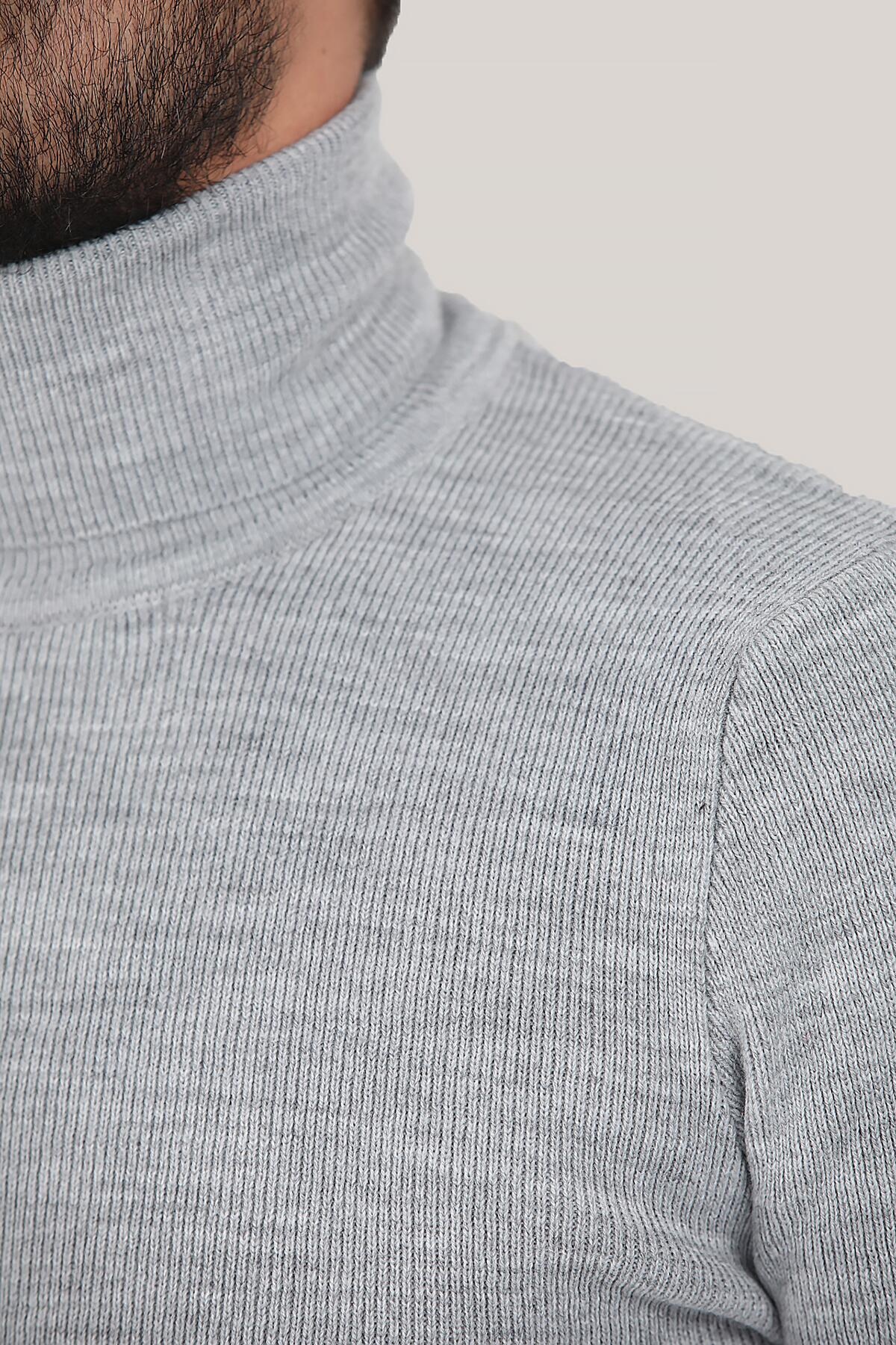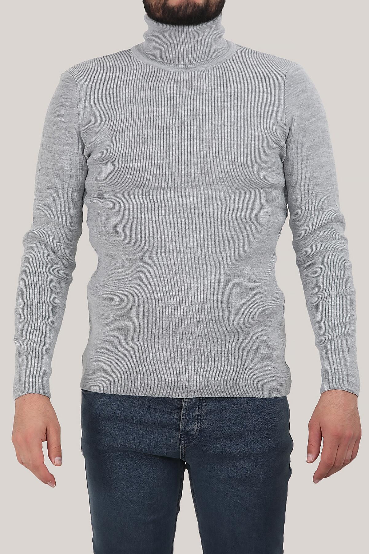 Erkek Balıkçı Yaka Fitilli Triko Kazak Gri