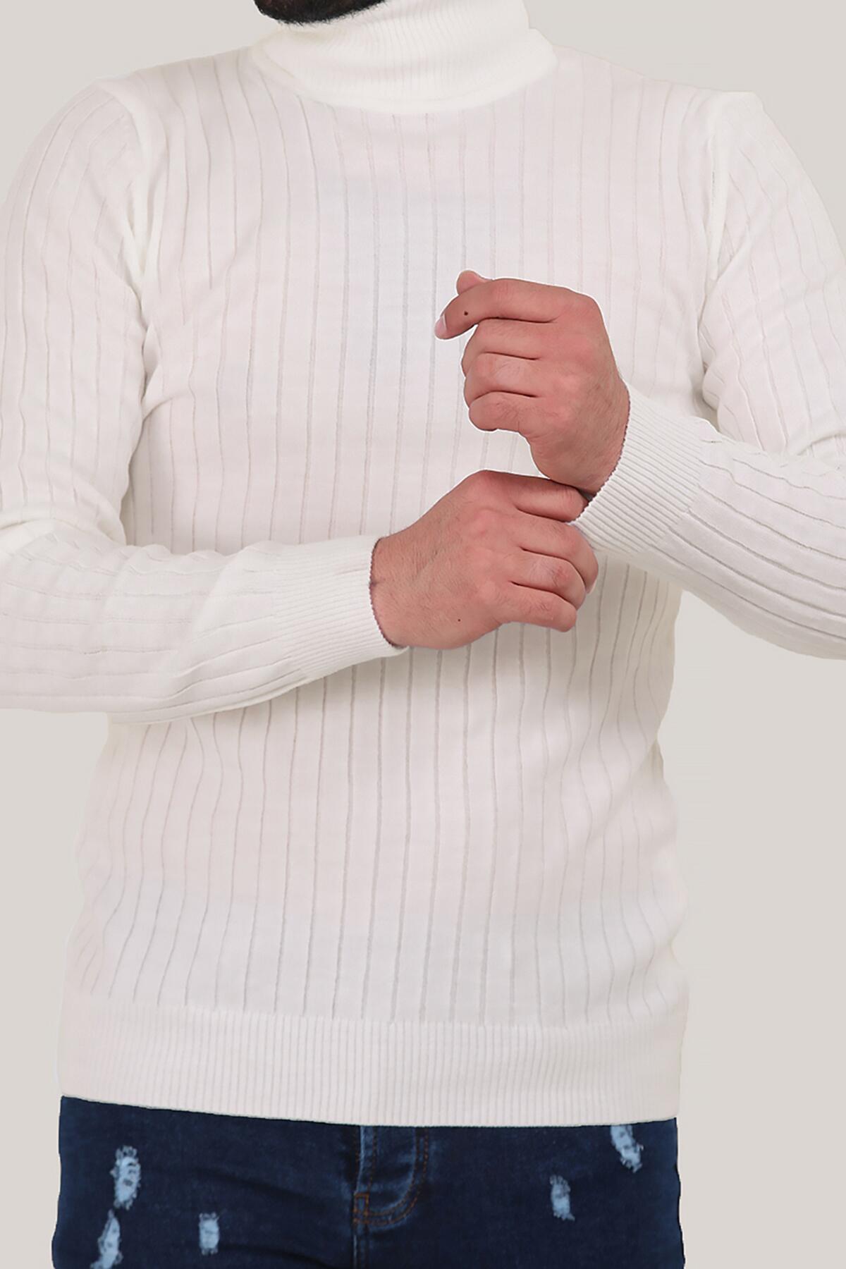 Erkek Balıkçı Yaka Fitilli Triko Kazak