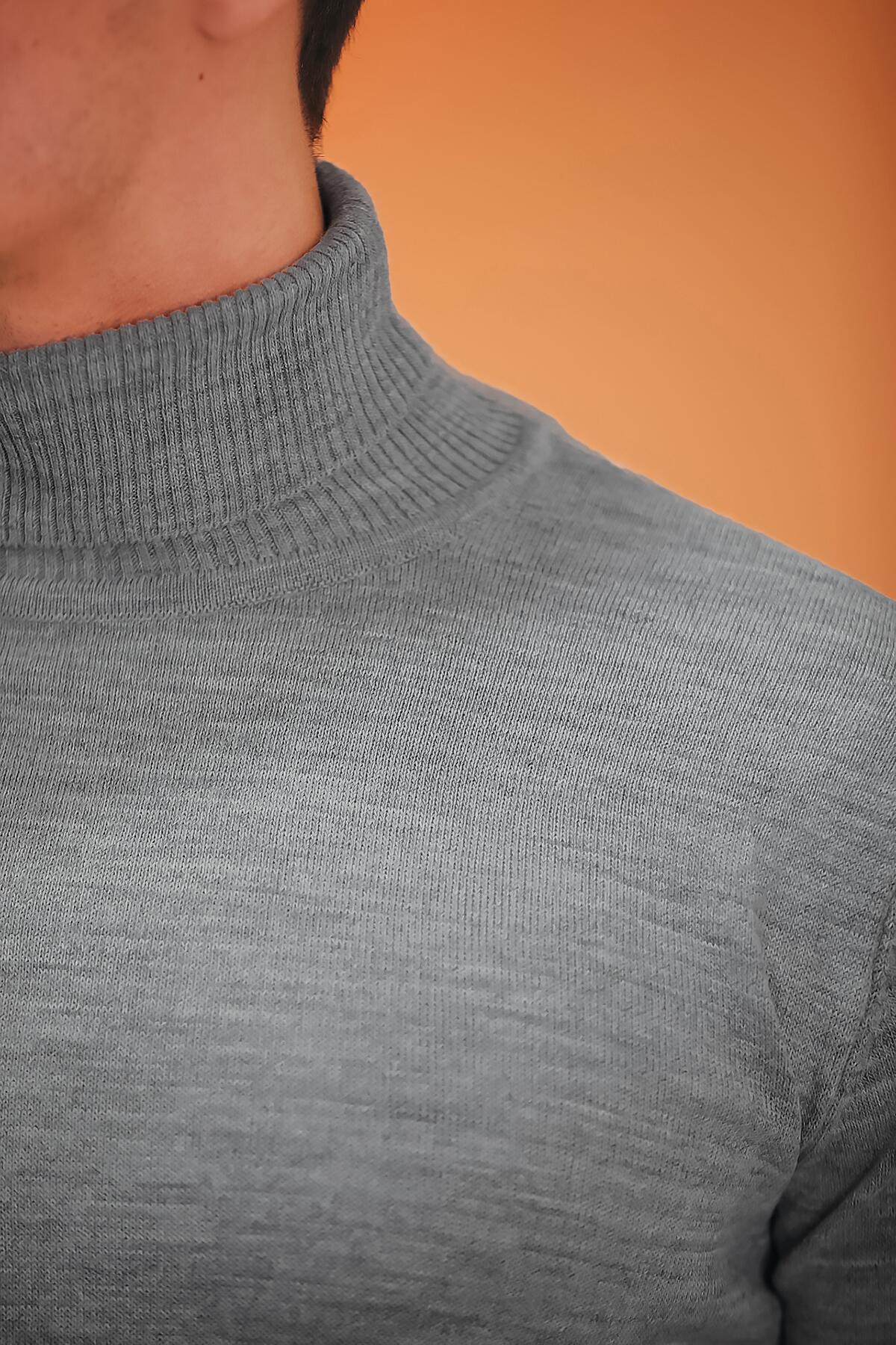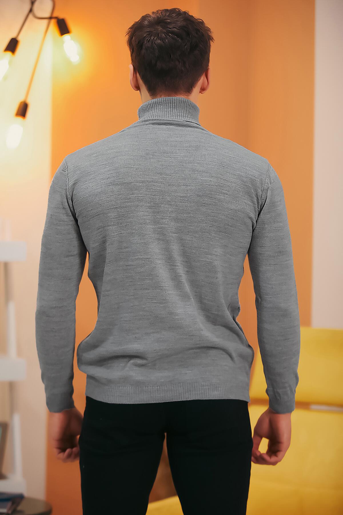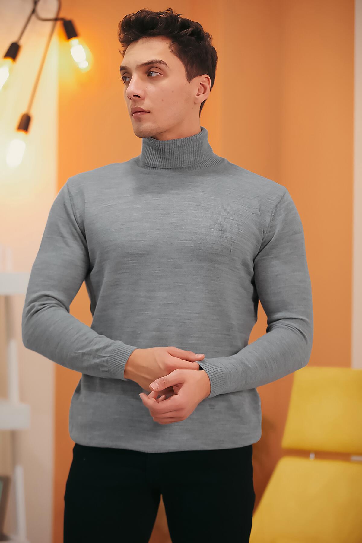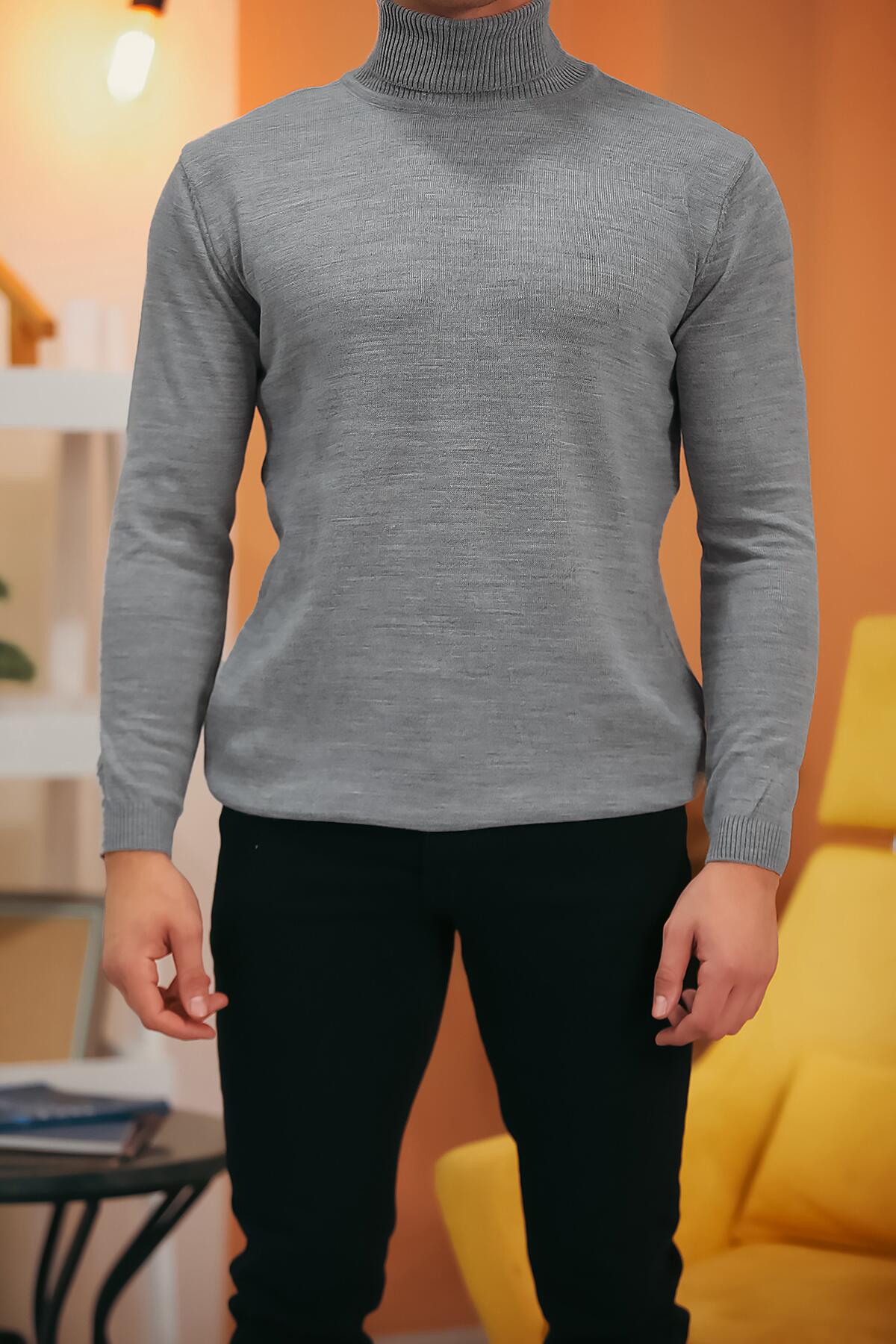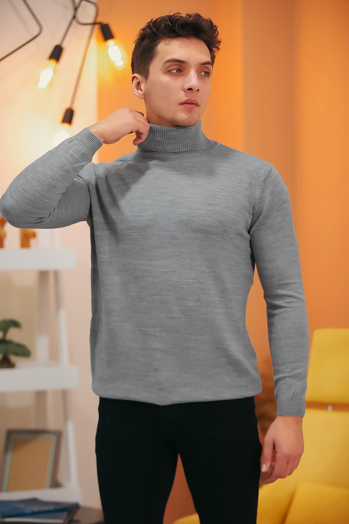 Erkek Balıkçı Yaka Triko Kazak Gri