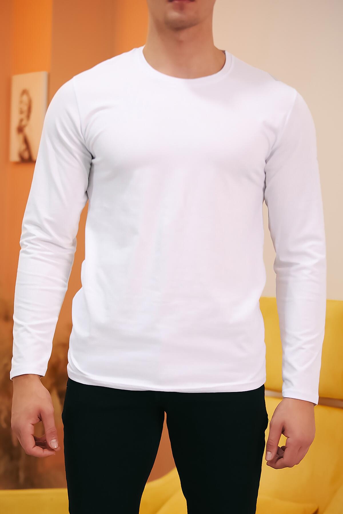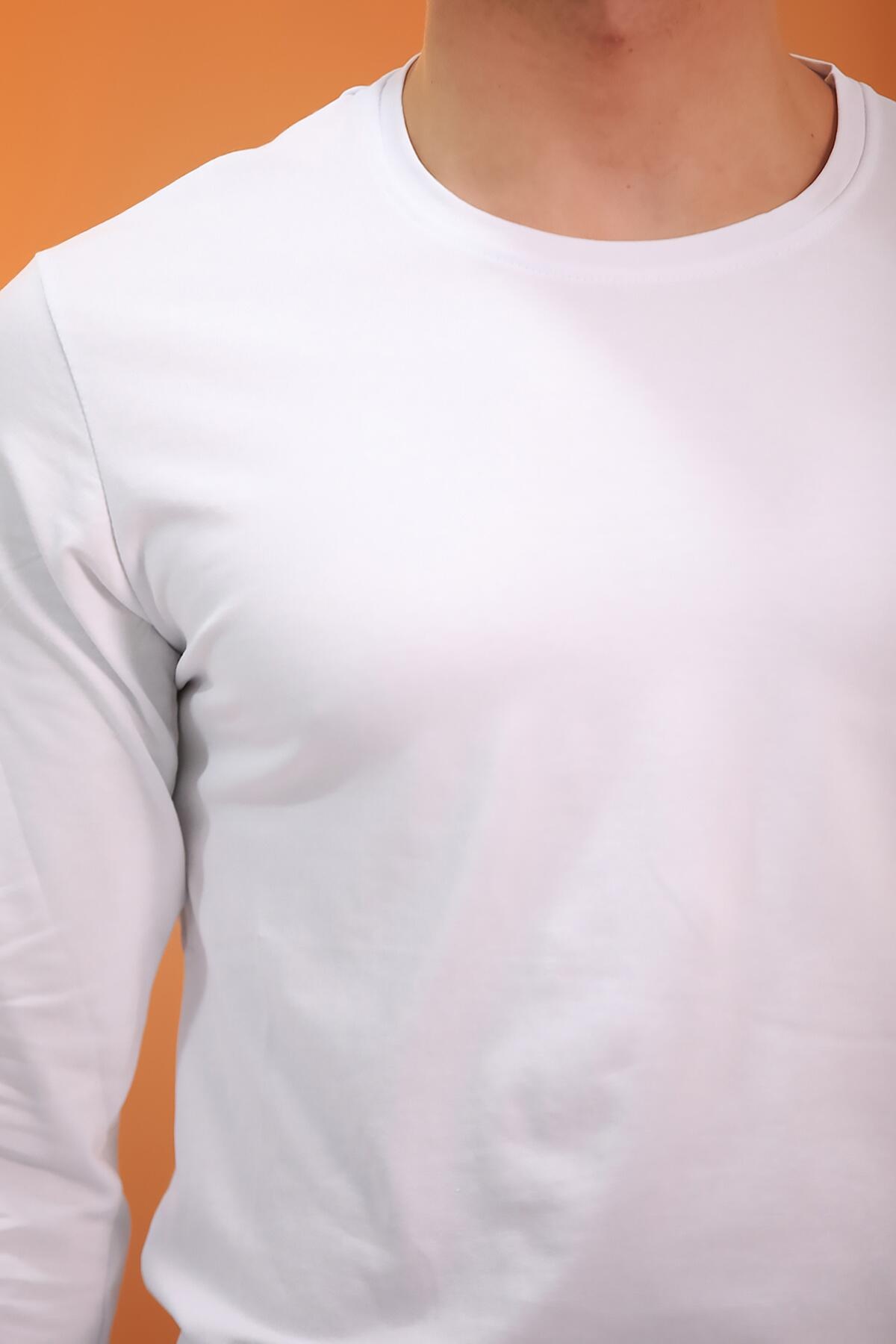 Erkek Bisiklet Yaka Uzun Kol T-shirt Beyaz