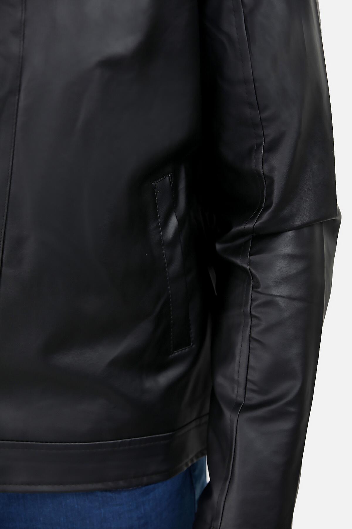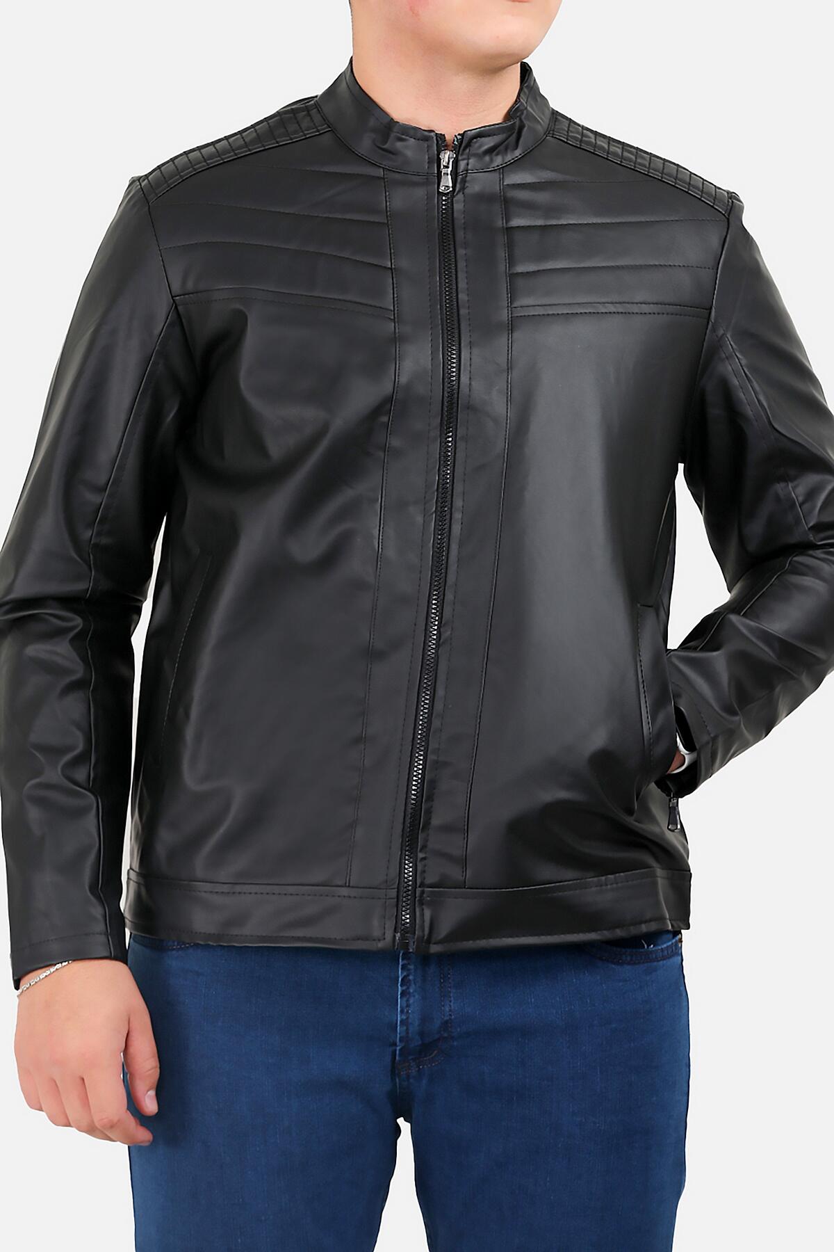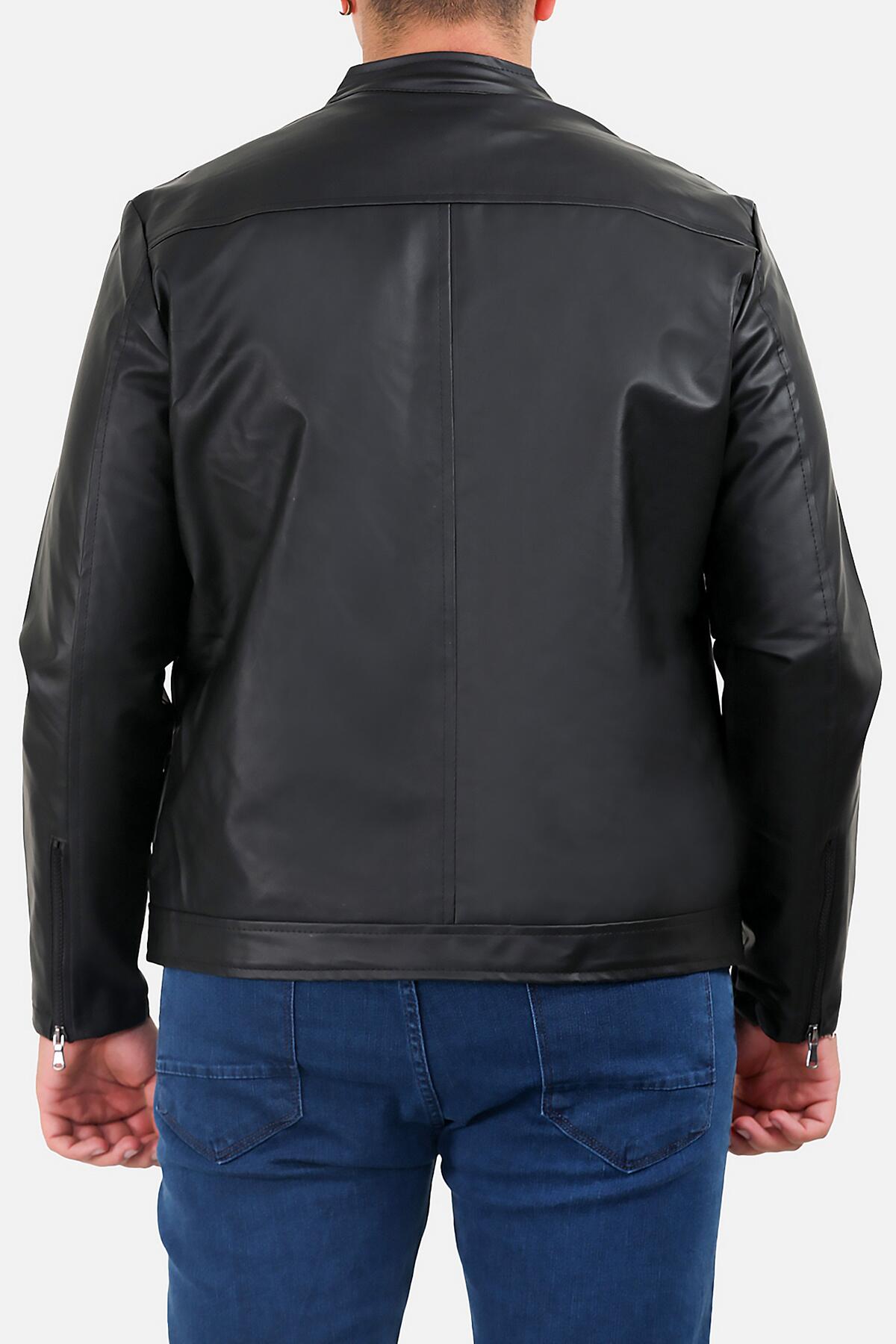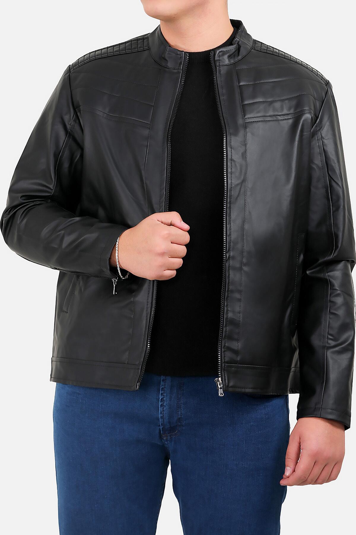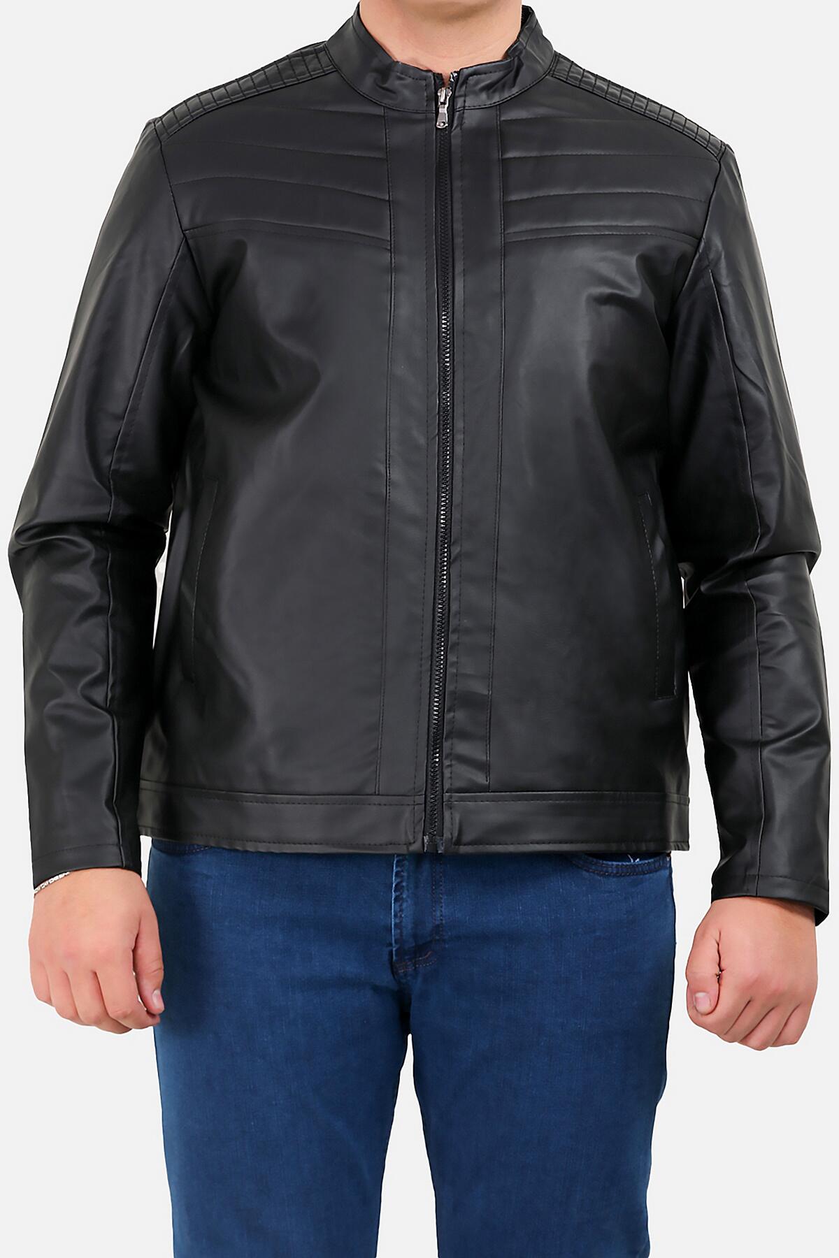Erkek Büyük Beden Fermuarlı Deri Mont Siyah