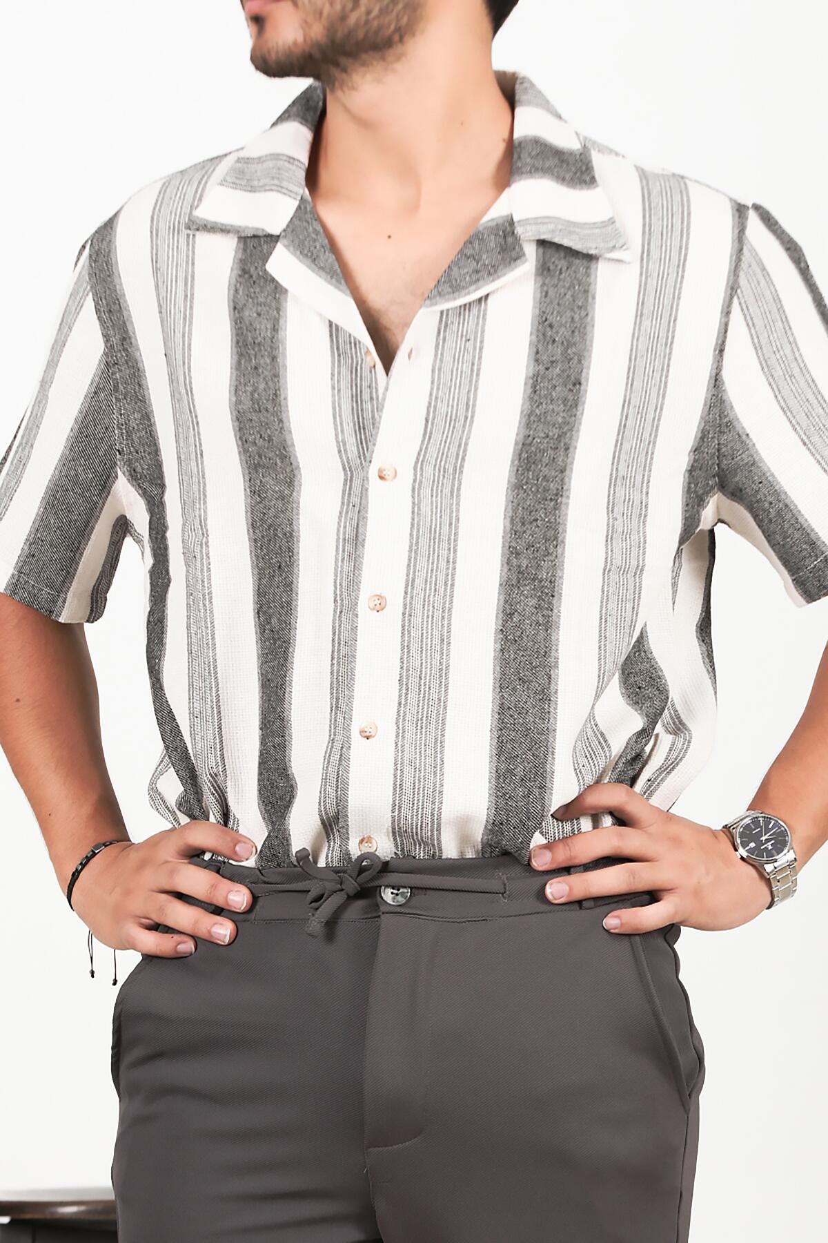 Erkek Çizgili Gömlek Siyah